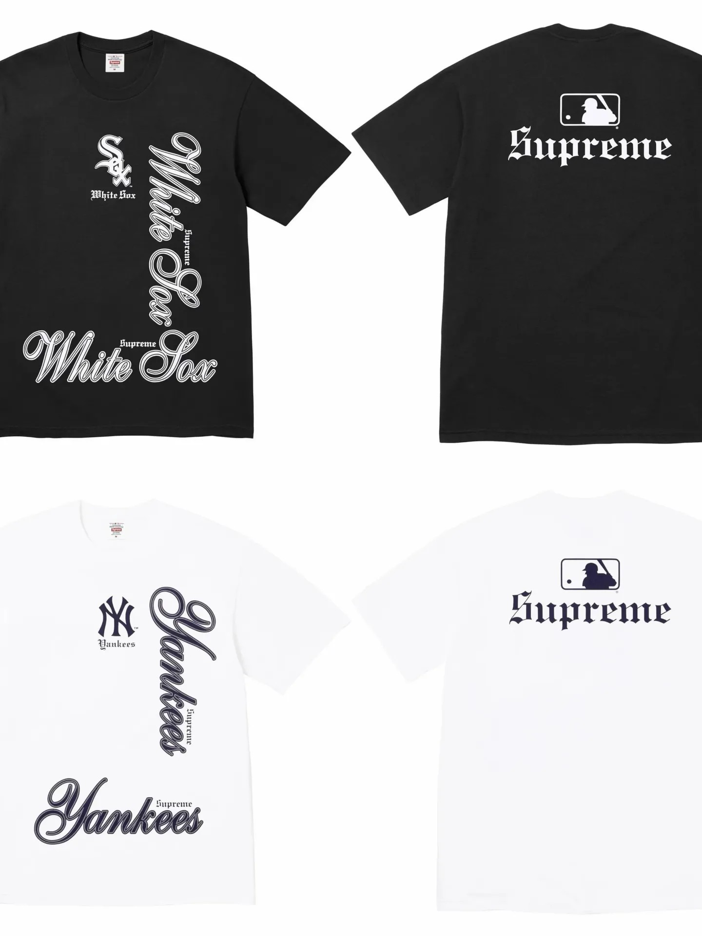 【預售】Sup x MLB FW25 WEEK17 Team Tee NY 草寫字母後背圖像短袖T恤 黑/白