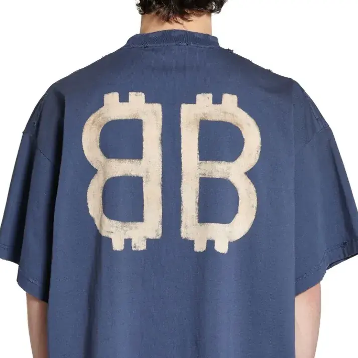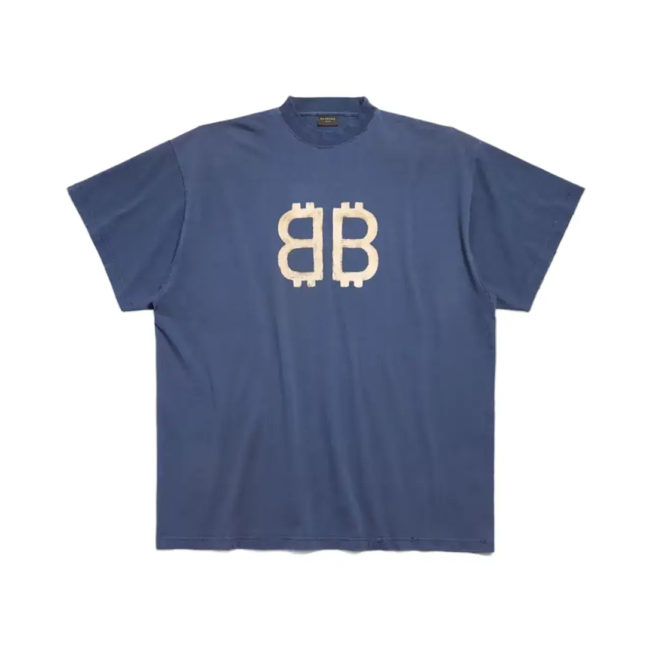 【現貨】巴黎 BLC 24SS 雙B 比特幣 水洗作舊破壞 短袖 T恤 藍灰色