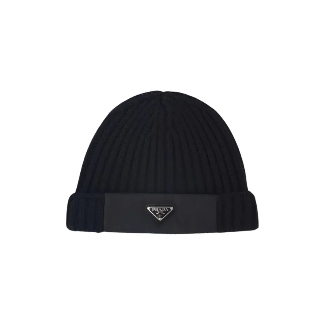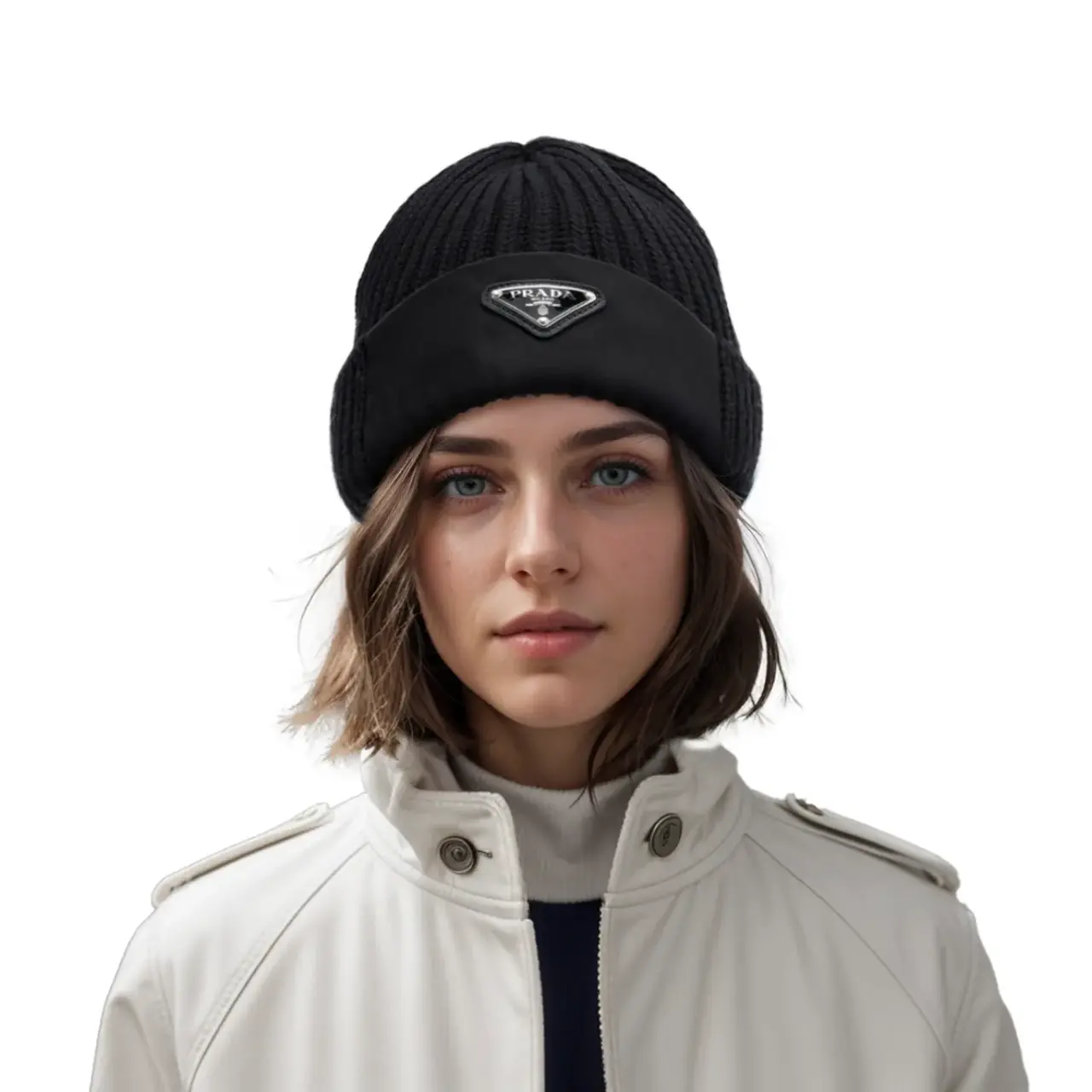 PRA 20FW 尼龍拼接 經典三角標 羊毛混紡 毛帽冷帽毛線帽帽子