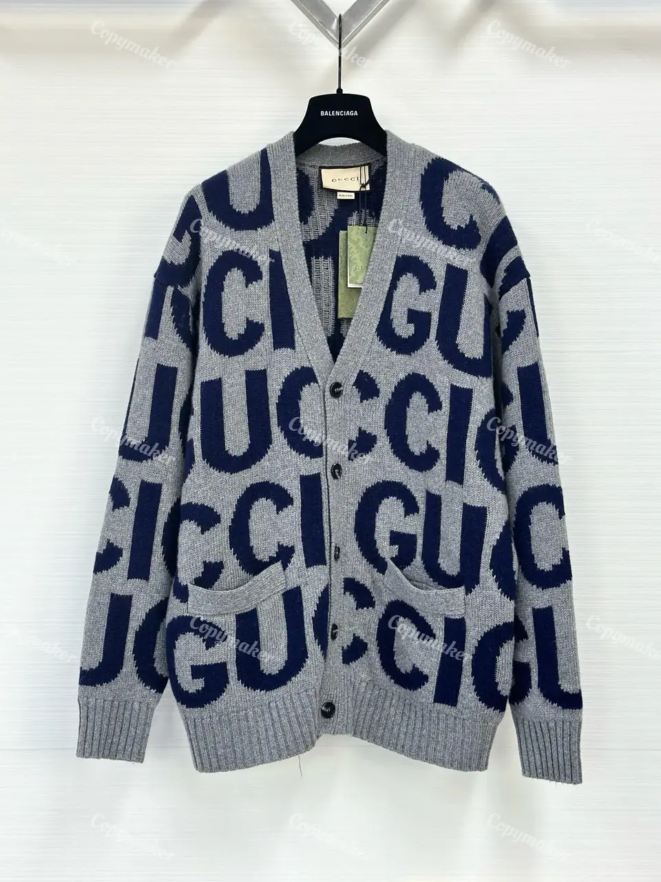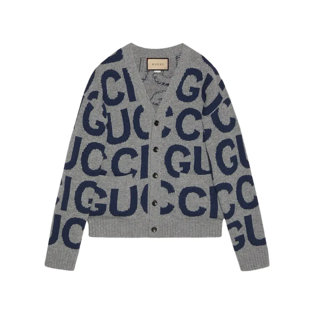 GUC 23FW 經典大字母嵌花 純羊毛 針織衫毛衣外套開衫