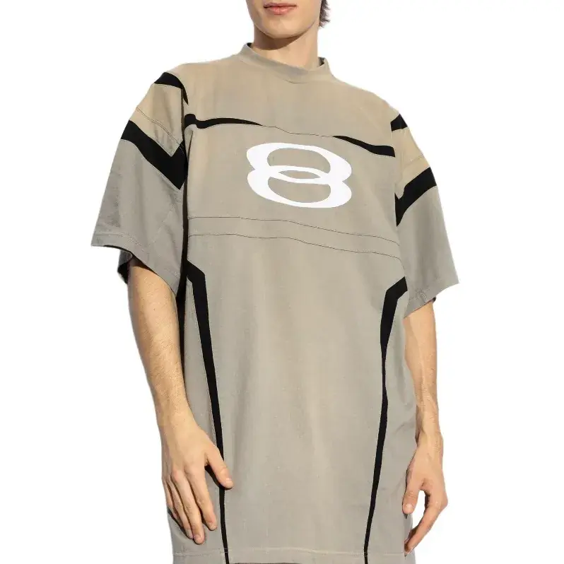 【現貨】【福利回饋免運】巴黎 BLC 24FW 雙環刺繡水洗拼接重磅 短袖T恤 卡其色