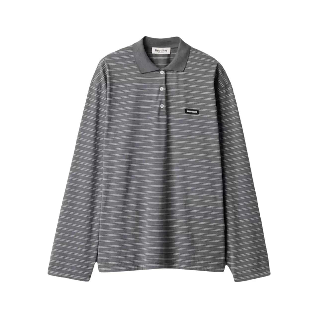 【現貨】M1U M1U 25FW 繆繆 刺繡小標logo 條紋 Polo衫長袖T恤 灰色