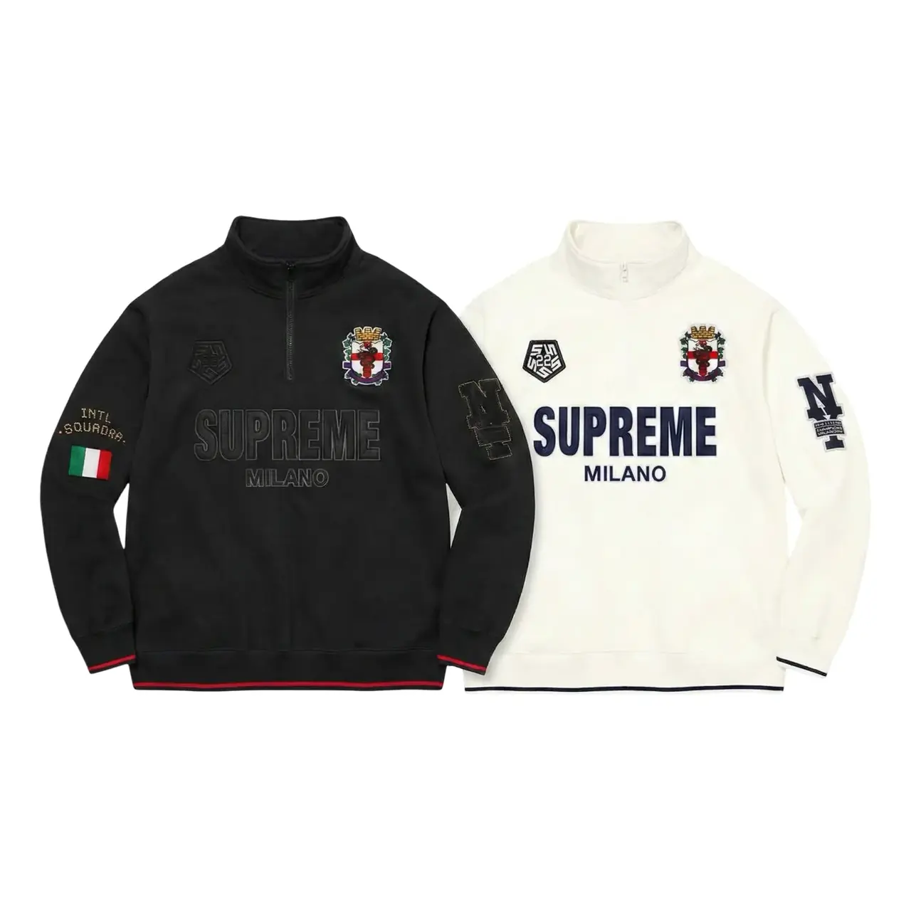 【預售】SUP FW22 Week 1 Milano Half Zip Pullover 半拉鏈徽章刺繡衛衣長袖大學T 黑/白