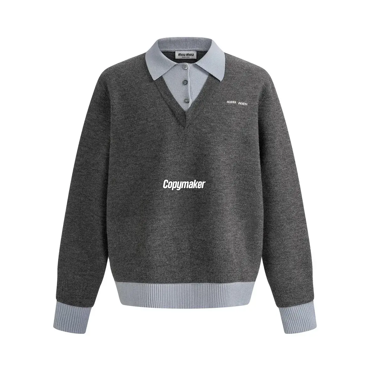 【準現貨】【福利回饋】 M1U 25FW 繆繆 刺繡小標logo 羊毛混紡 假兩件毛衣襯衫衛衣