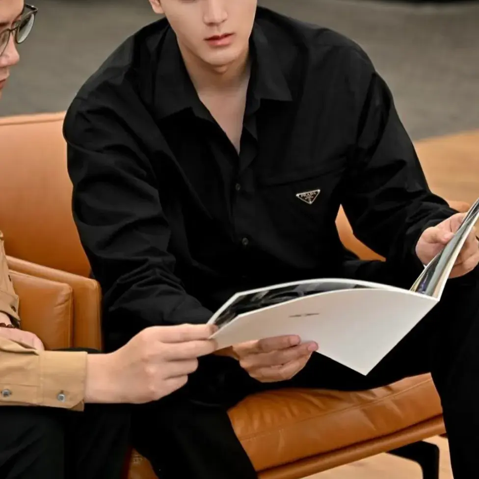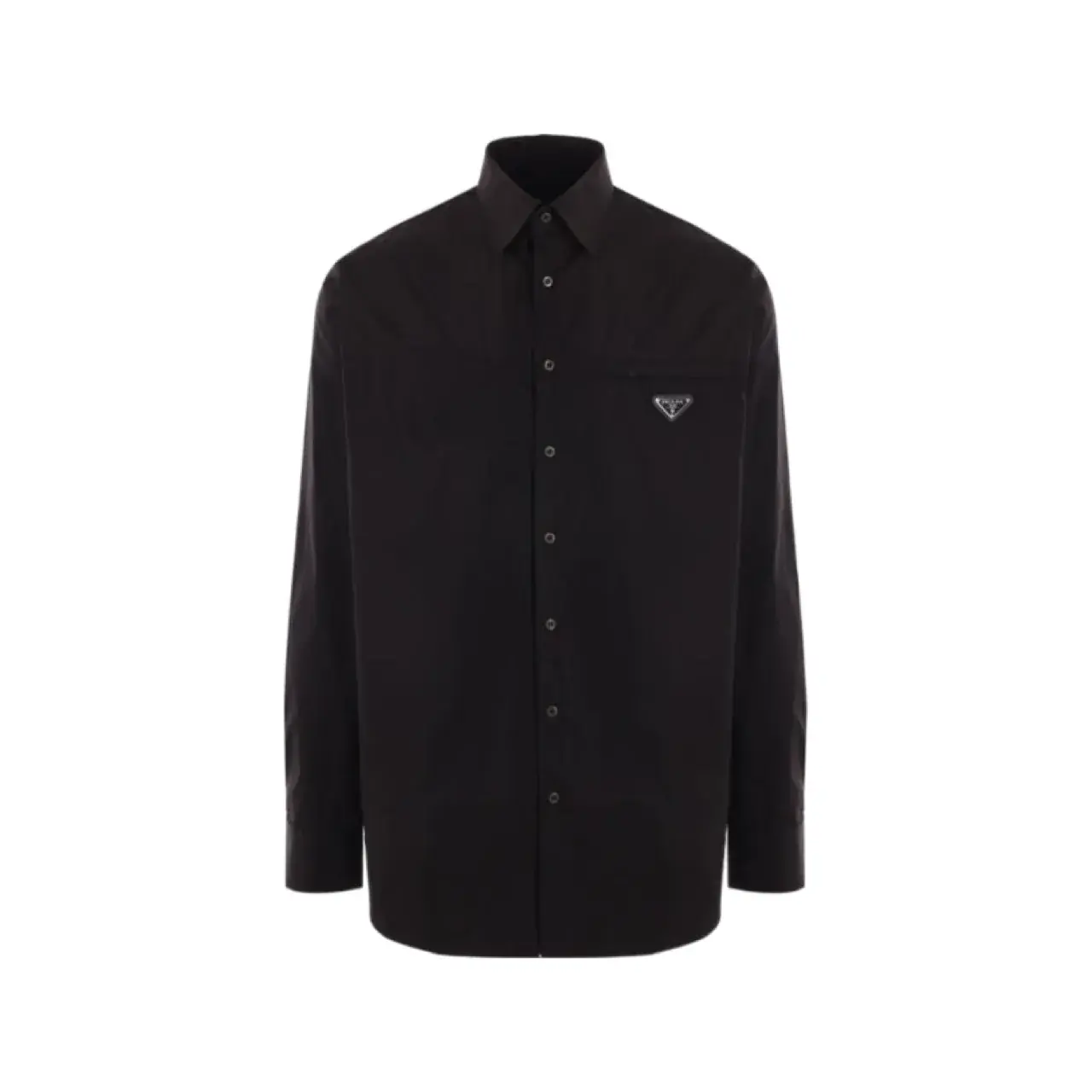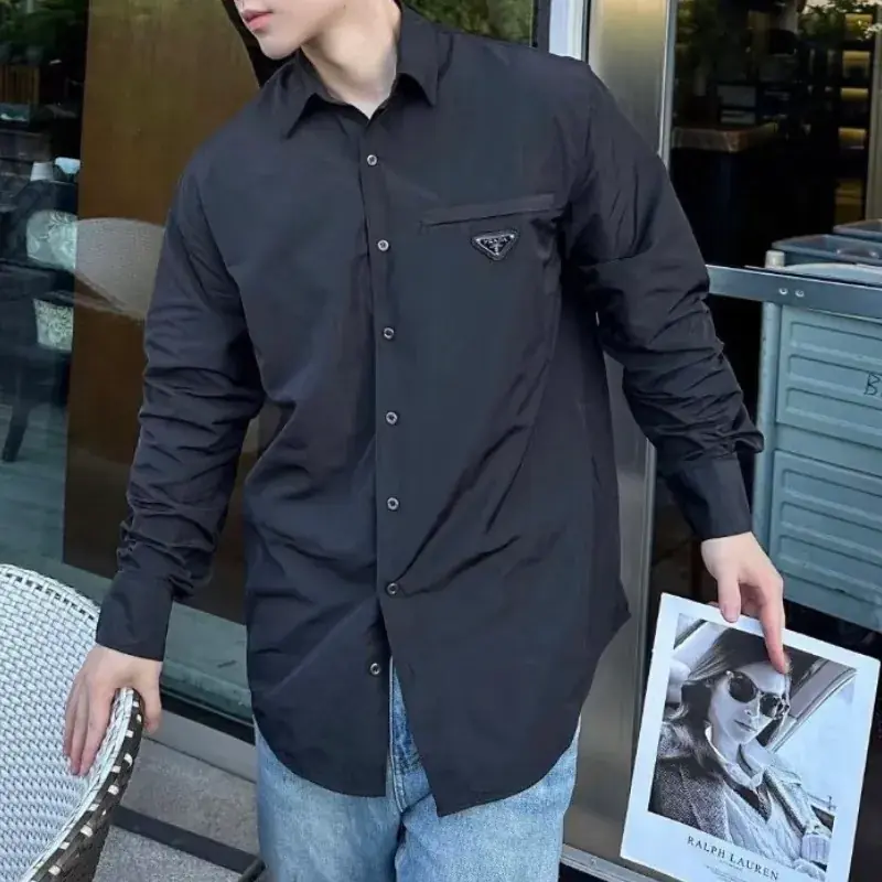 【現貨】【全套包裝】PRA 24FW 簡約素色 三角標logo 長袖襯衫夾克 黑色