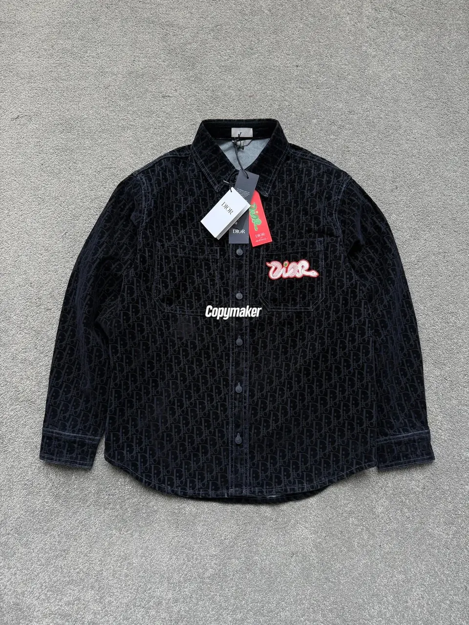 【現貨】【福利回饋】D1OR x KAWS Oblique 滿版logo 滿印 反毛皮麂皮襯衫夾克外套 活性黑