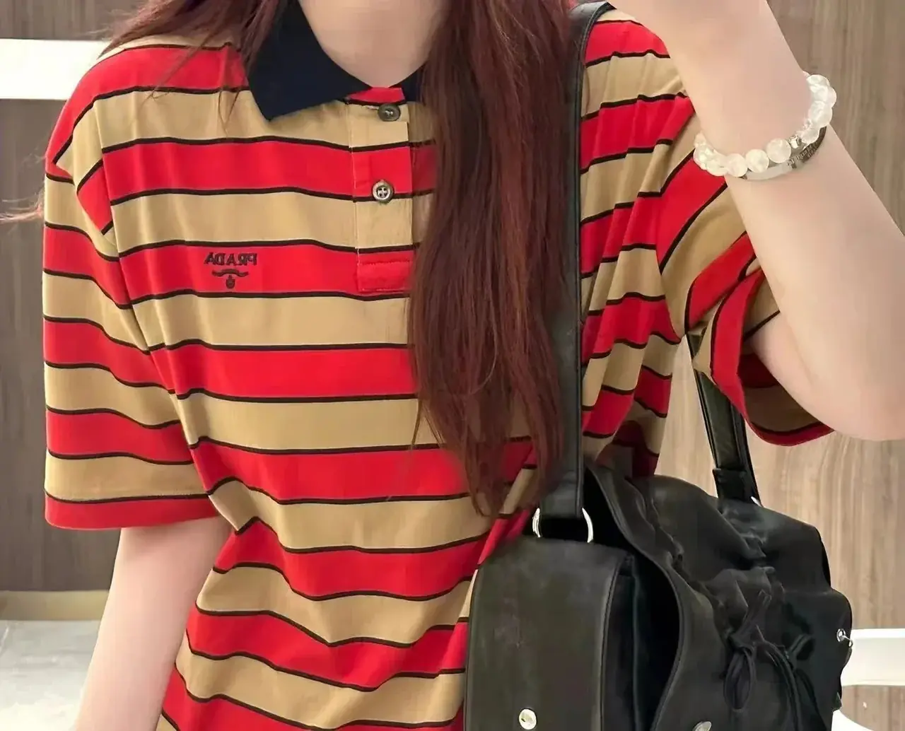 【現貨】【福利回饋】PRA 25SS 條紋 小logo Polo衫短袖T恤 絲光棉
