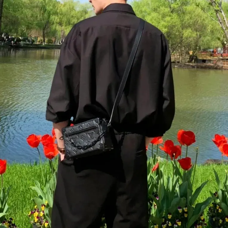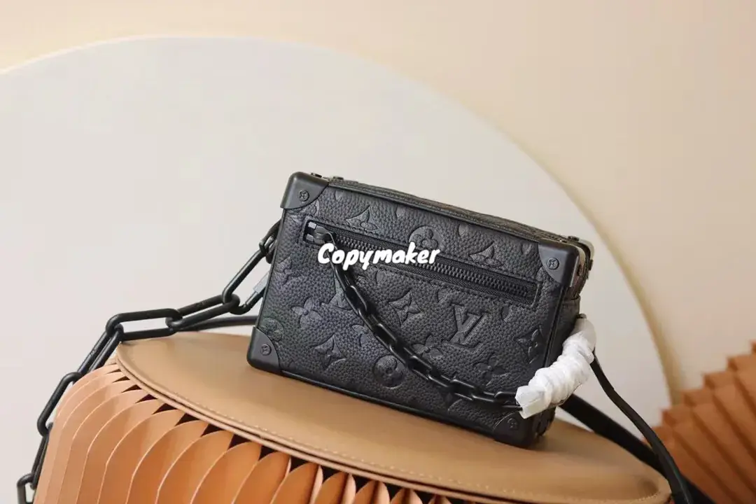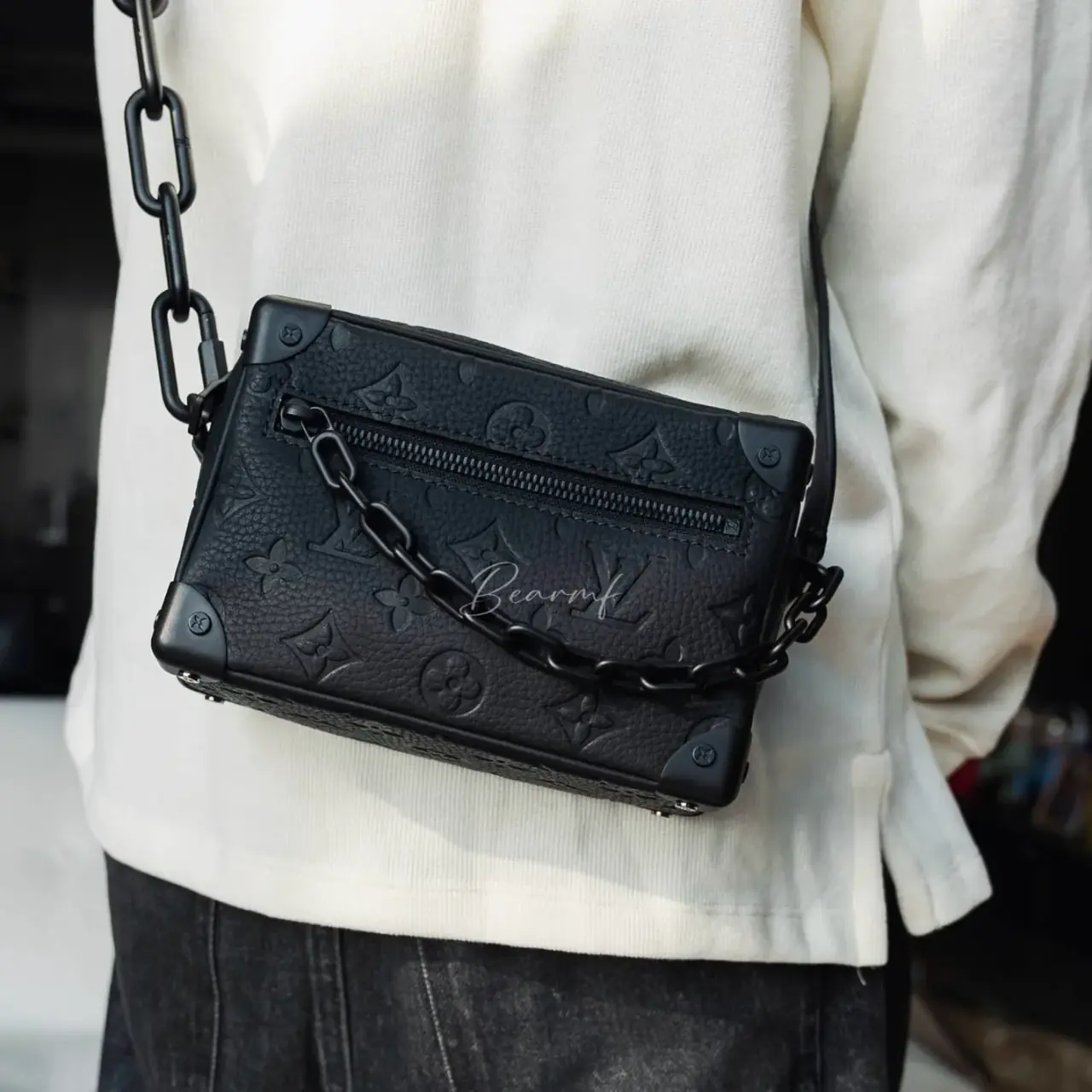 【現貨】1V 20SS SOFT TRUNK 老花壓紋 頭層牛皮 黑盒子方盒子包單肩包側背包小包 M55702