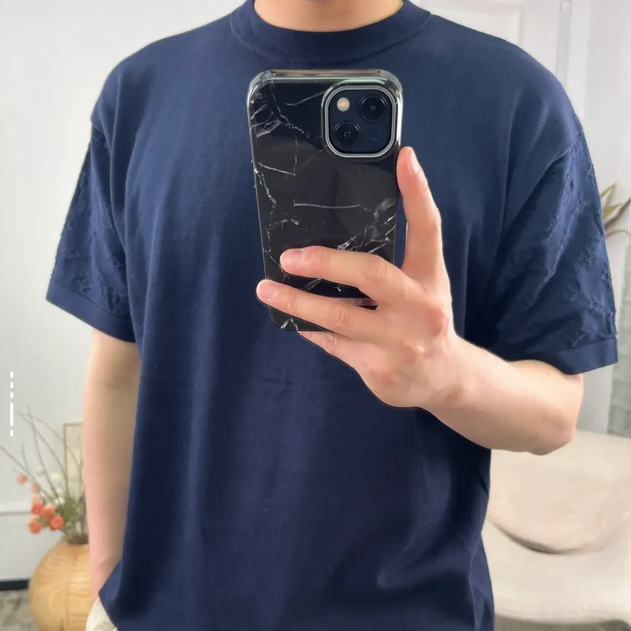 【現貨】1V 25SS 袖子提花壓紋 經典字母logo 簡約素色 短袖 T恤 深藍/白色