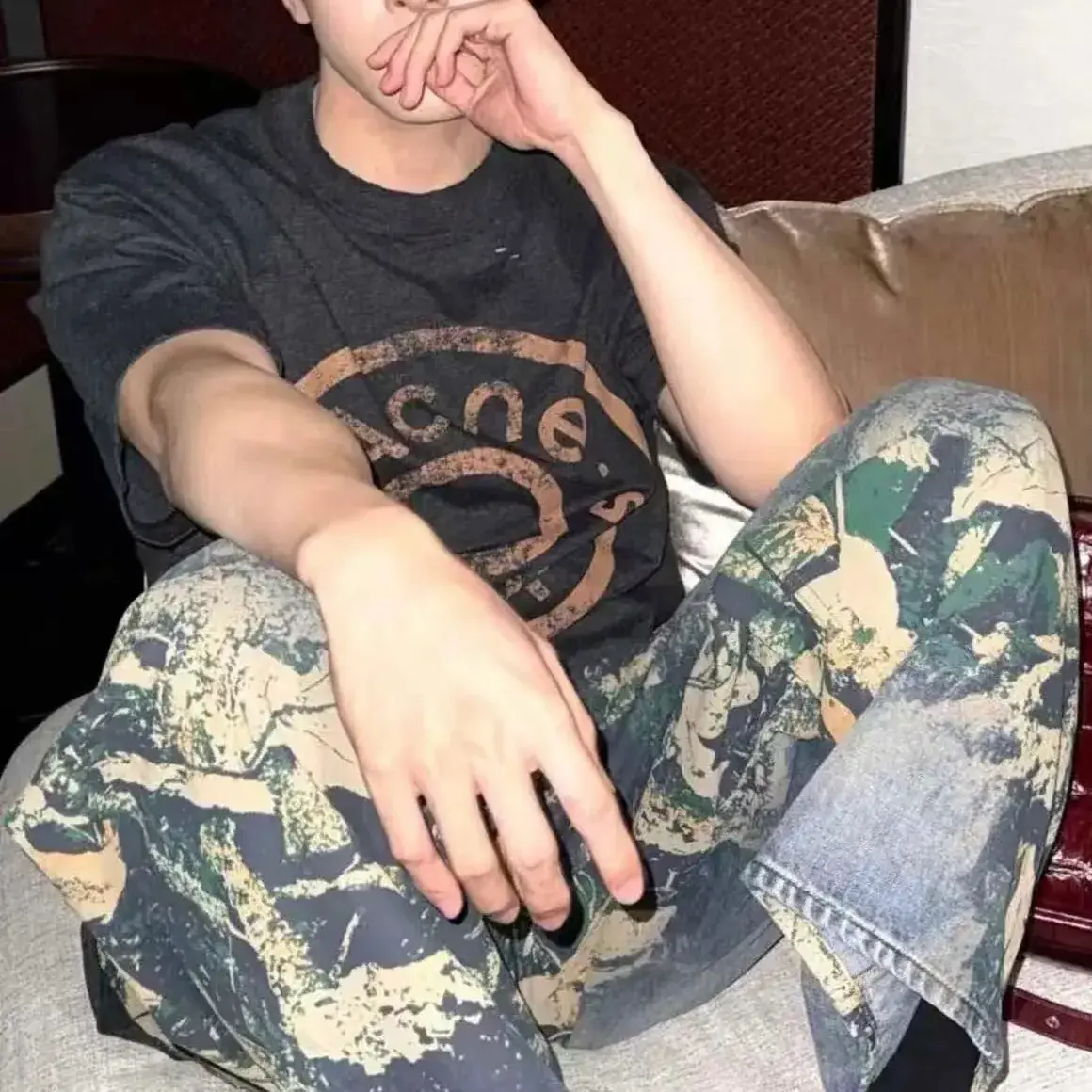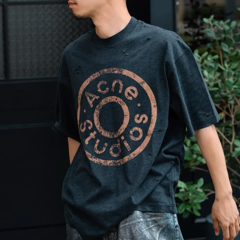 【現貨】Acne Studios 24FW 水洗做舊破壞 大logo 純棉短袖T恤 黑灰色
