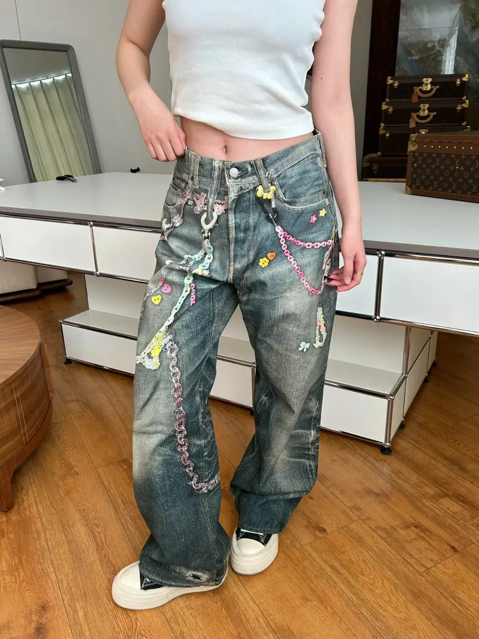 近期爆款之一AC糖果鐵鍊牛仔褲