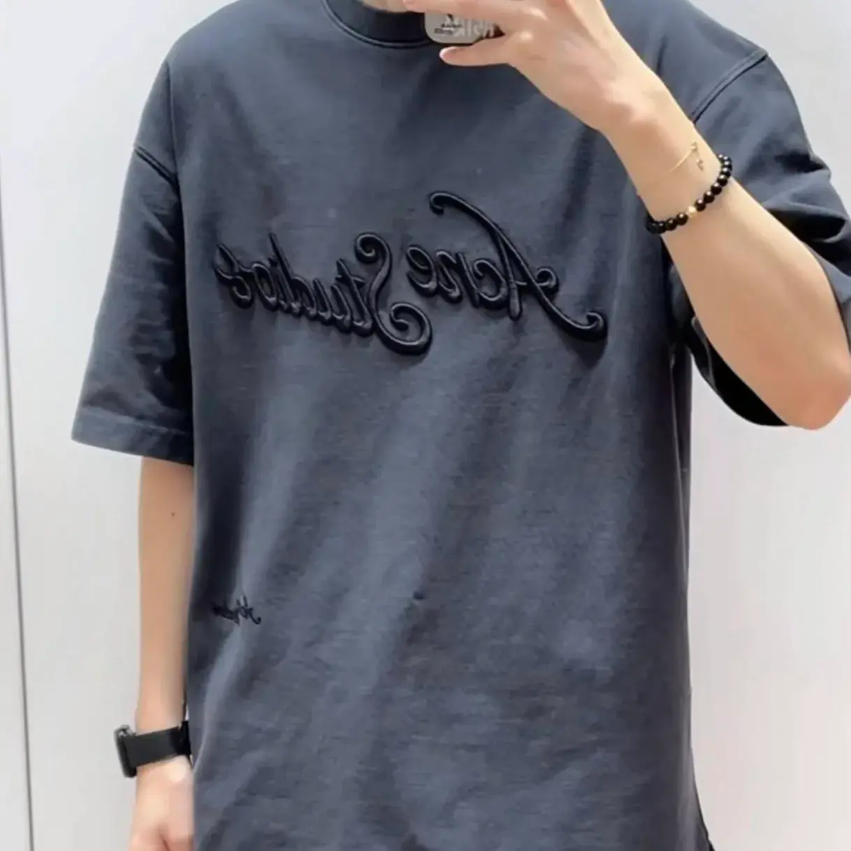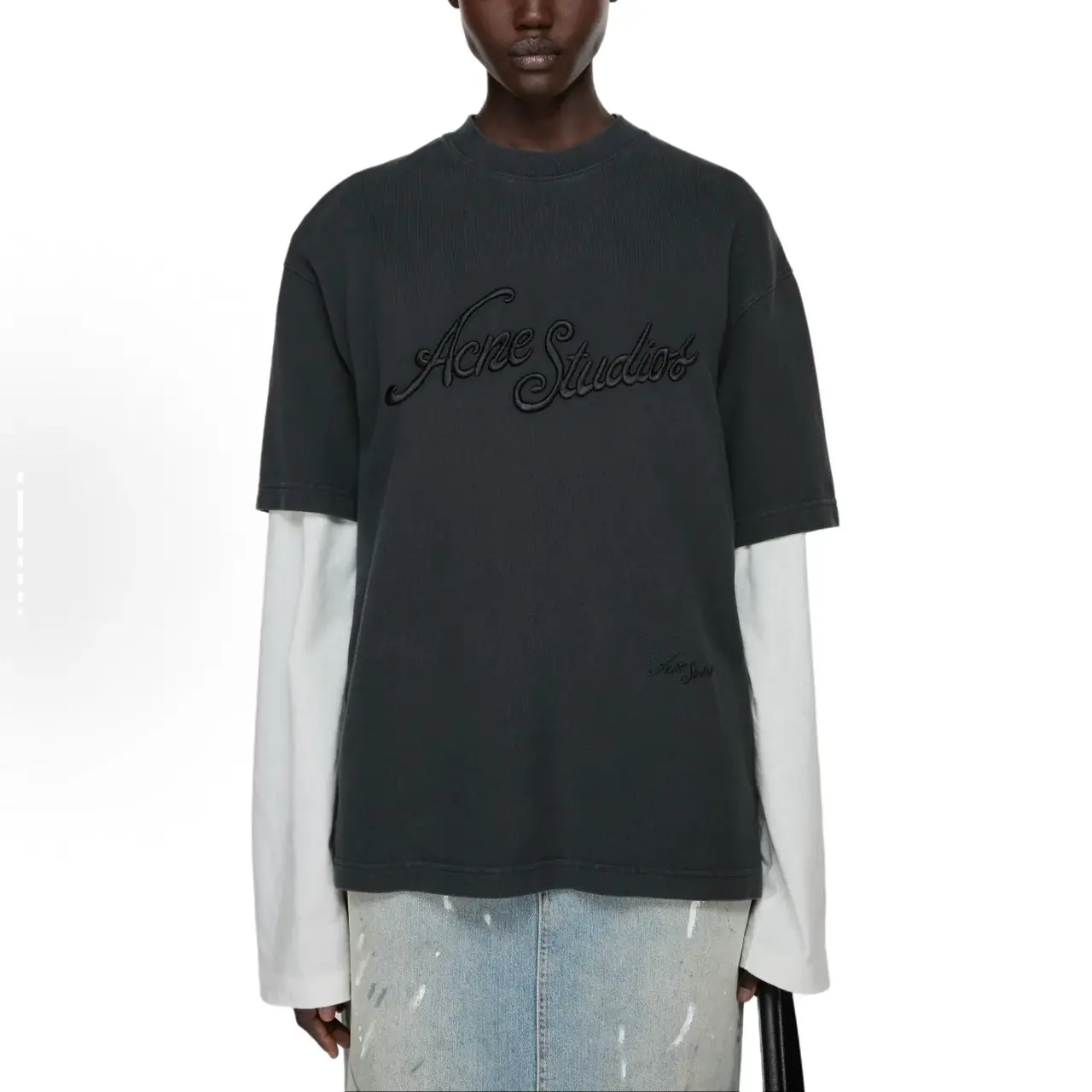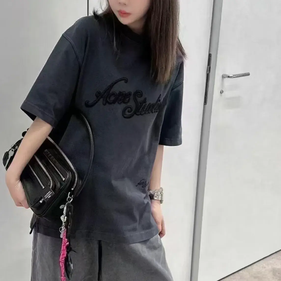 【現貨】Acne Studios 25SS 刺繡logo字母 圓領純棉短袖T恤 黑灰色