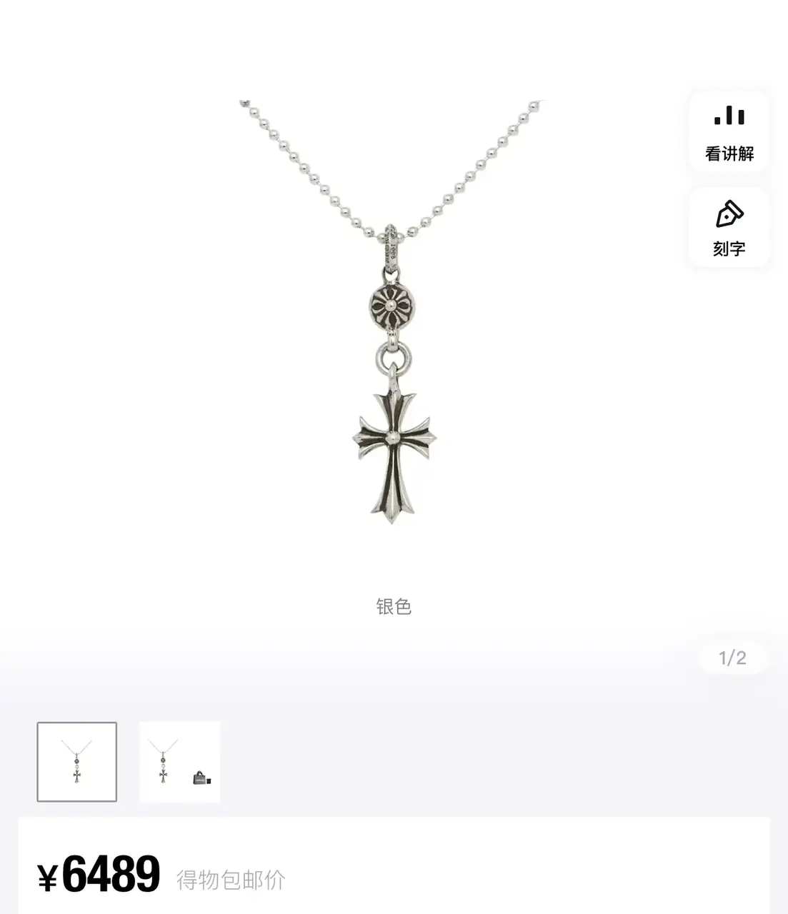 【現貨】Chrome Hearts 單球十字架 經典款 項鍊 吊墜 CH克羅心 空哈