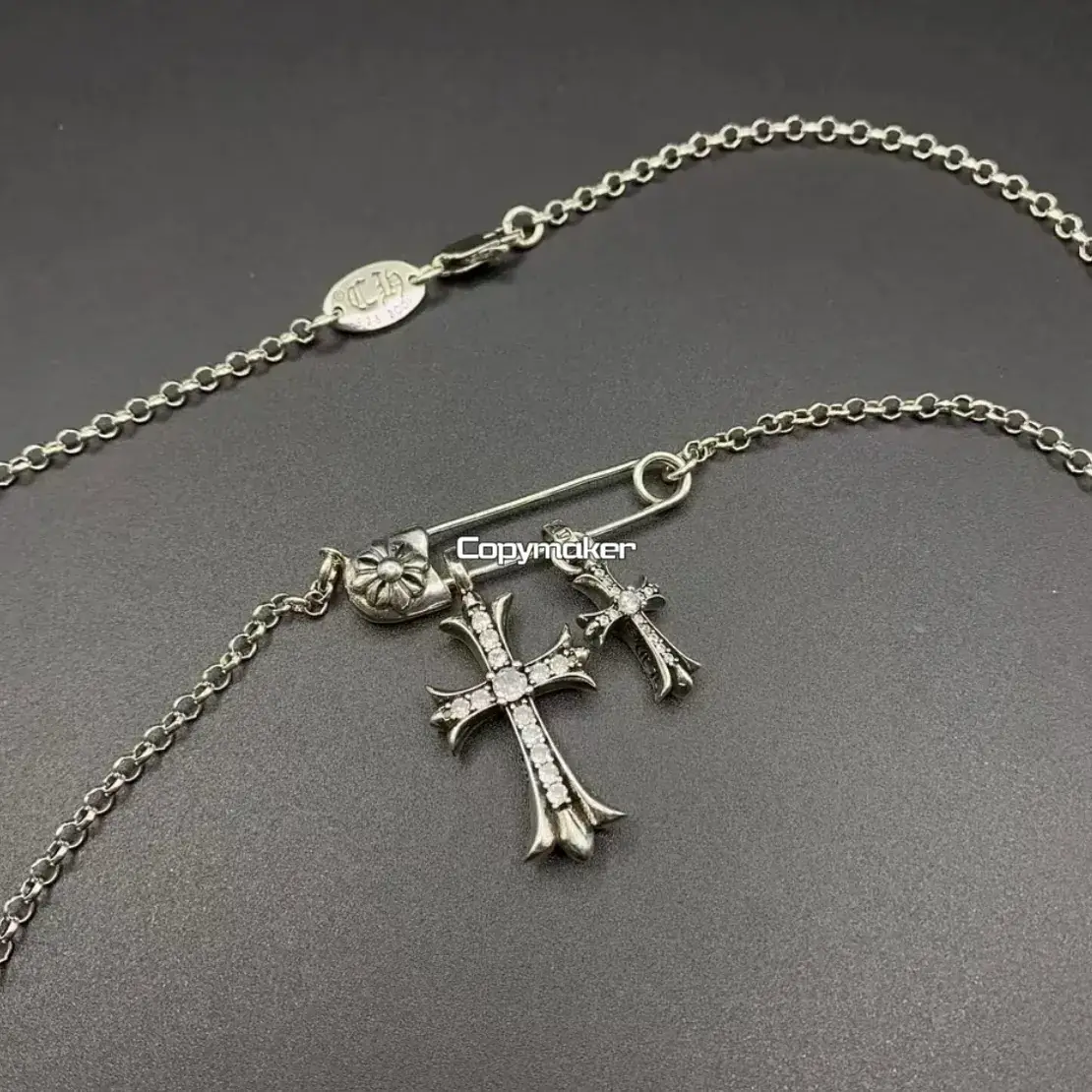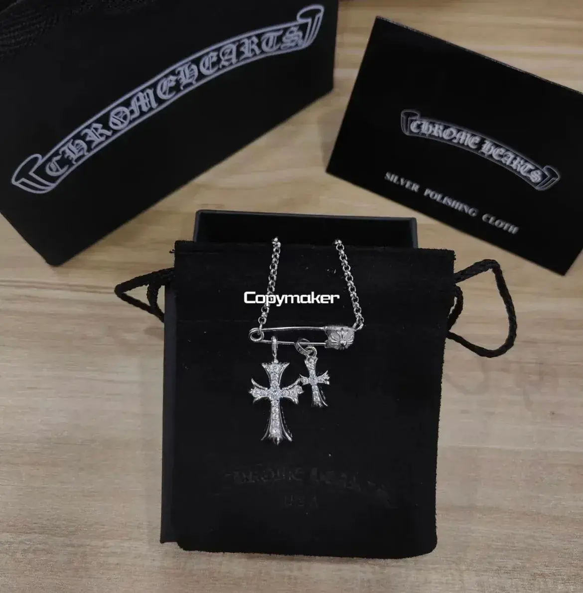 【現貨】Chrome Hearts 藏銀別針滿鑽雙十字架項鍊吊墜飾品 CH克羅心