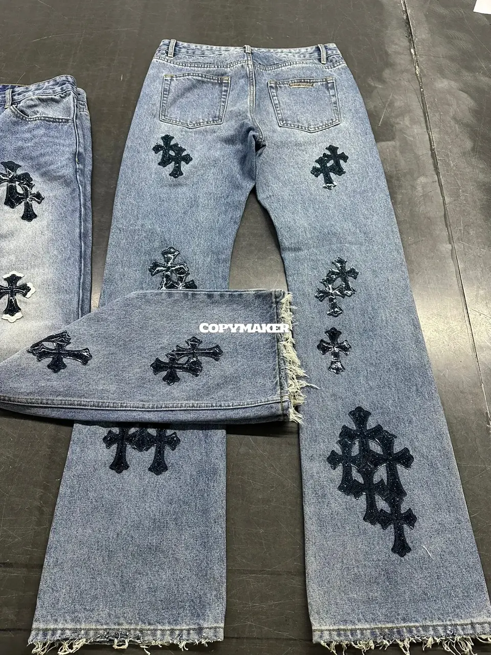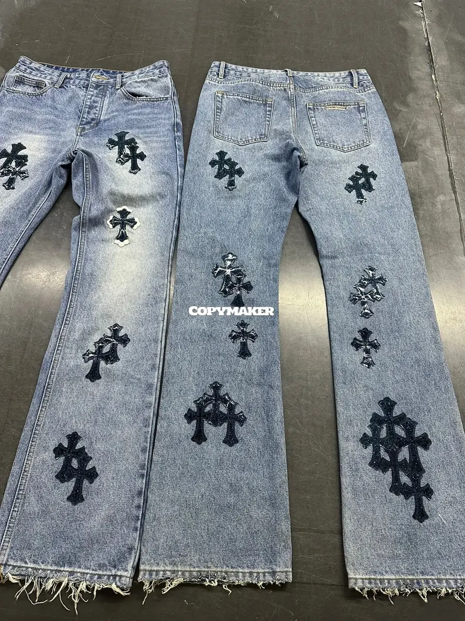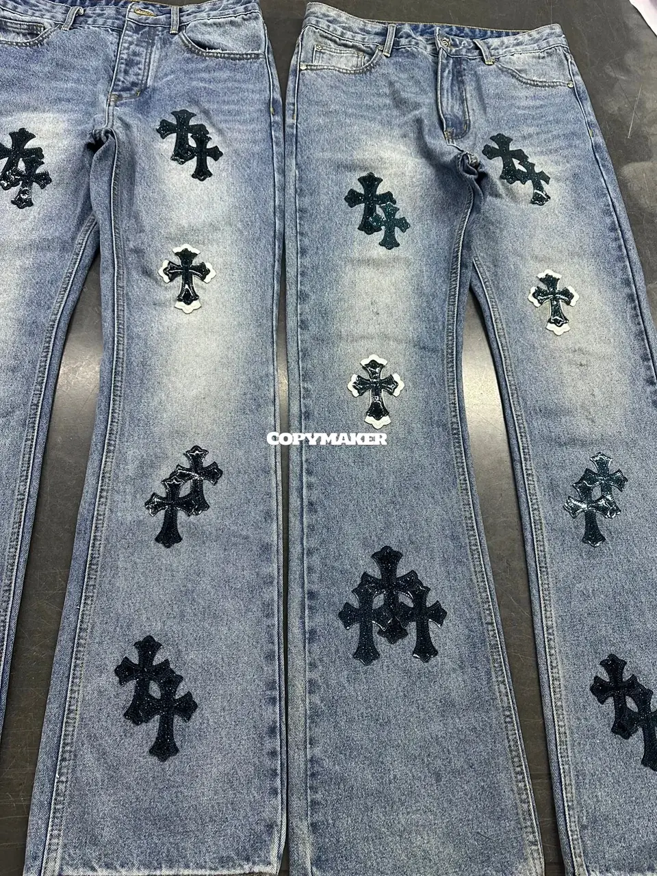 【現貨】CHROME HEARTS x Levi’s 克羅心 洛杉磯限定 星空拼皮十字架 皮標 牛仔褲直筒褲長褲