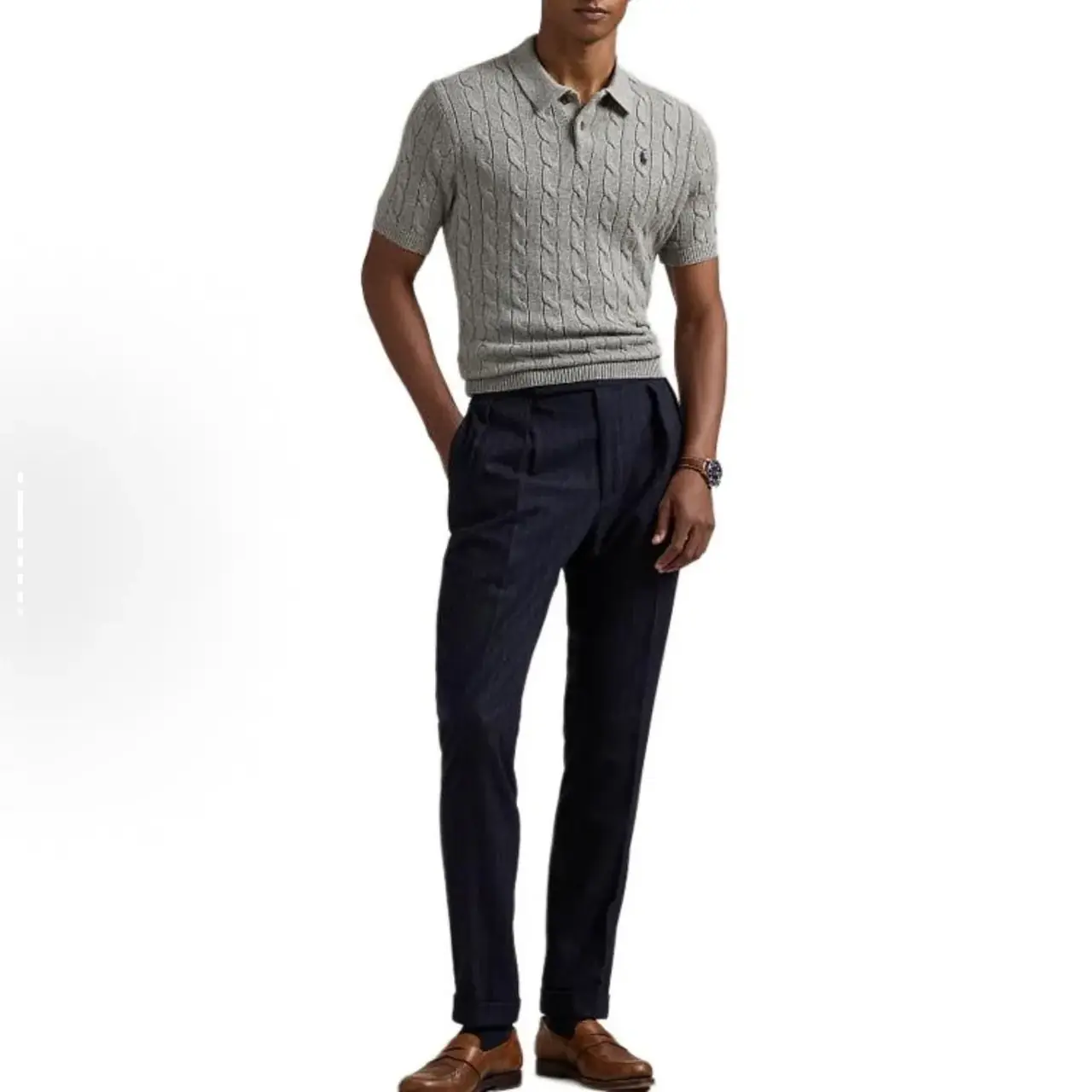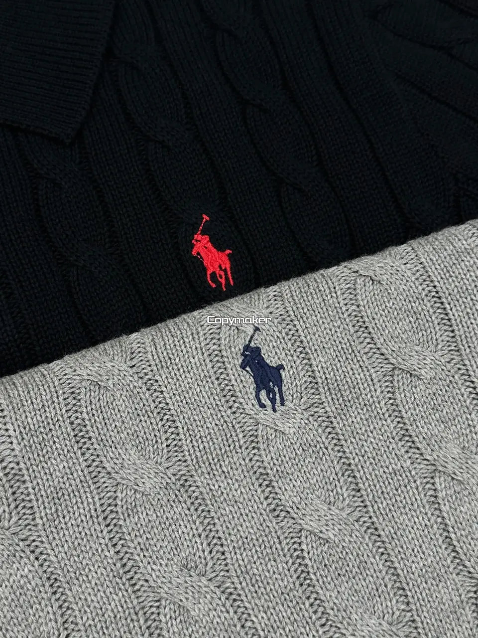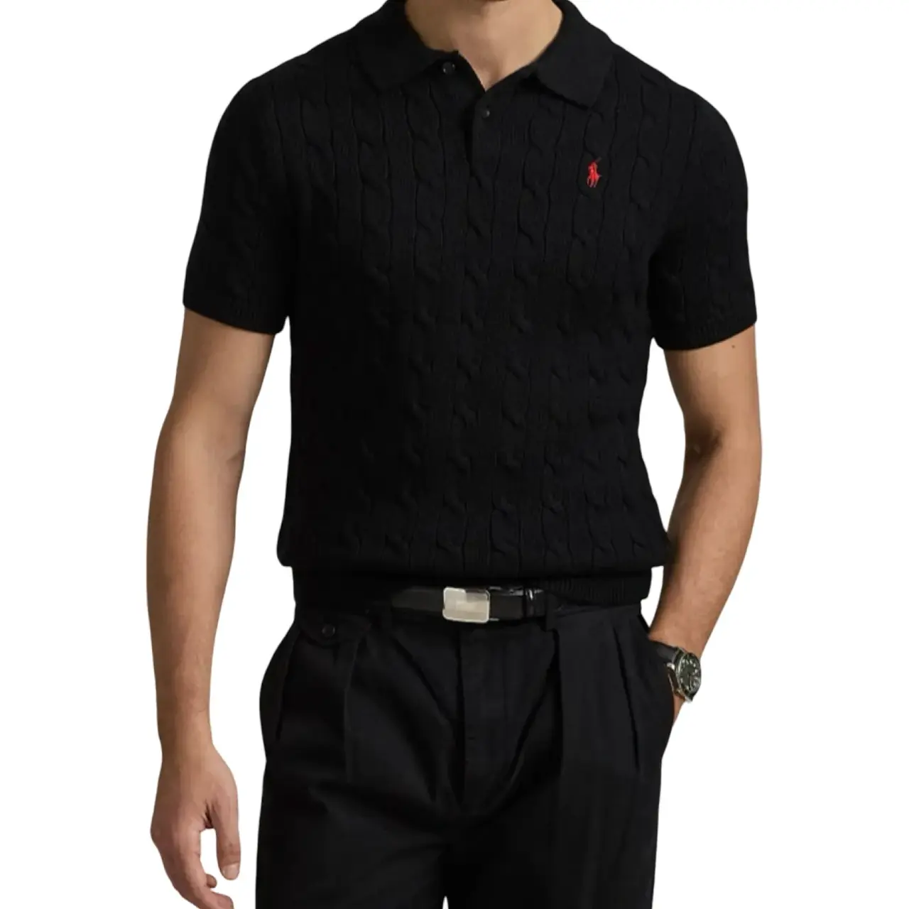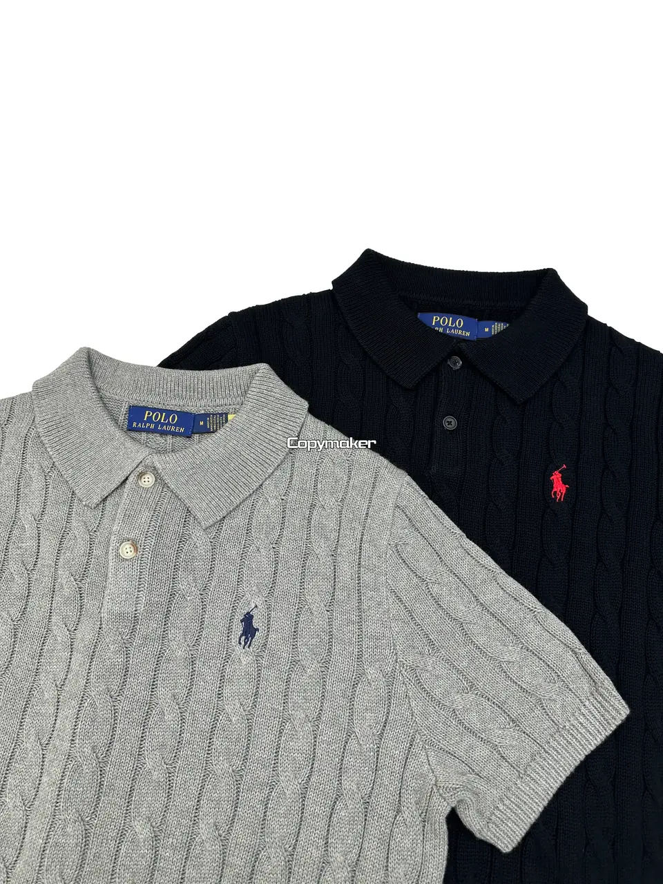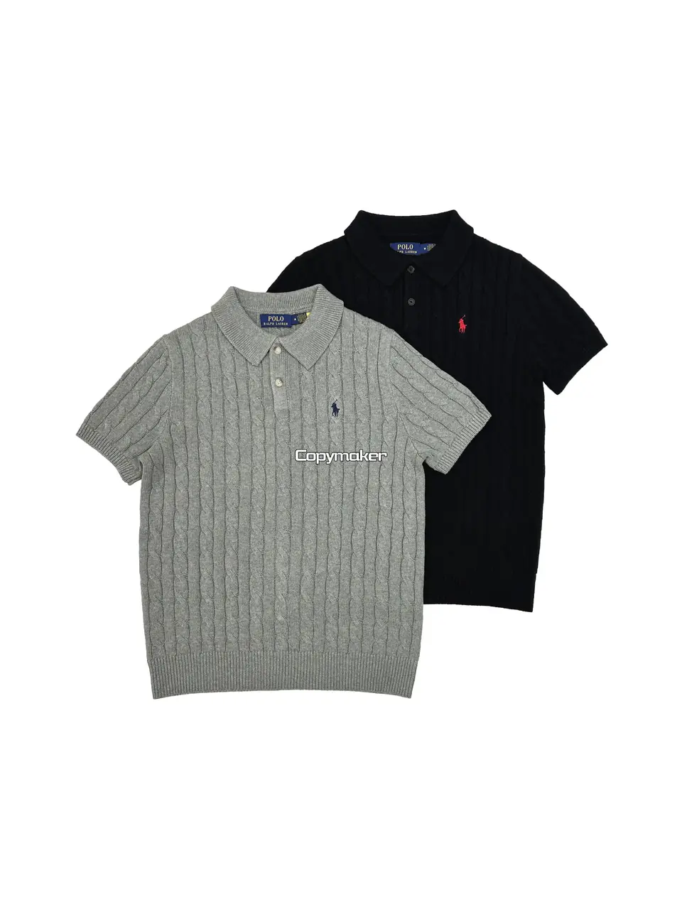 【現貨】Ra1ph Lauren Polo 小馬刺繡 麻花針織老錢風 polo衫短袖T恤 黑色/灰色