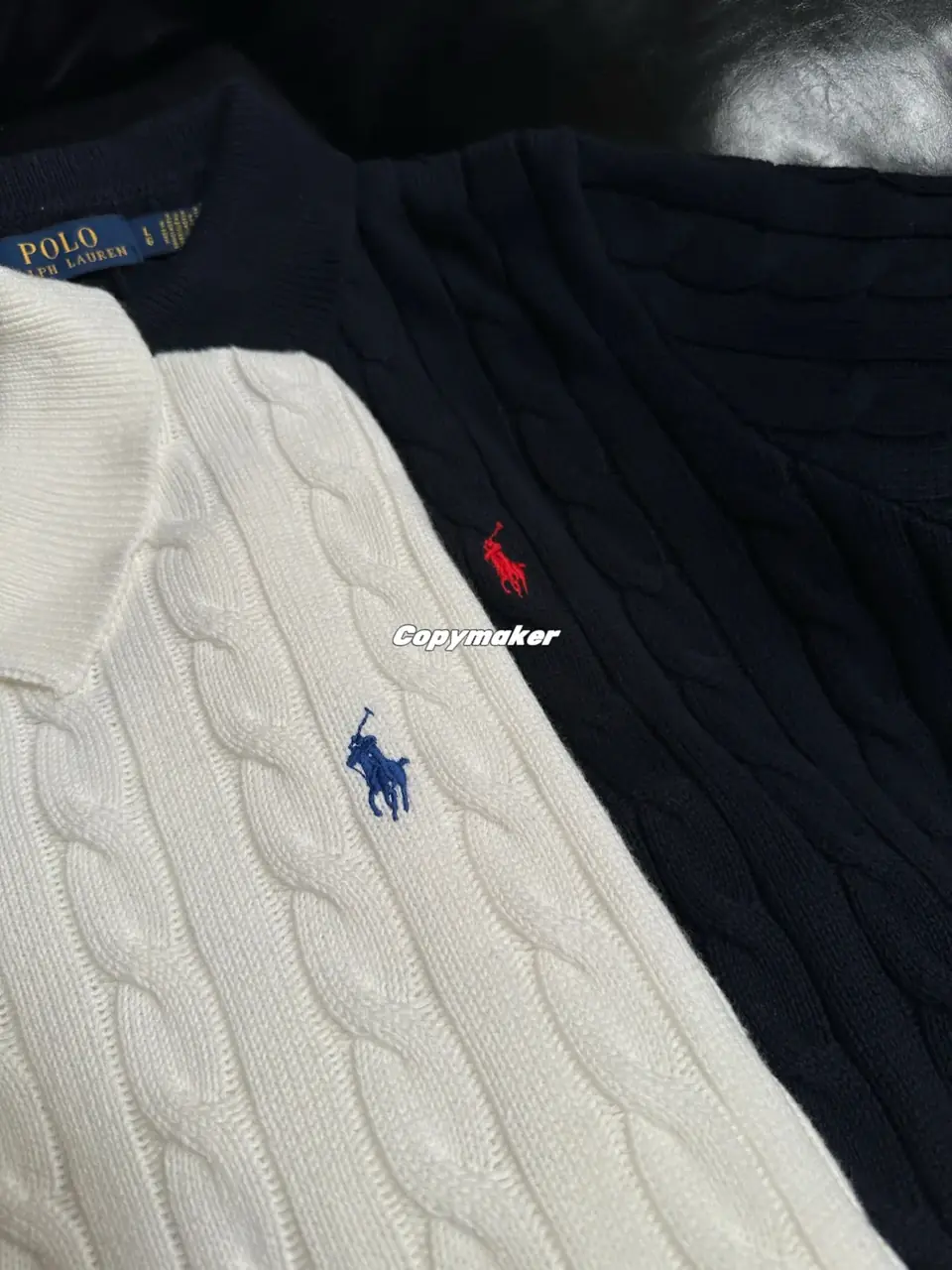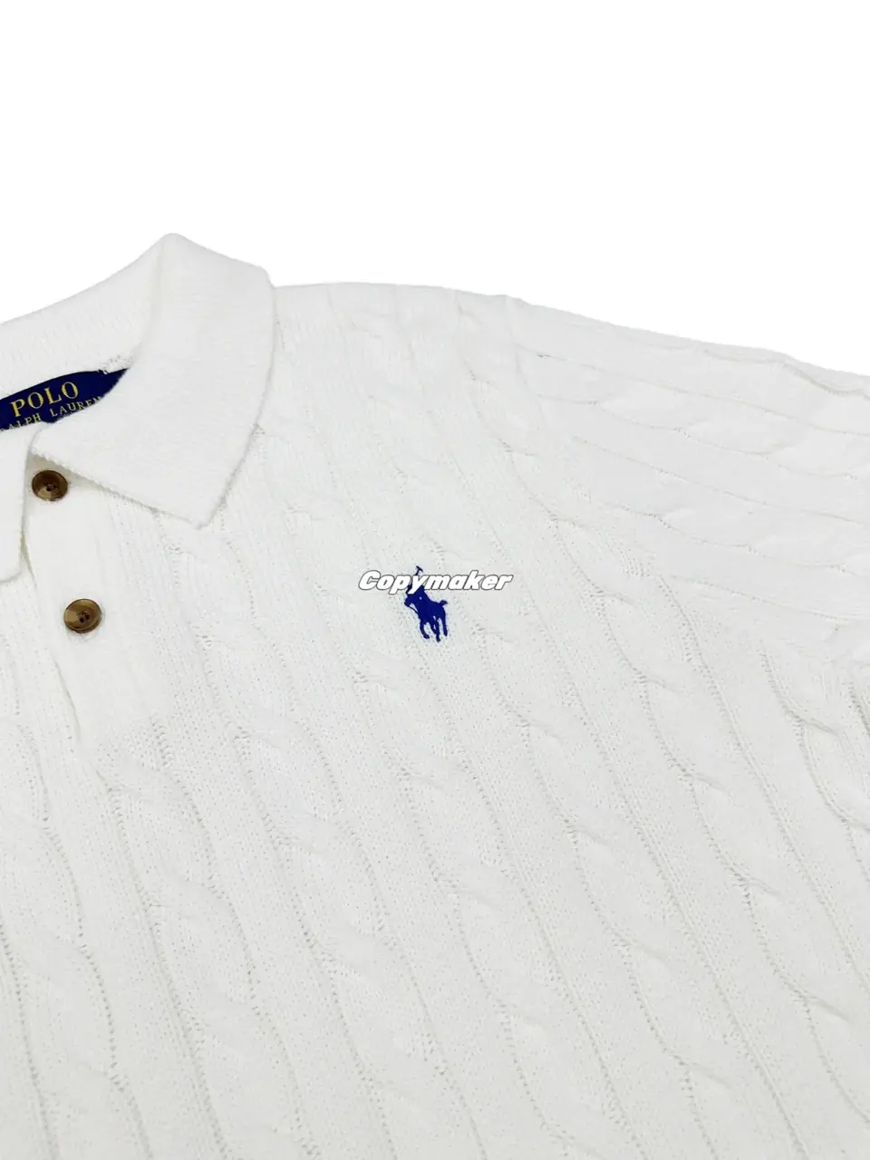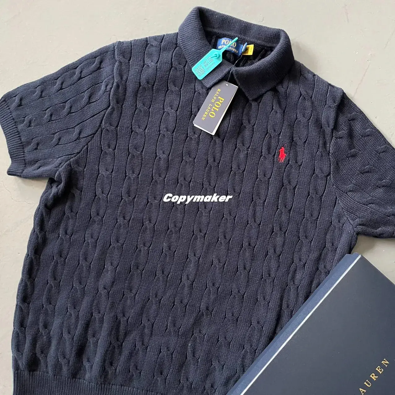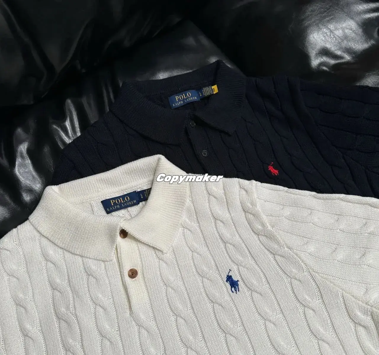 【現貨】Ra1ph Lauren Polo 小馬刺繡 麻花針織老錢風 polo衫短袖T恤 藏青/白色