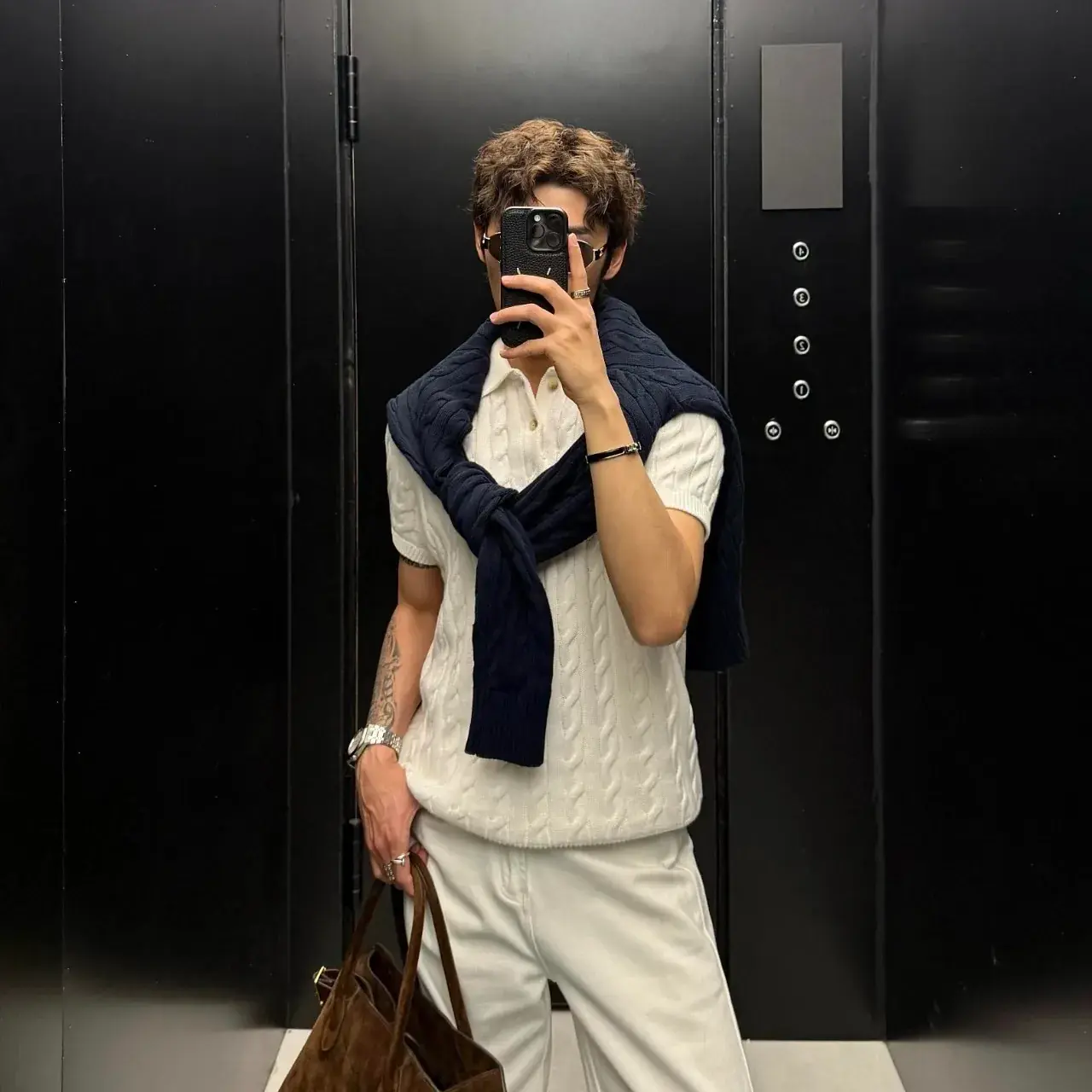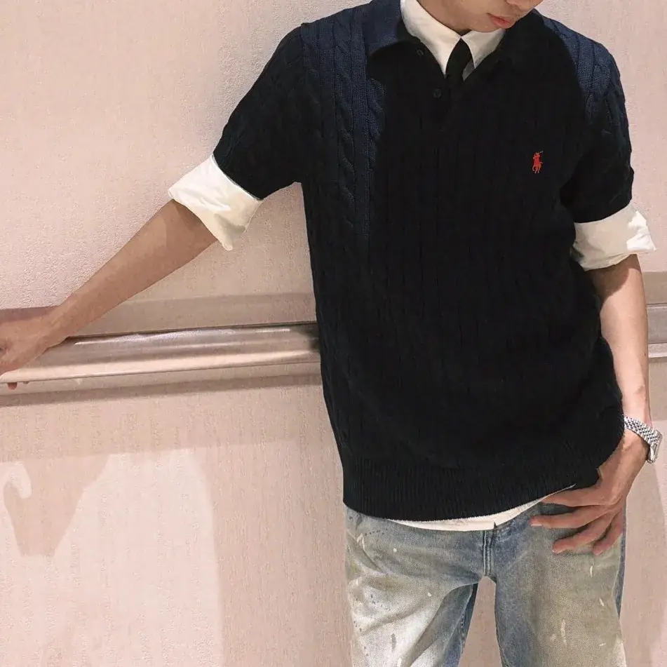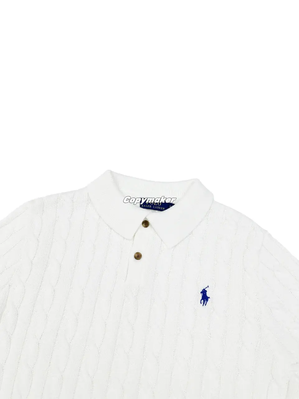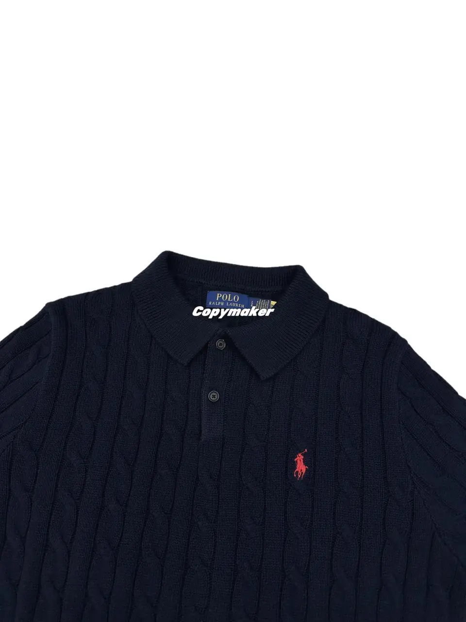 【現貨】Ra1ph Lauren Polo 小馬刺繡 麻花針織老錢風 polo衫短袖T恤 藏青/白色