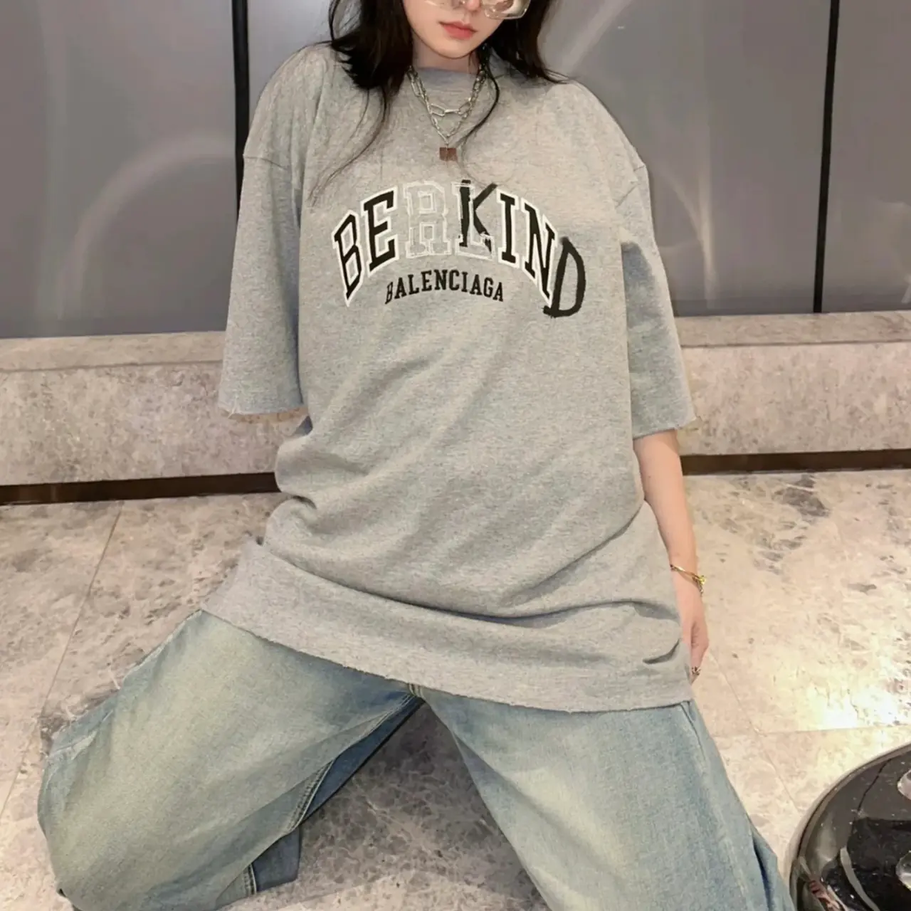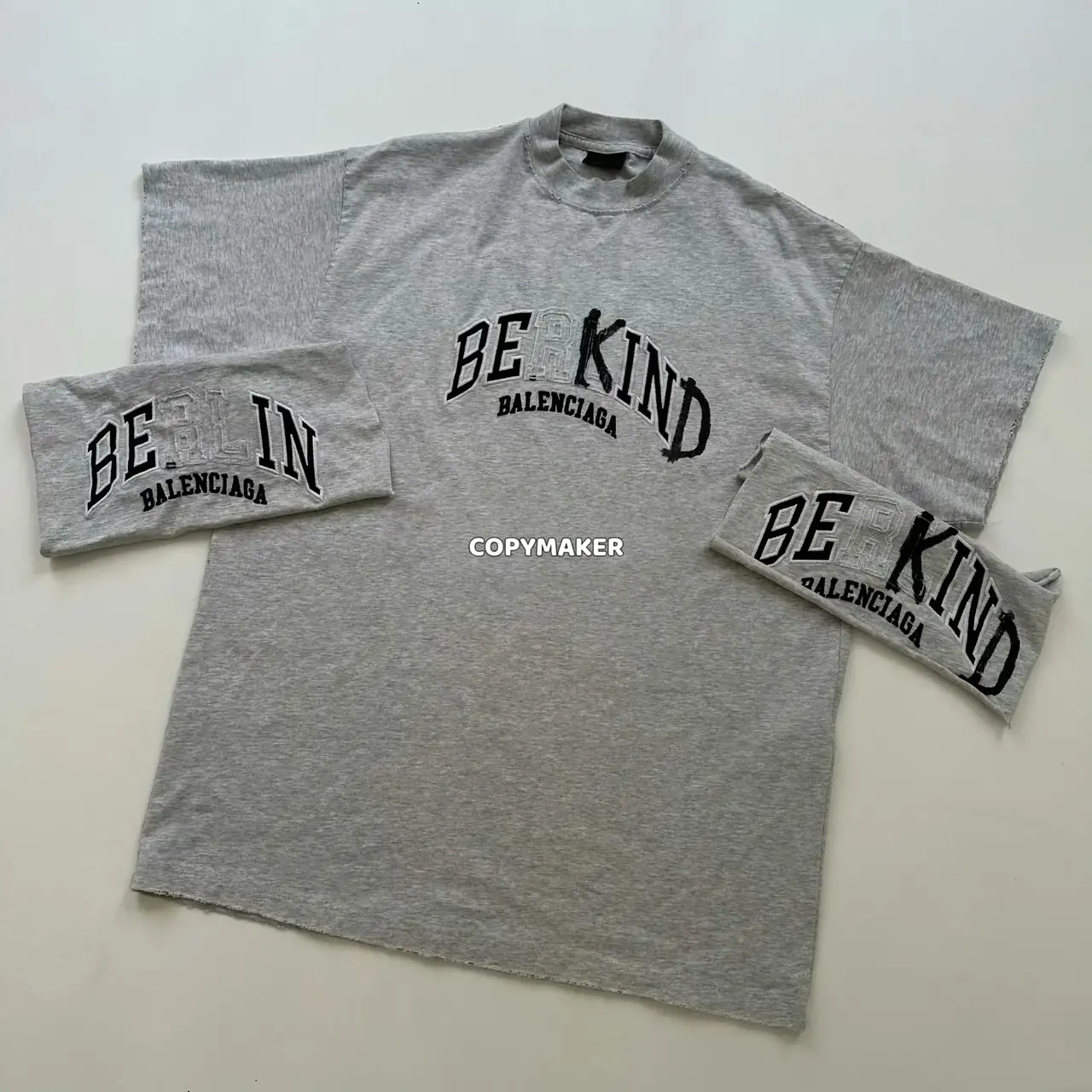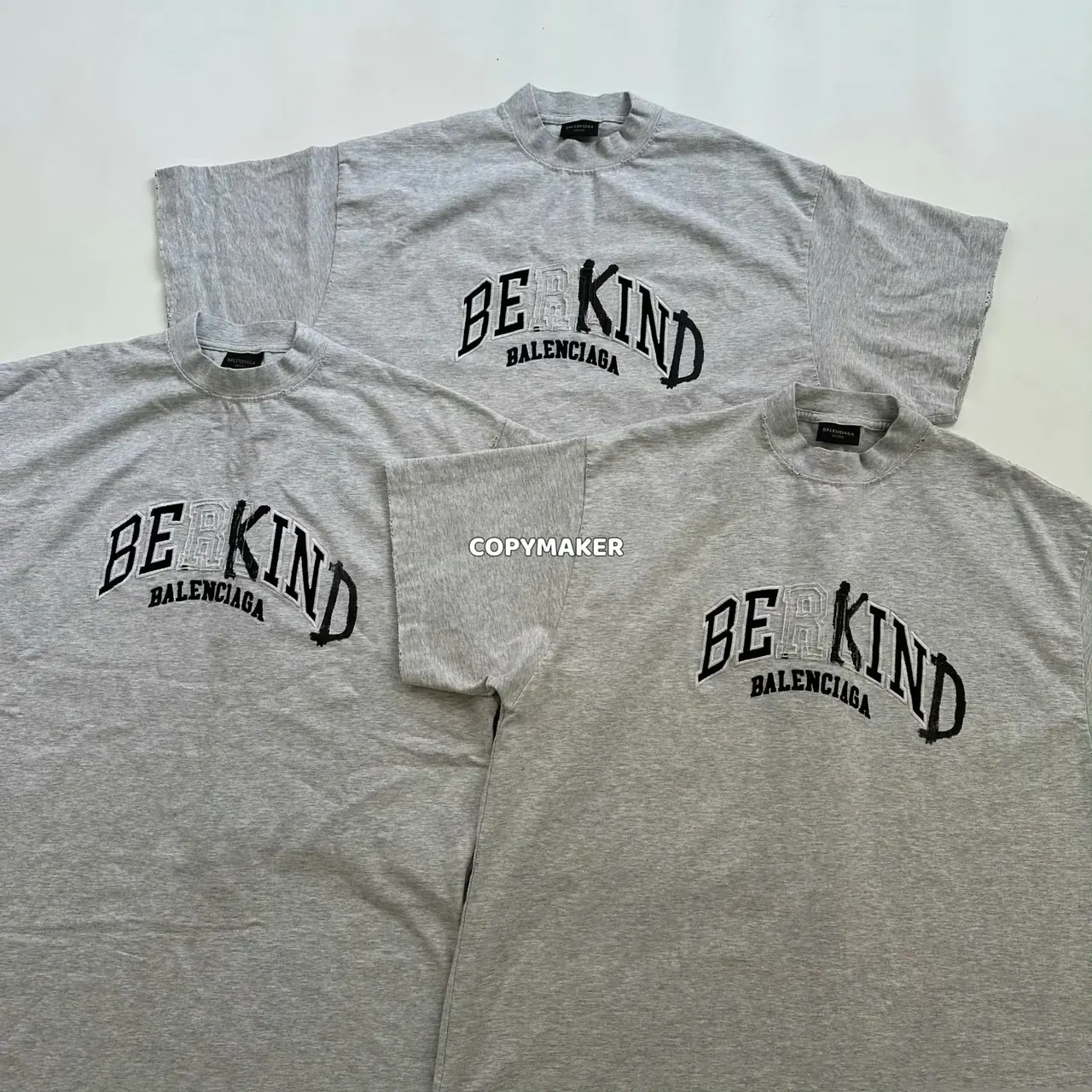 【福利回饋】巴黎 BLC 23SS Be kind 補丁刺繡做舊破壞 logo字母 短袖T恤 灰色