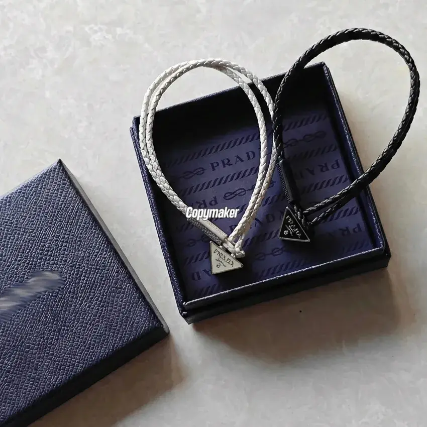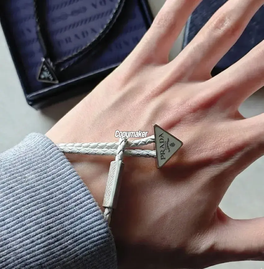 【預售】【新年福利】【過驗】PRA 三角標 Nappa小羊皮 手鏈手環手繩 經典款 黑色/米白