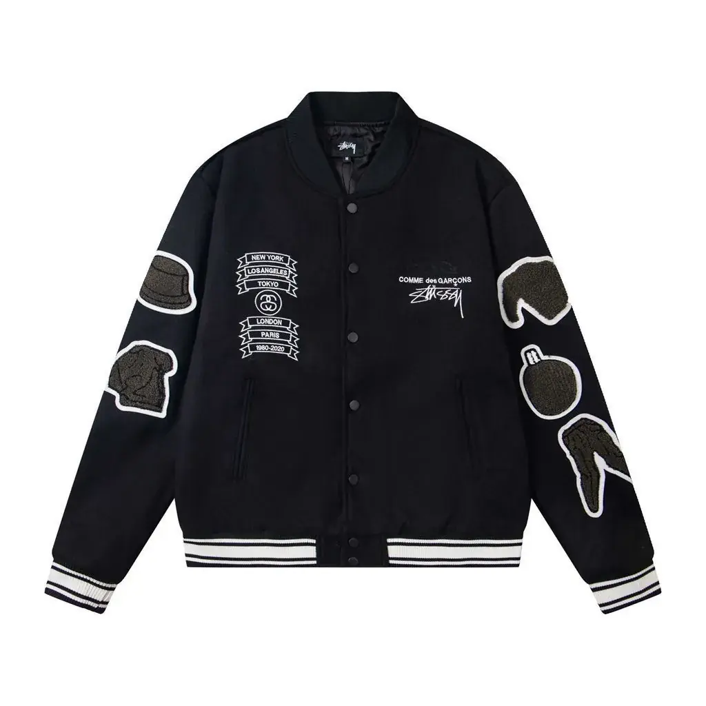【預售】【福利回饋】CDG x Stussy Varsity Jacket 聯名 徽章刺繡背後印花 羊毛棒球外套夾克
