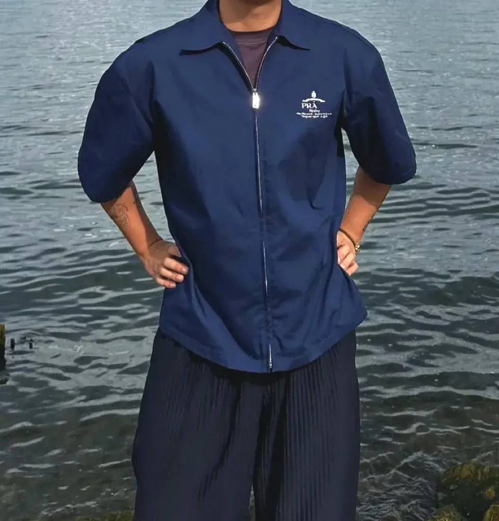 【預售】【過驗】PRA 24FW 殘缺字母logo印花 拉鍊短袖T恤薄夾克 皇家藍