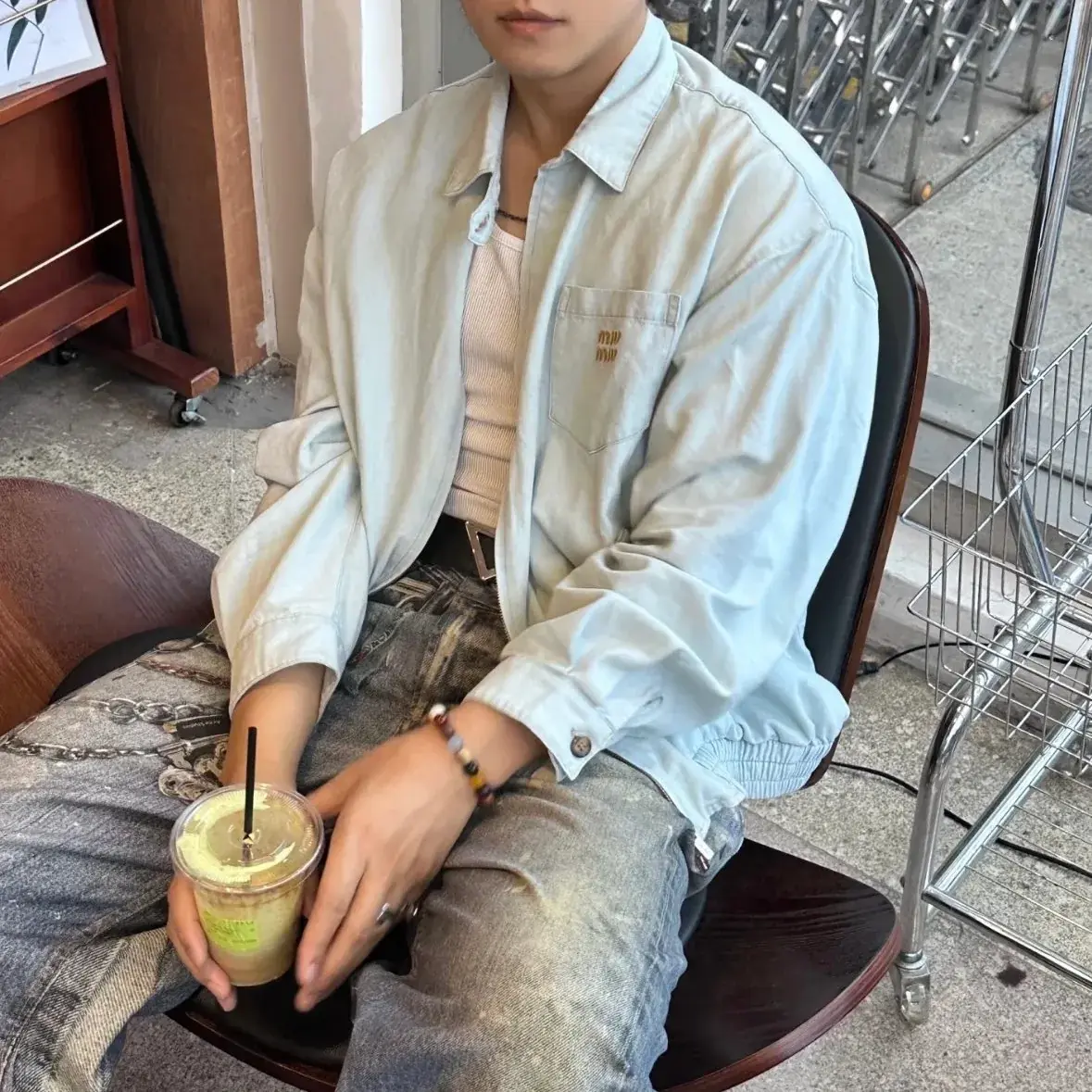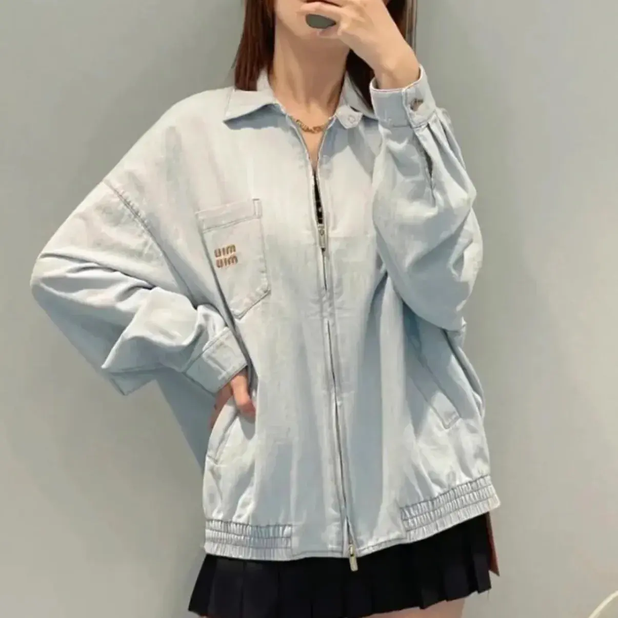【預售】【雙11福利】M1U M1U 25FW 繆繆 Automne系列 字母貼布刺繡 拉鍊夾克牛仔外套