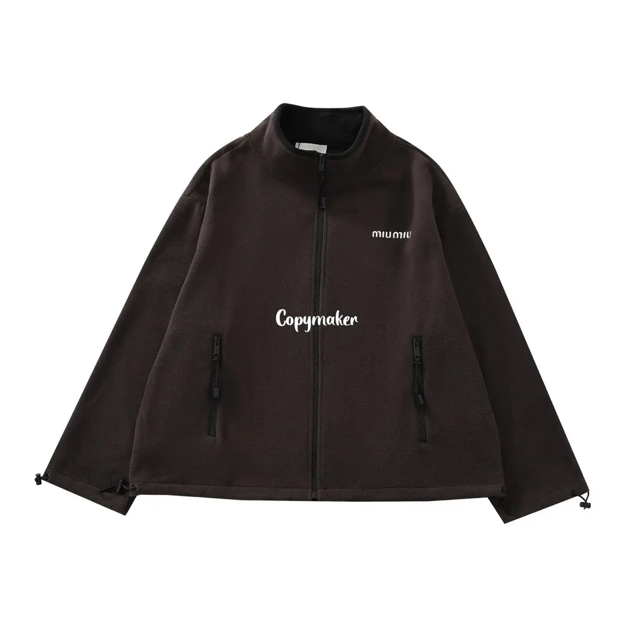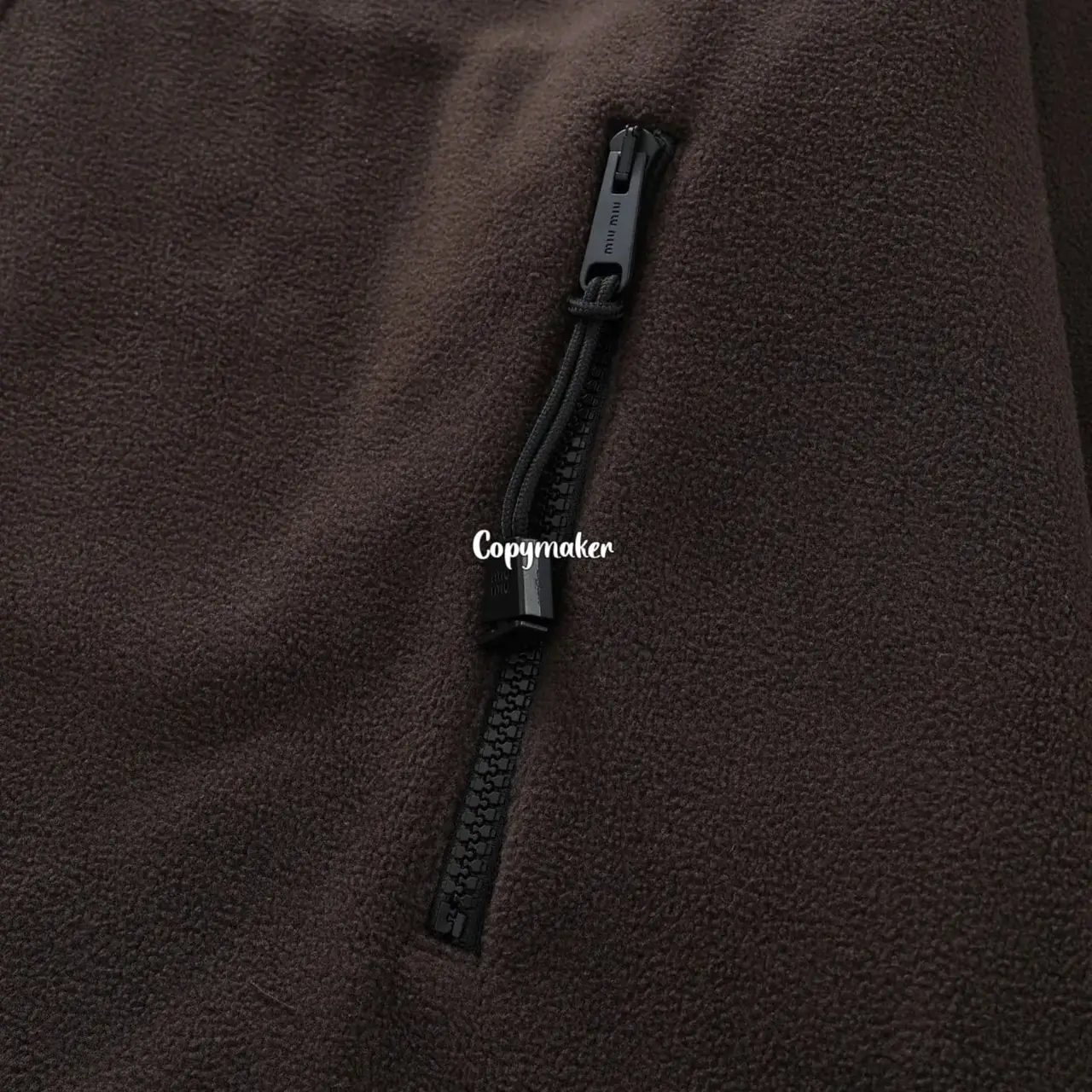 【預售】【雙11福利】M1U M1U 25SS 繆繆 字母Logo刺繡 搖粒絨 立領夾克外套 深棕