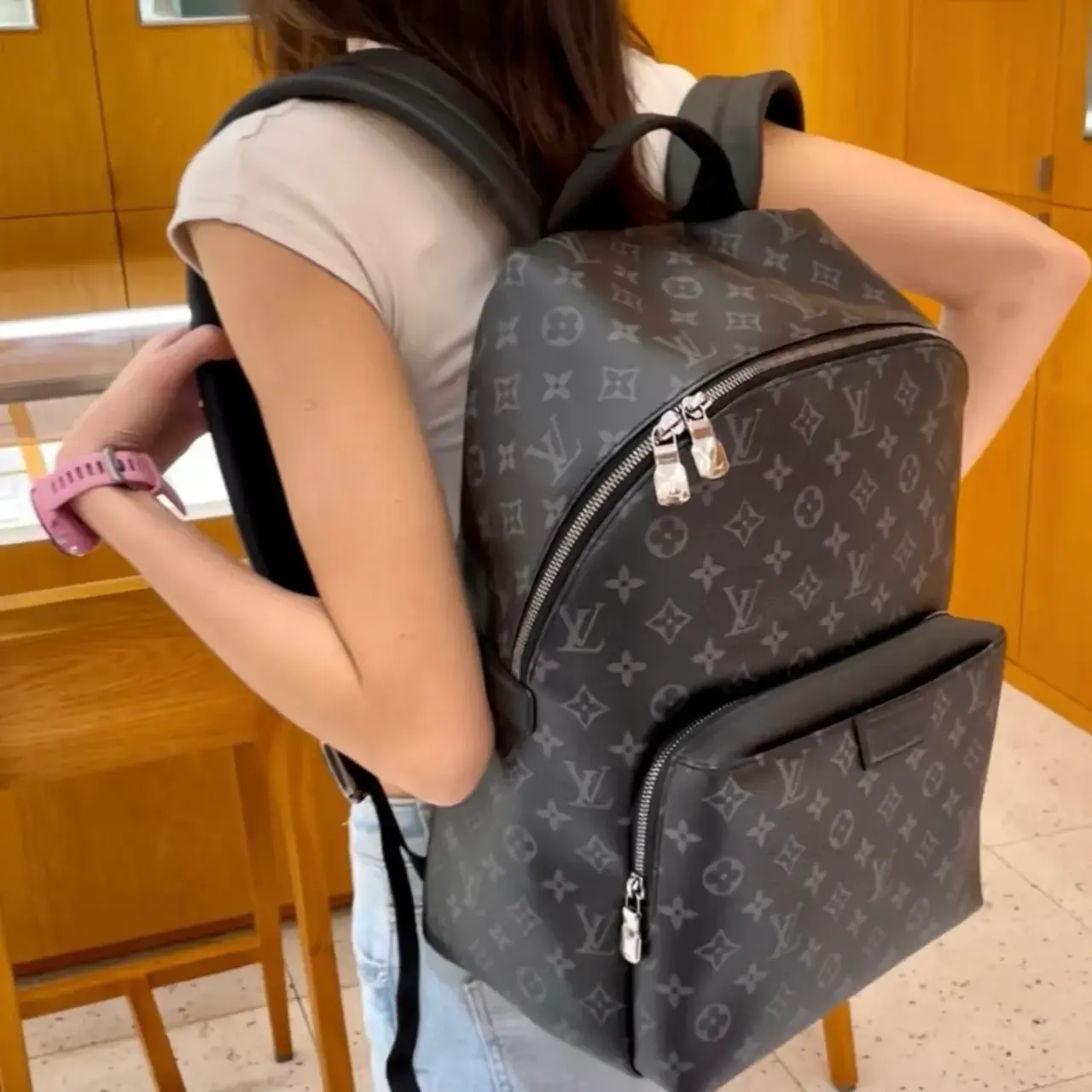 【預售】1V Discovery PM 經典老花 帆布拼接牛皮 後背包雙肩包 黑色