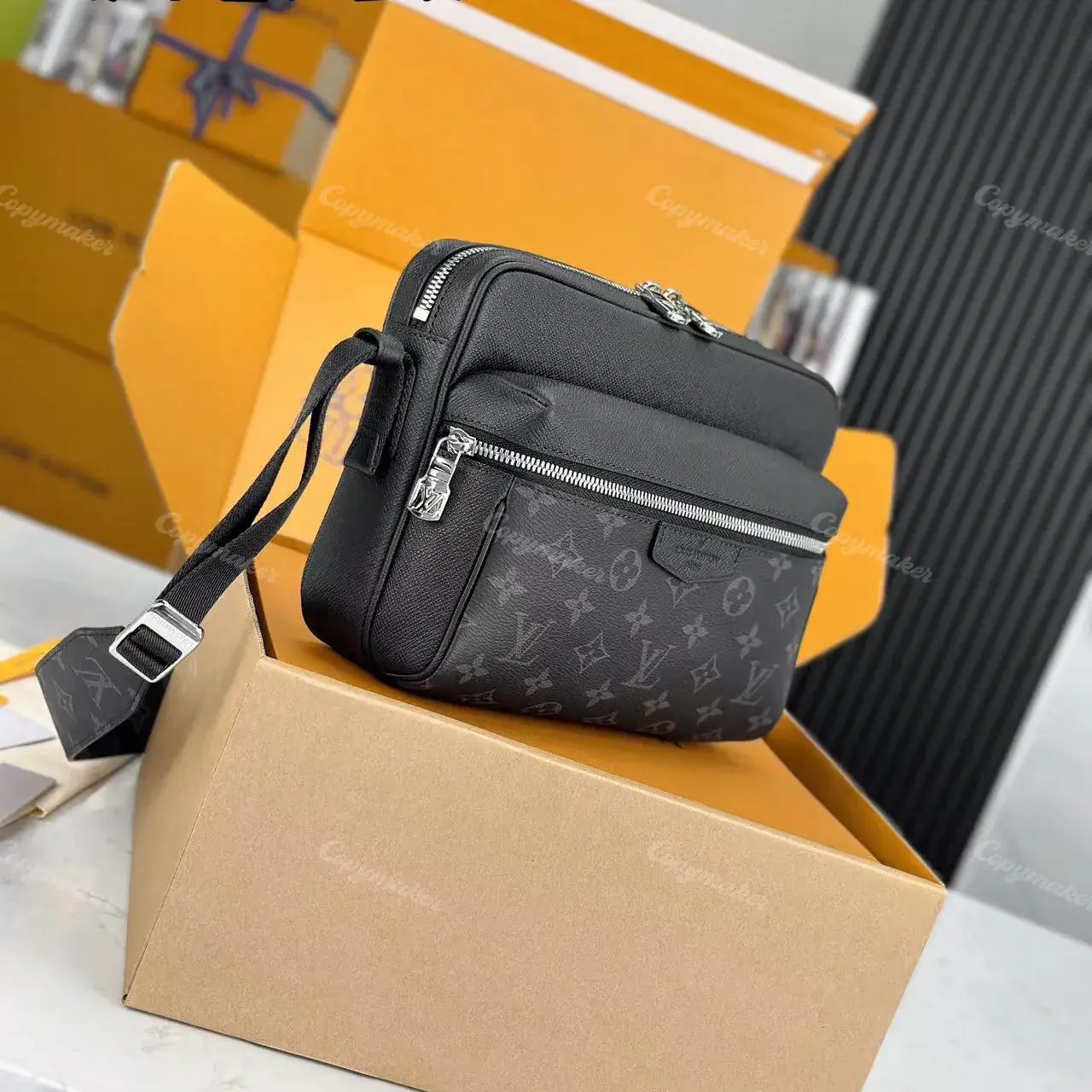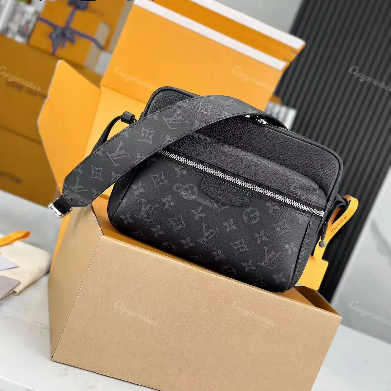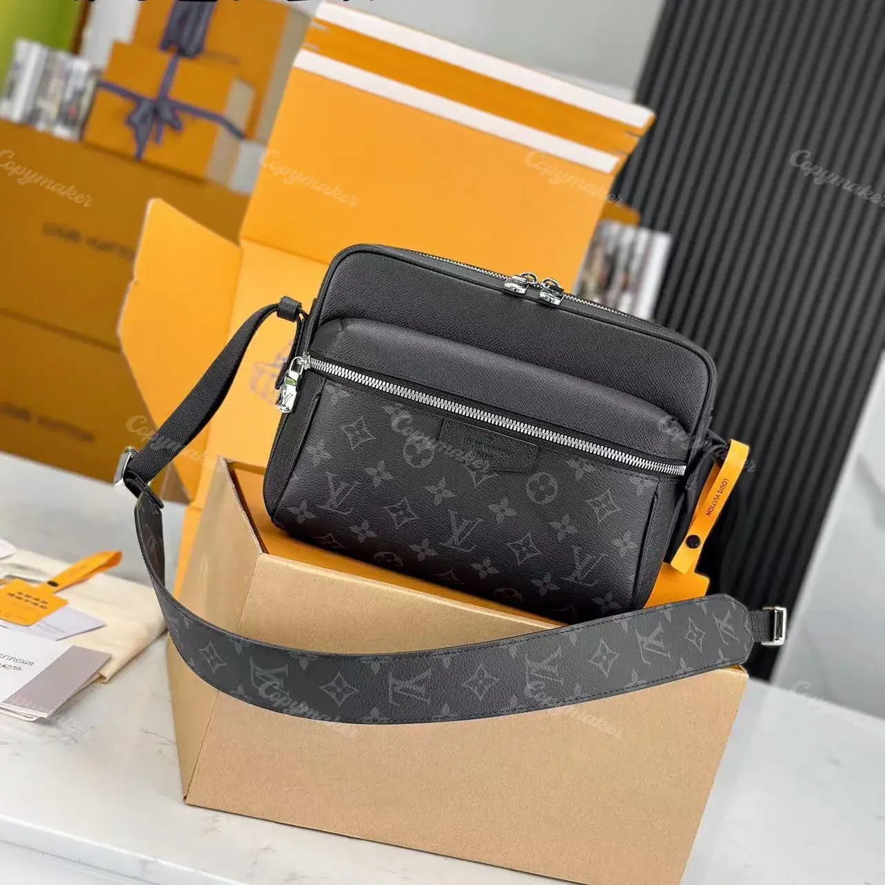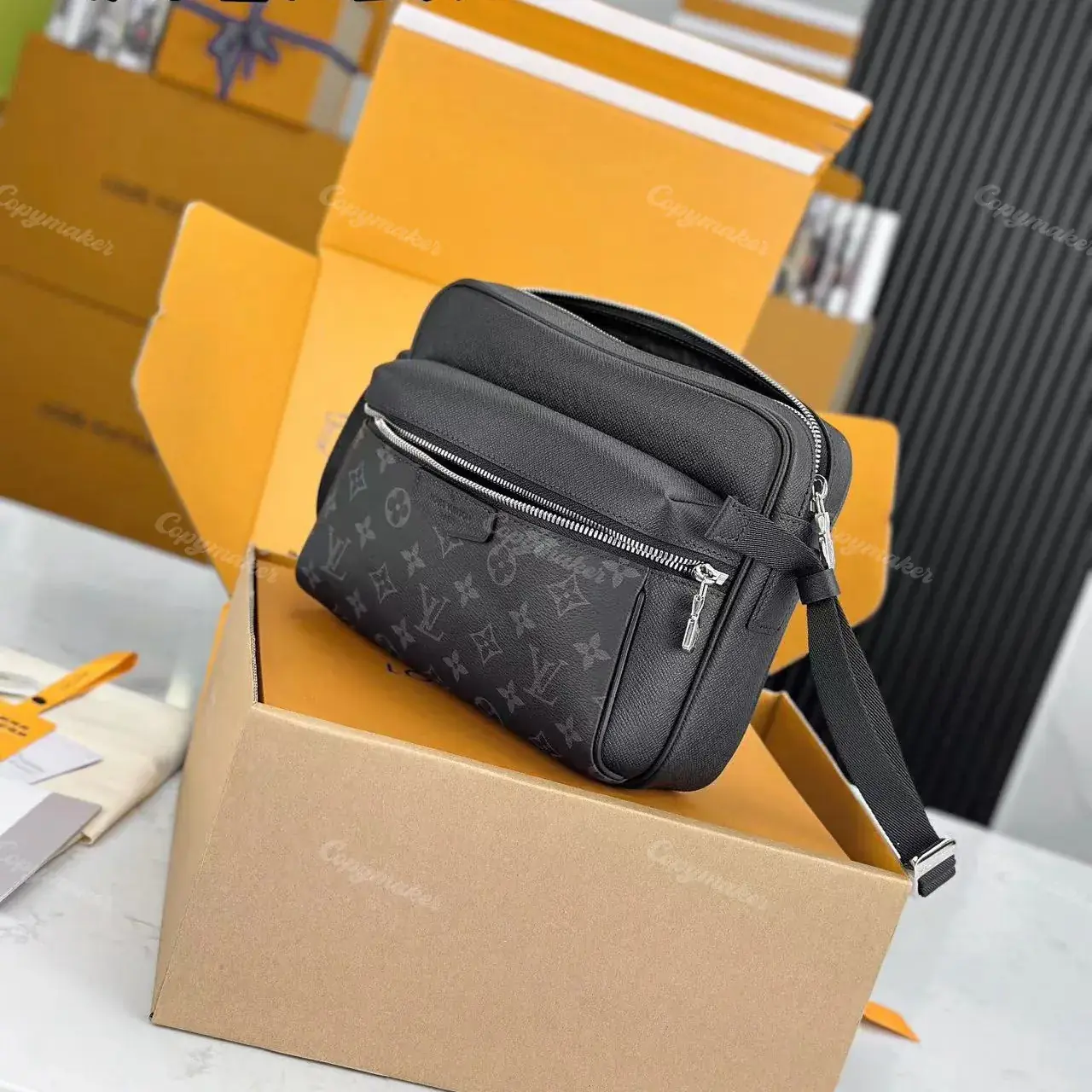【預售】1V Outdoor 經典老花 牛皮拼接帆布 郵差包側背包單肩包 黑色