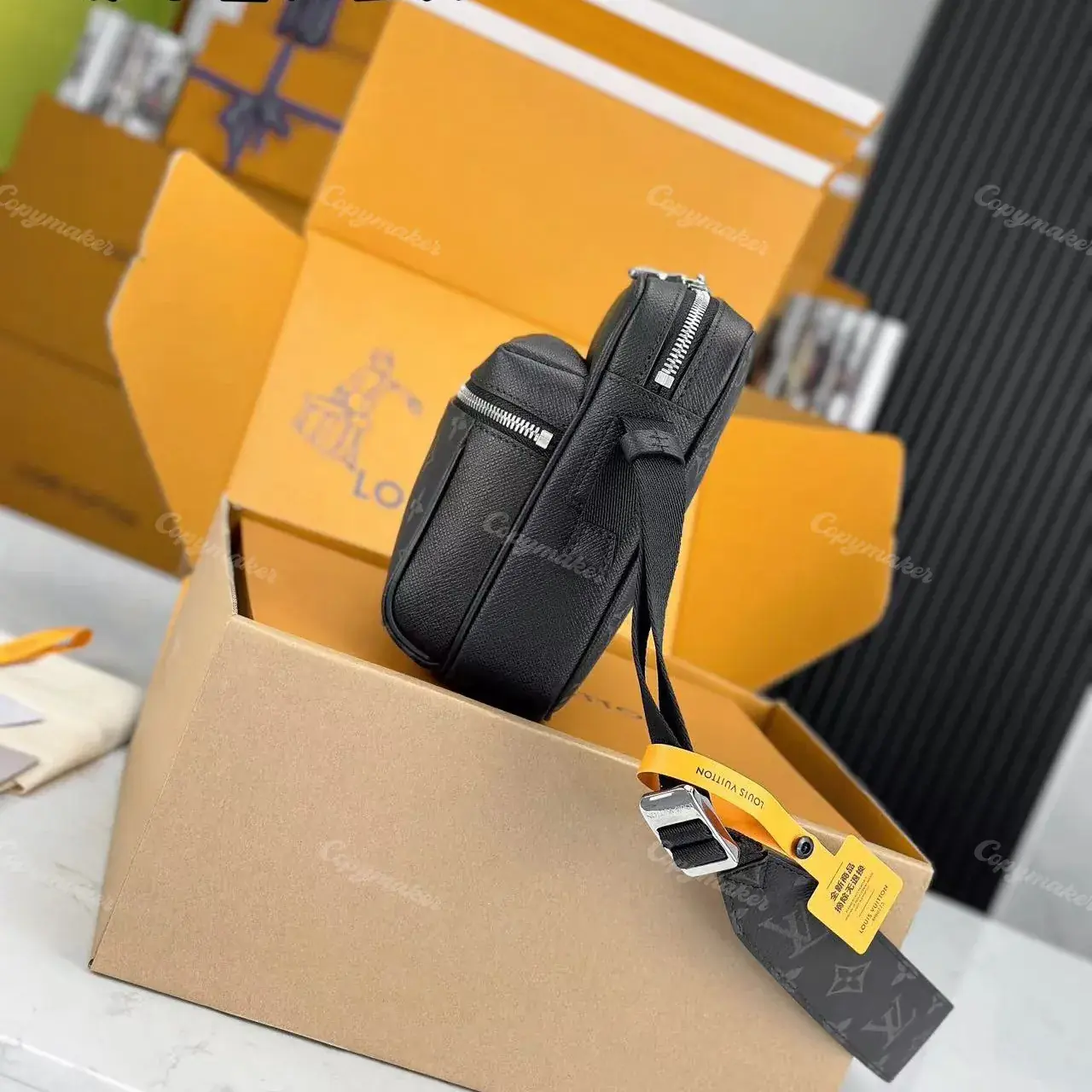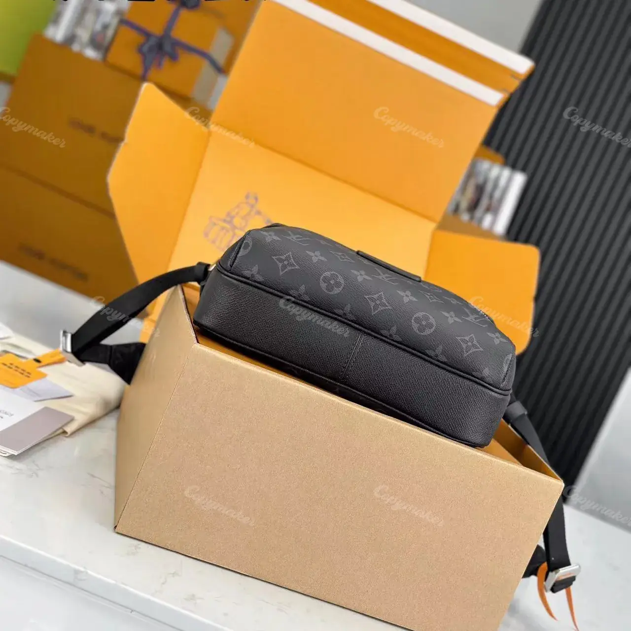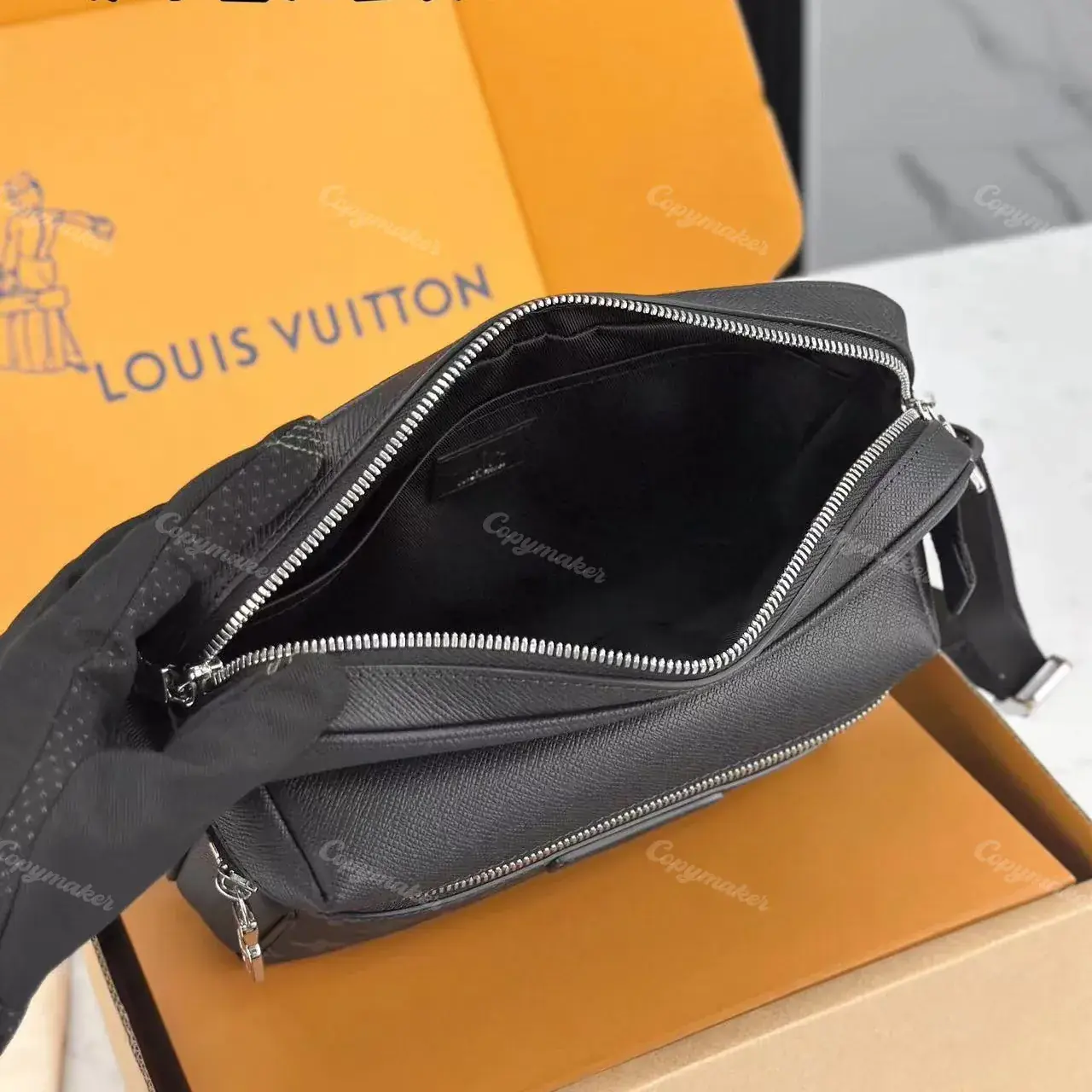 【預售】1V Outdoor 經典老花 牛皮拼接帆布 郵差包側背包單肩包 黑色