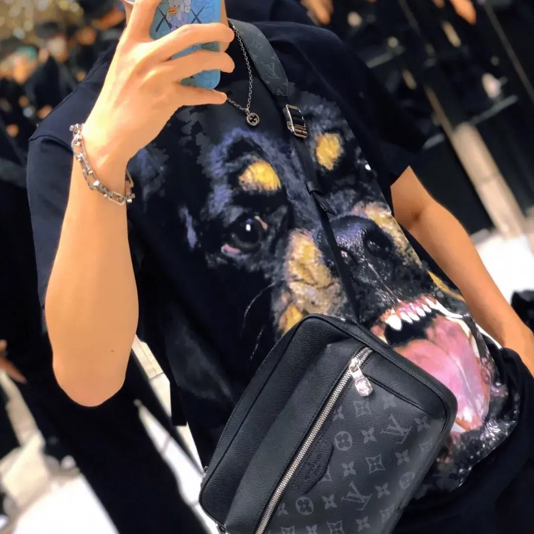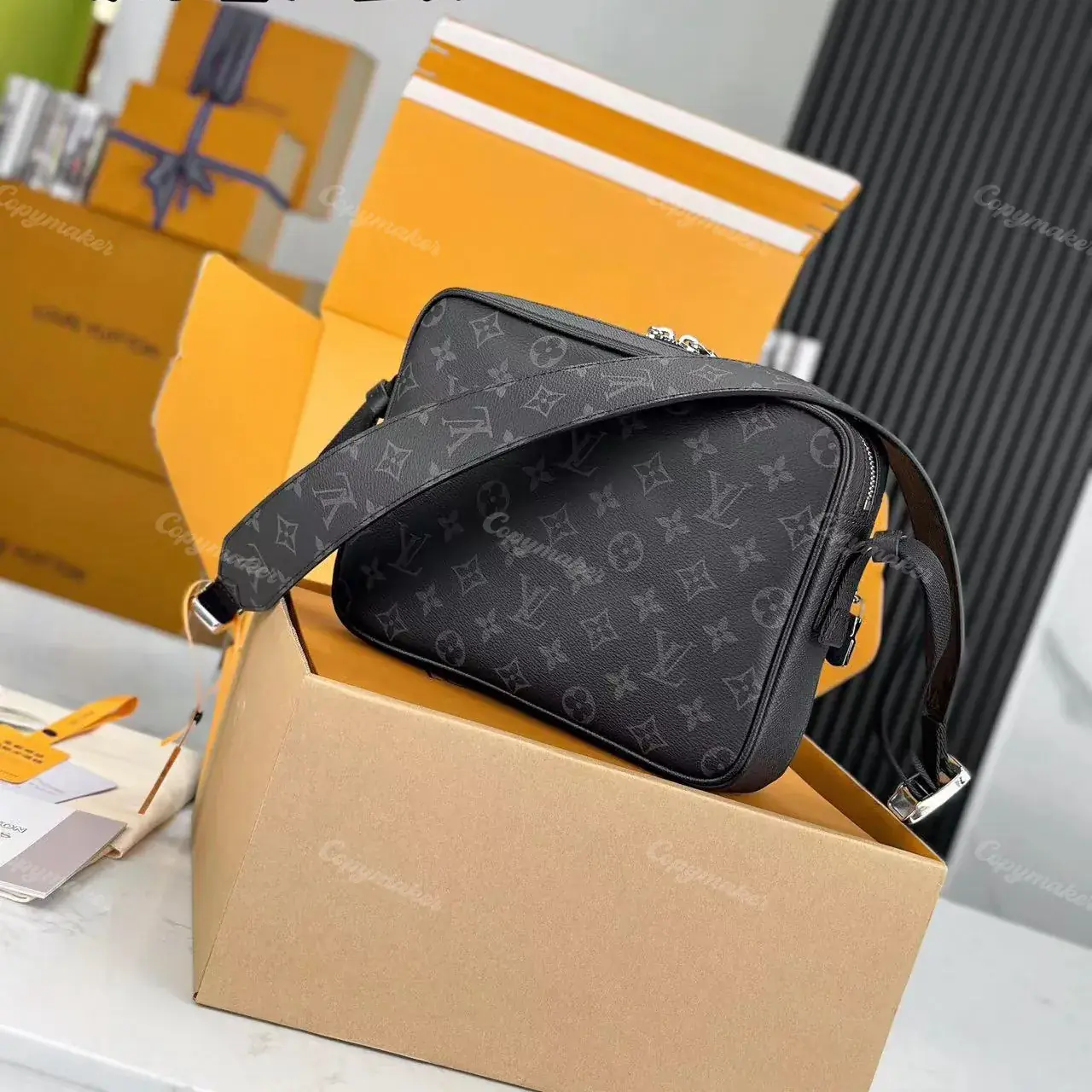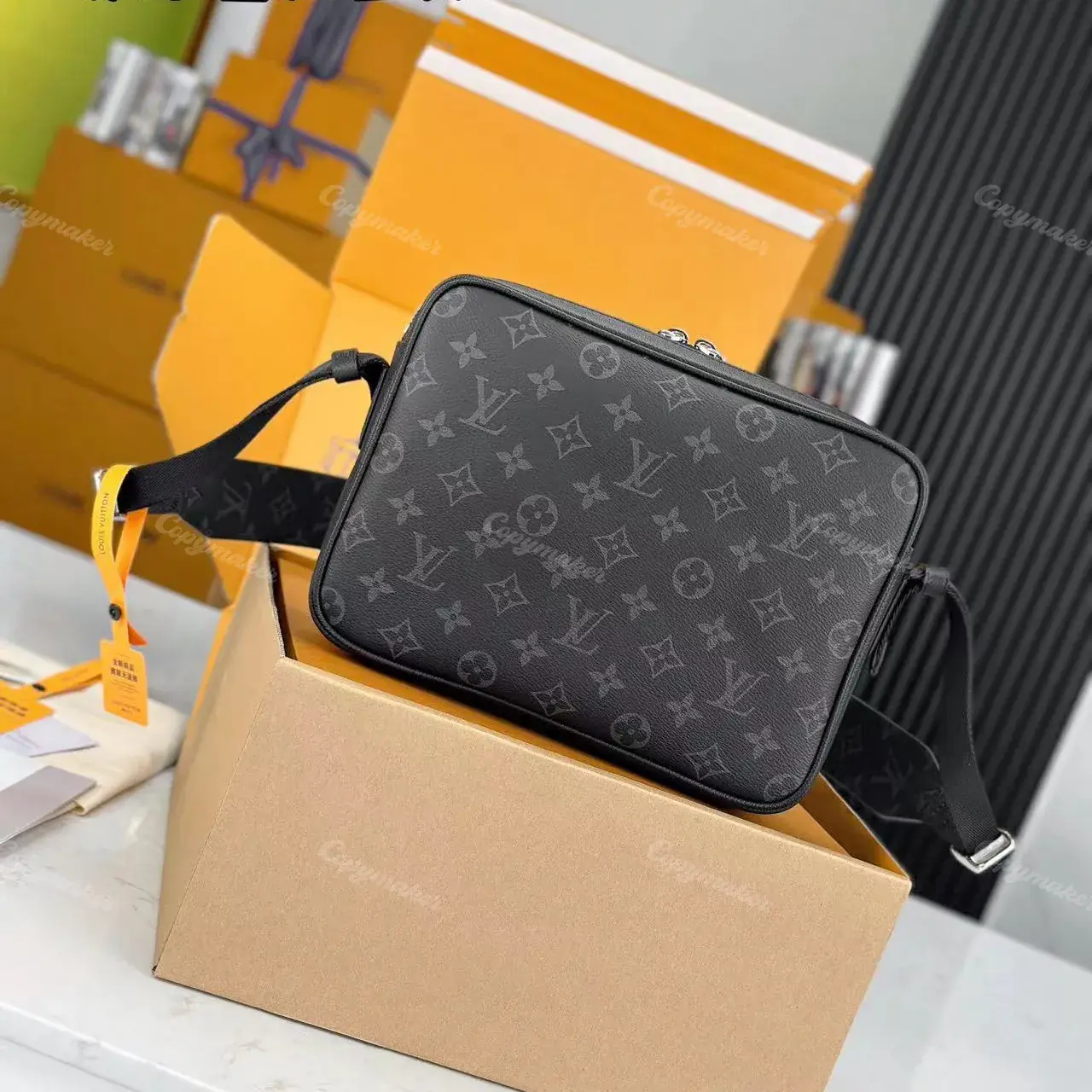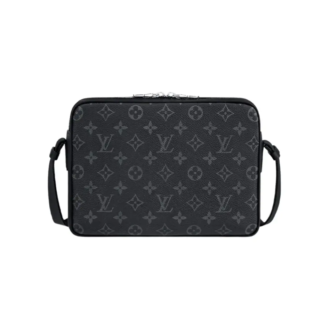 【預售】1V Outdoor 經典老花 牛皮拼接帆布 郵差包側背包單肩包 黑色