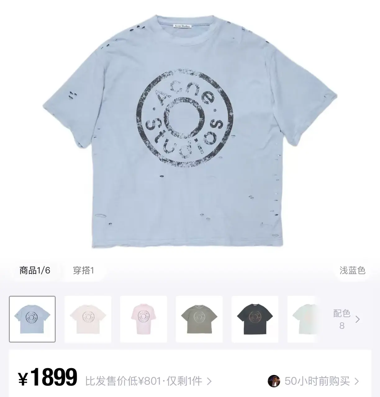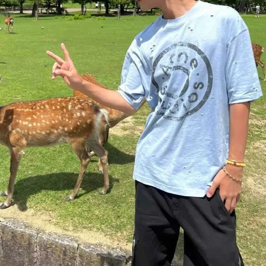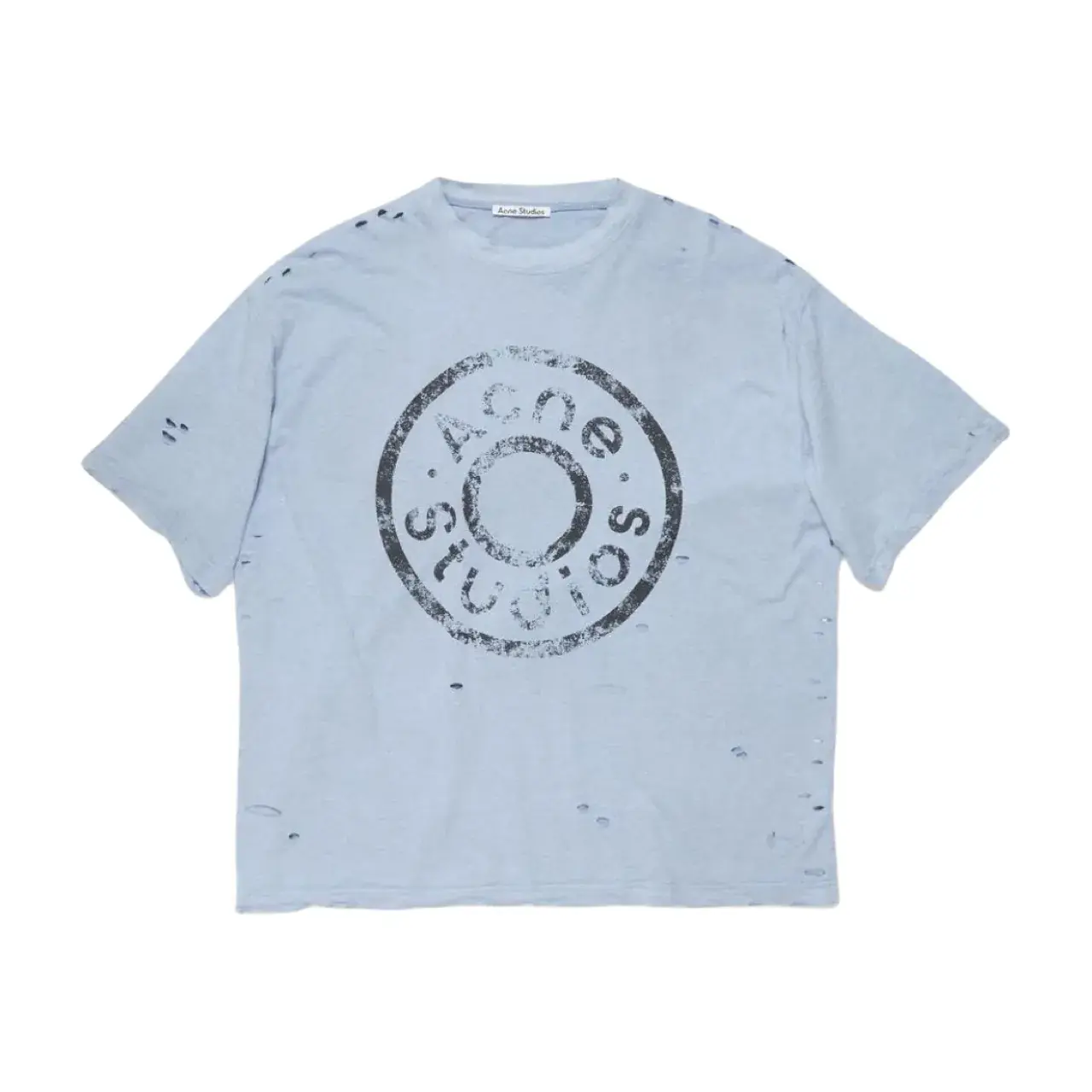 【預售】Acne Studios 24FW 水洗做舊破壞 大logo 純棉短袖T恤 天藍淺藍