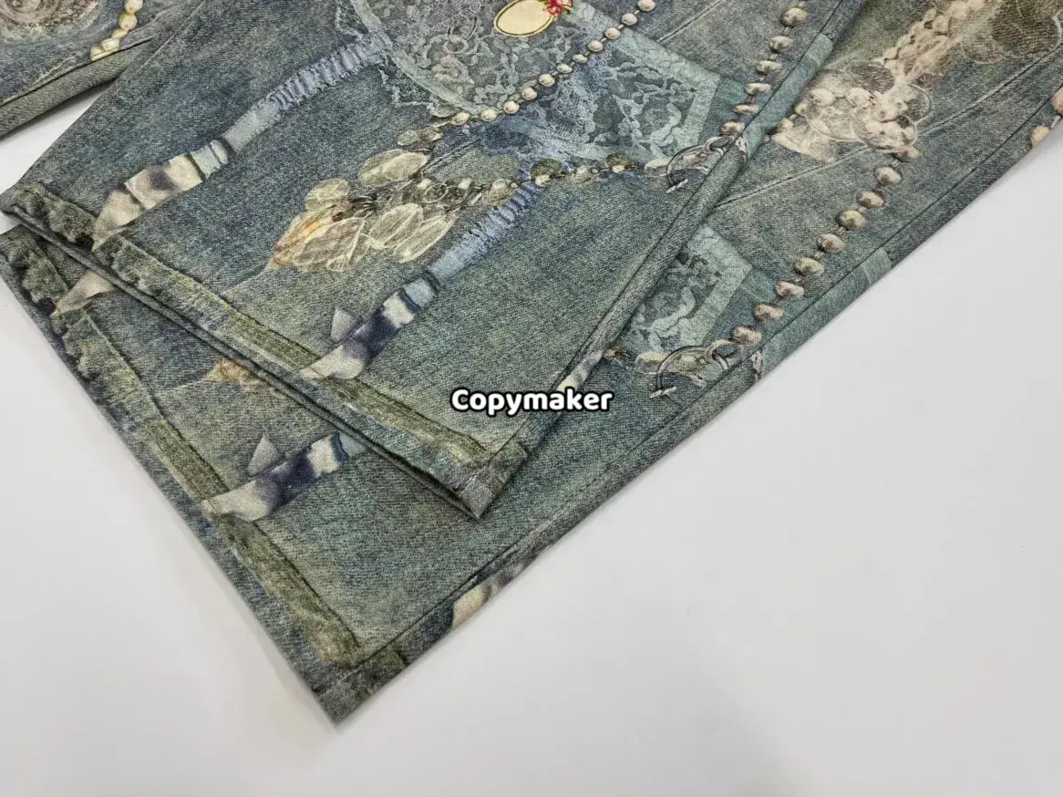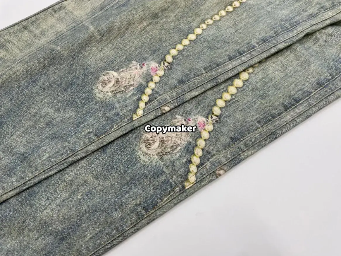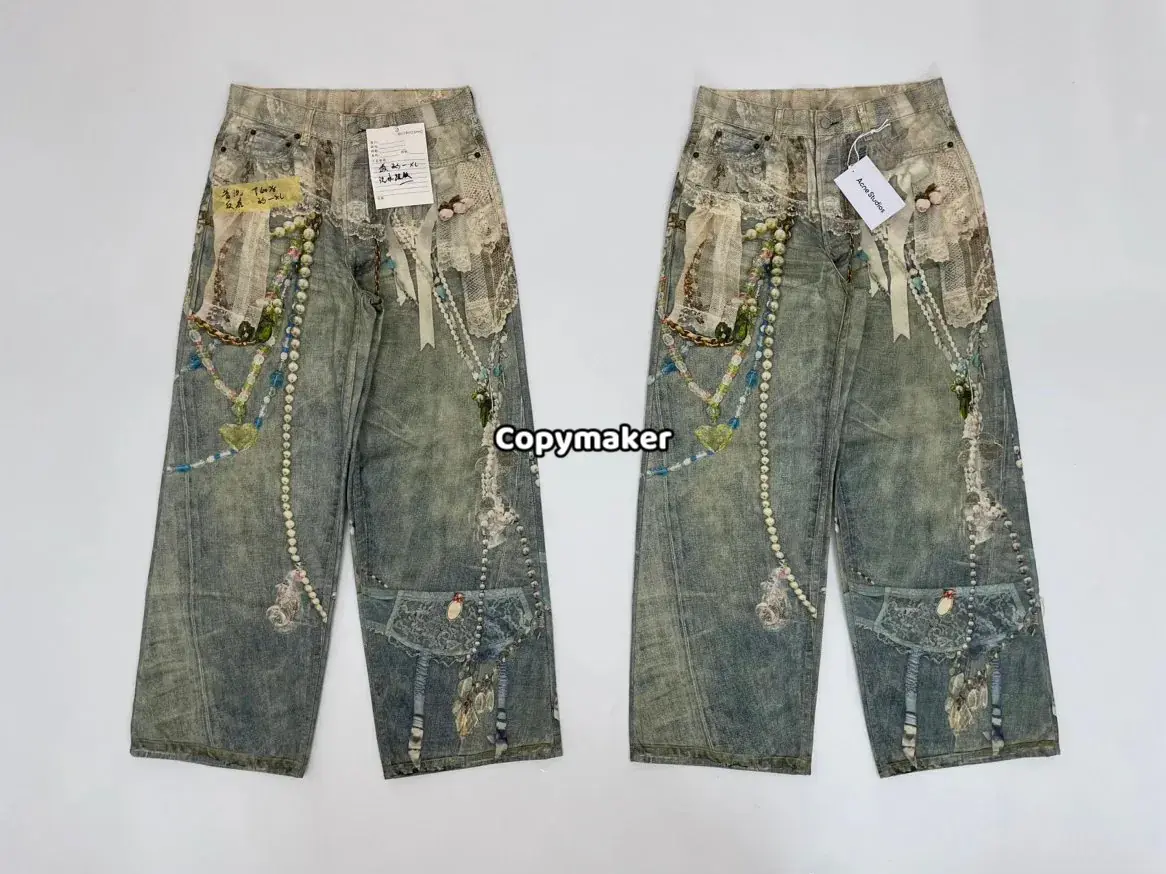 【預售】Acne Studios 25SS 蕾絲珍珠鍊條3D印花 牛仔褲工裝褲 1981M 男女同款