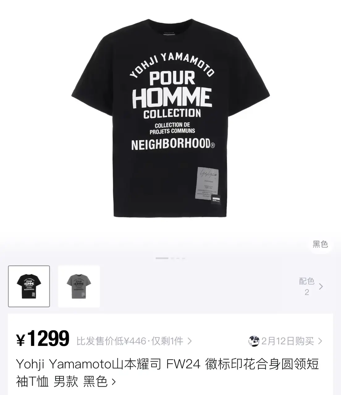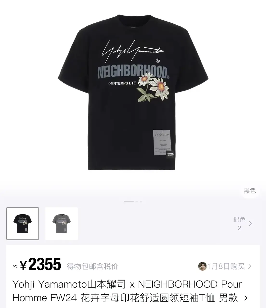 【預售】Yohji Yamamoto x NEIGHBORHOOD Pour Homme 24AW 聯名花卉字母 短袖T恤 山本耀司