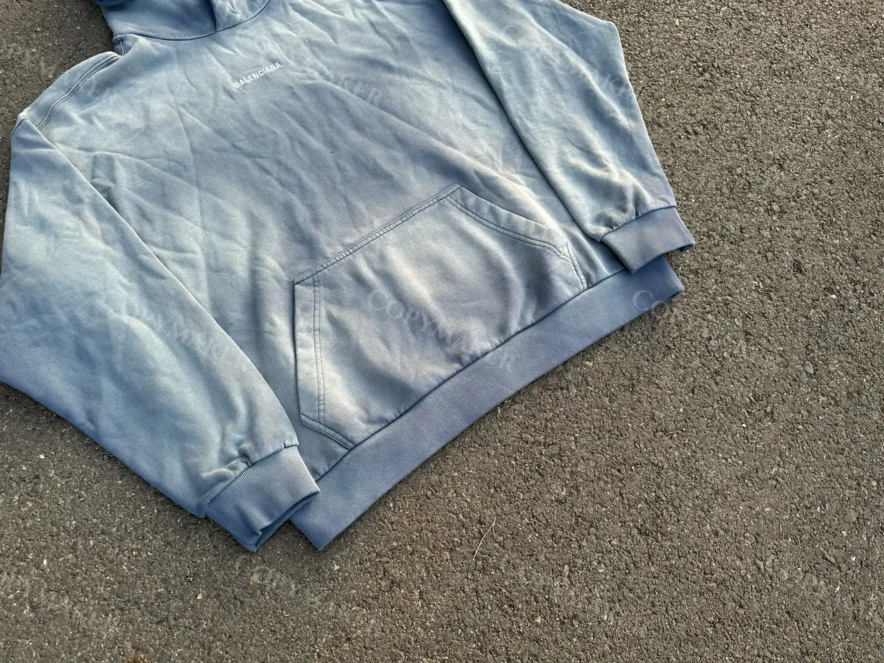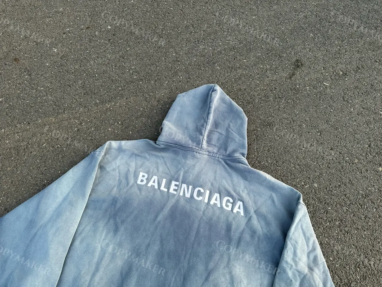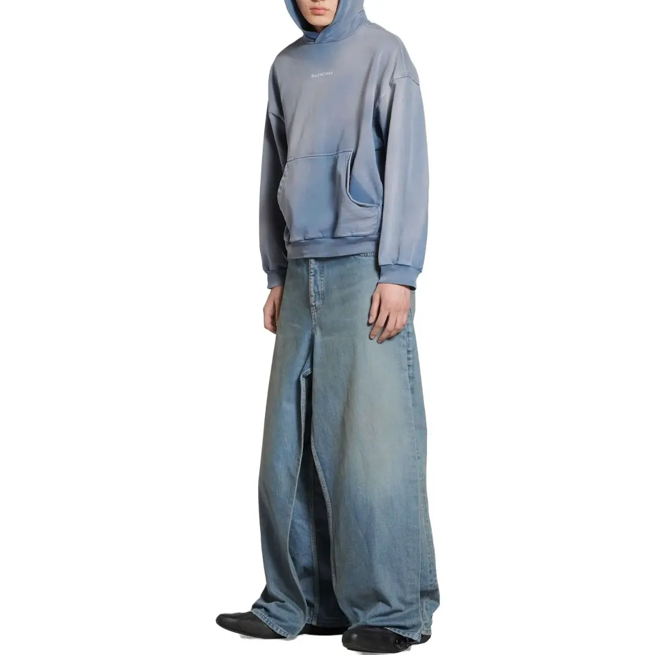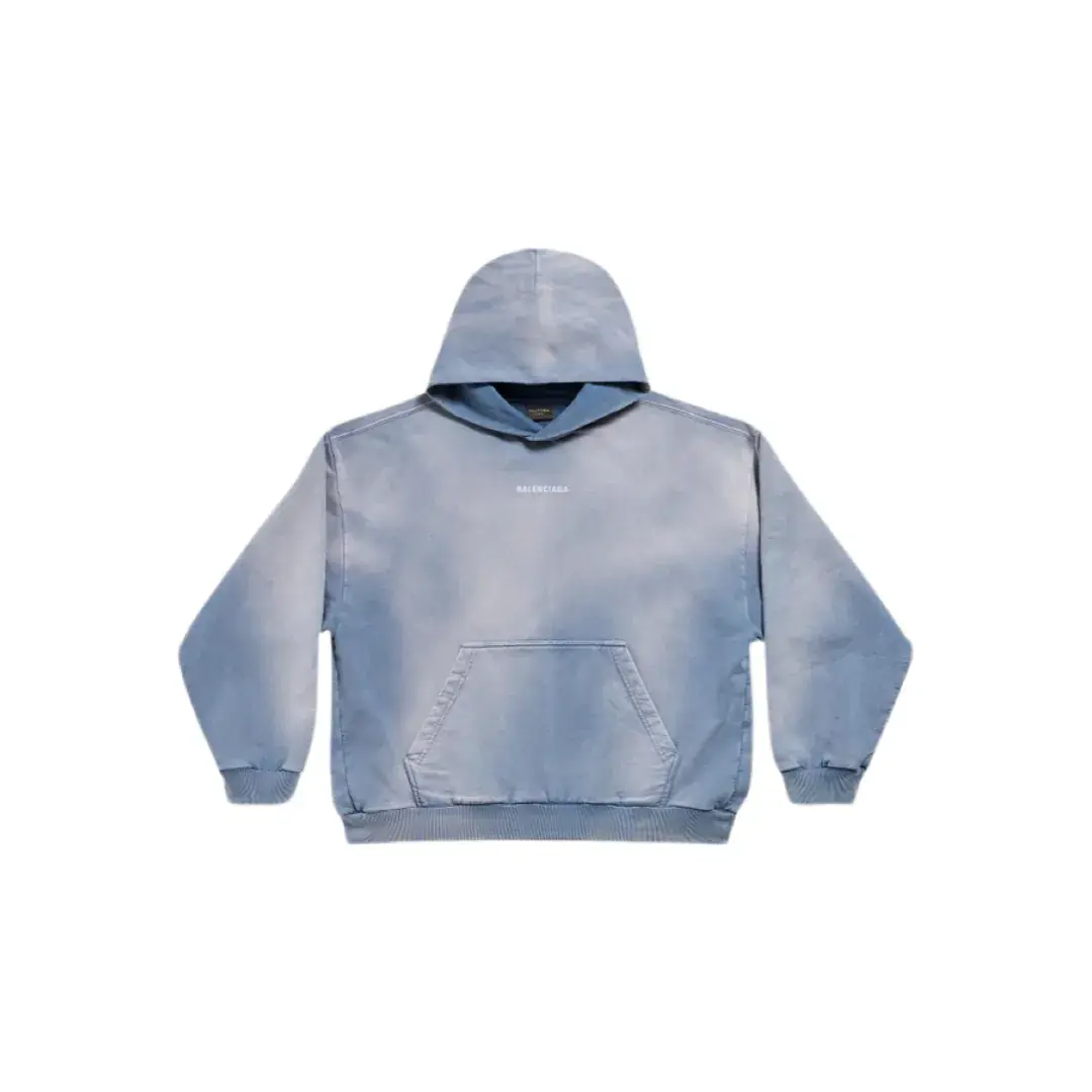 巴黎 BLC 23FW 經典logo 水洗做舊褪色 漸變漸層霧霾藍 帽T連帽衛衣帽衫