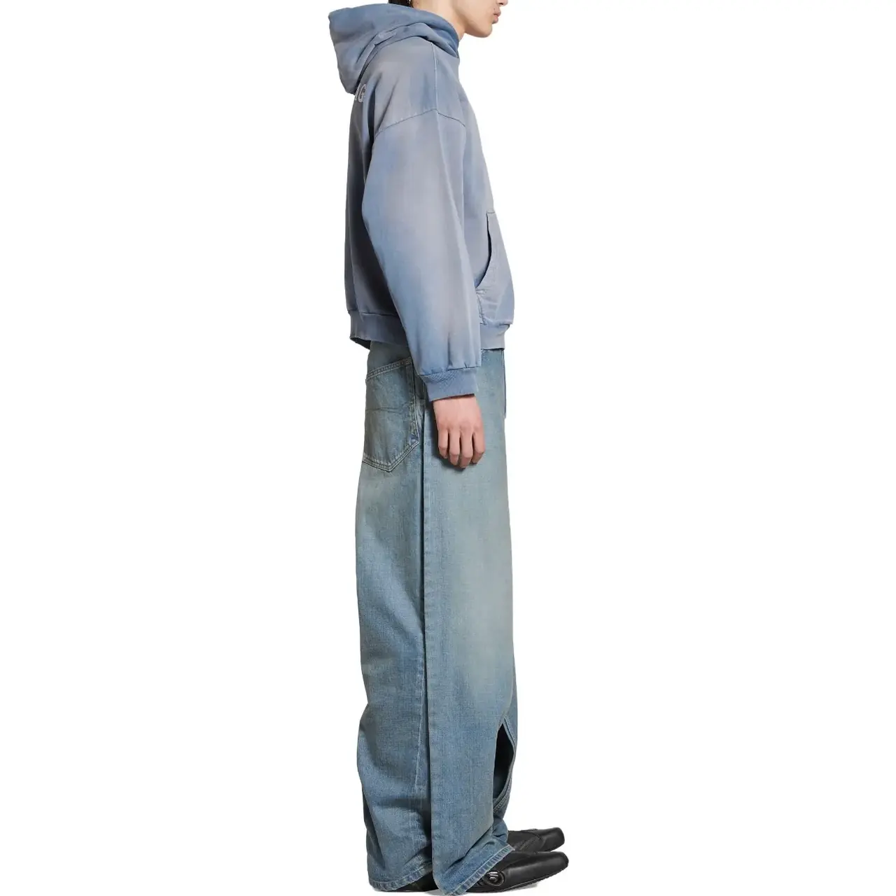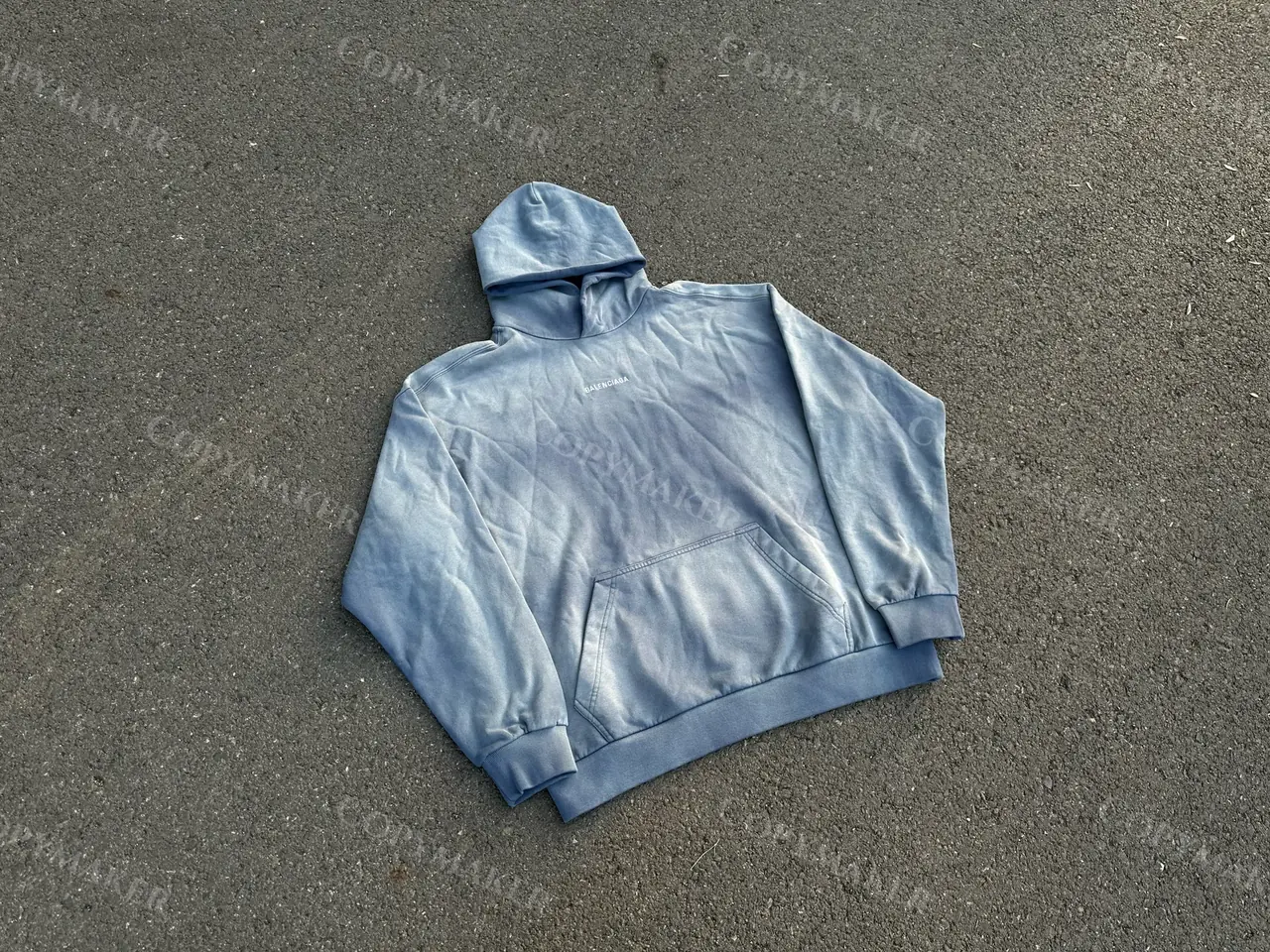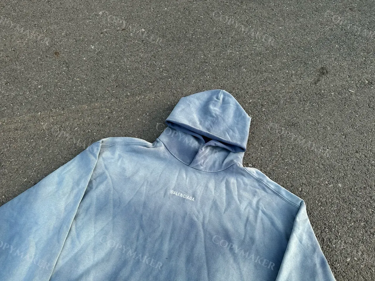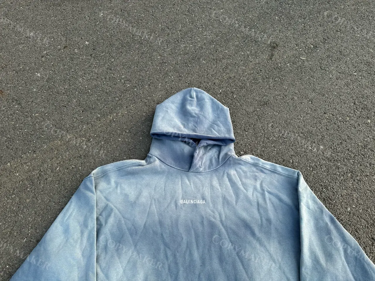 巴黎 BLC 23FW 經典logo 水洗做舊褪色 漸變漸層霧霾藍 帽T連帽衛衣帽衫