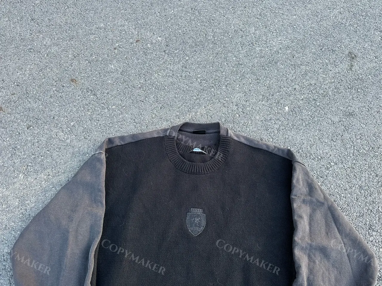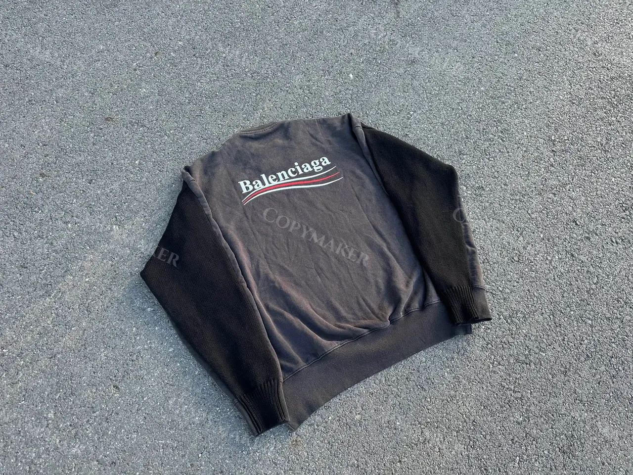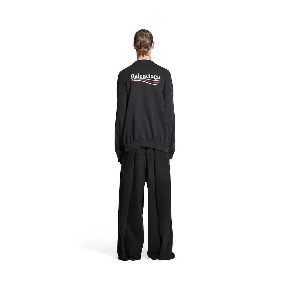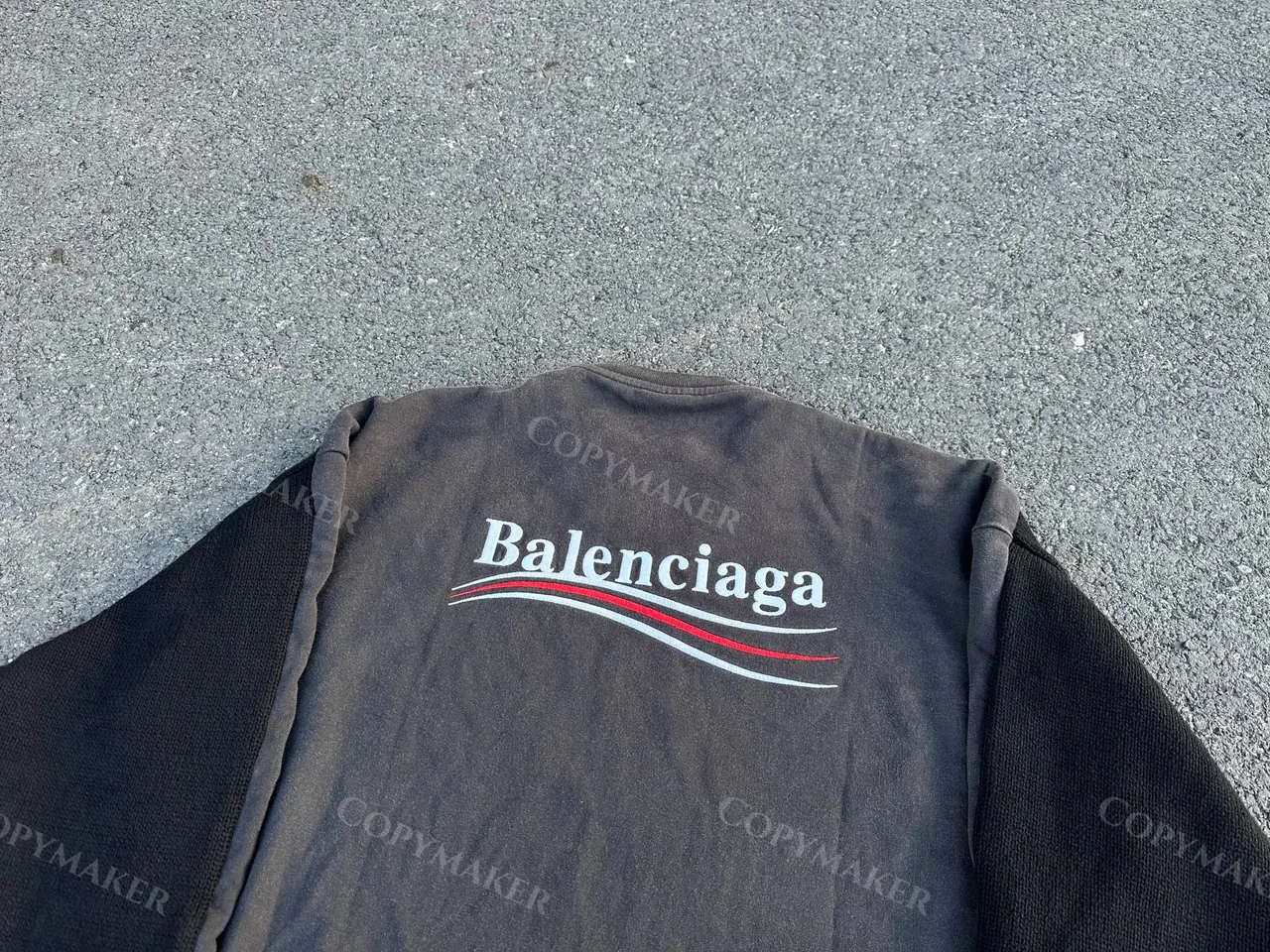 巴黎 BLC 23FW Political Campaign 水洗 可樂波浪徽章 衛衣拼接毛衣 大學T圓領衛衣