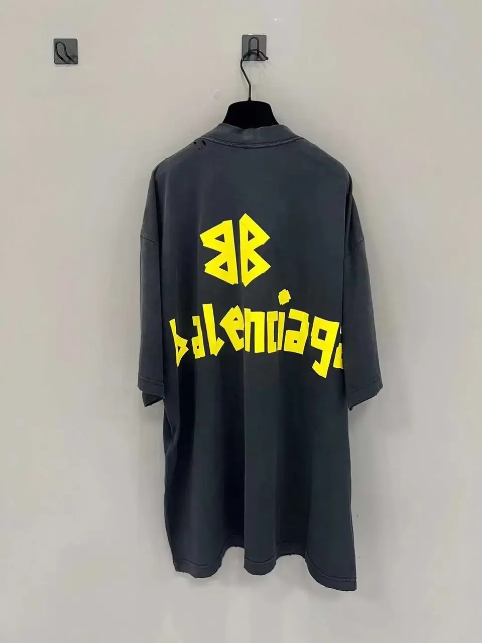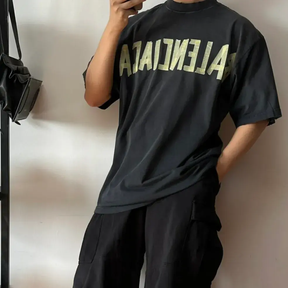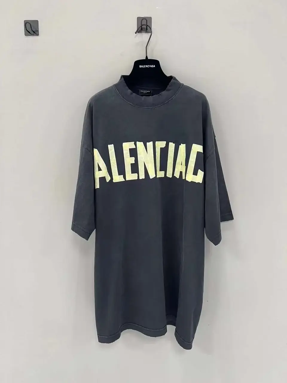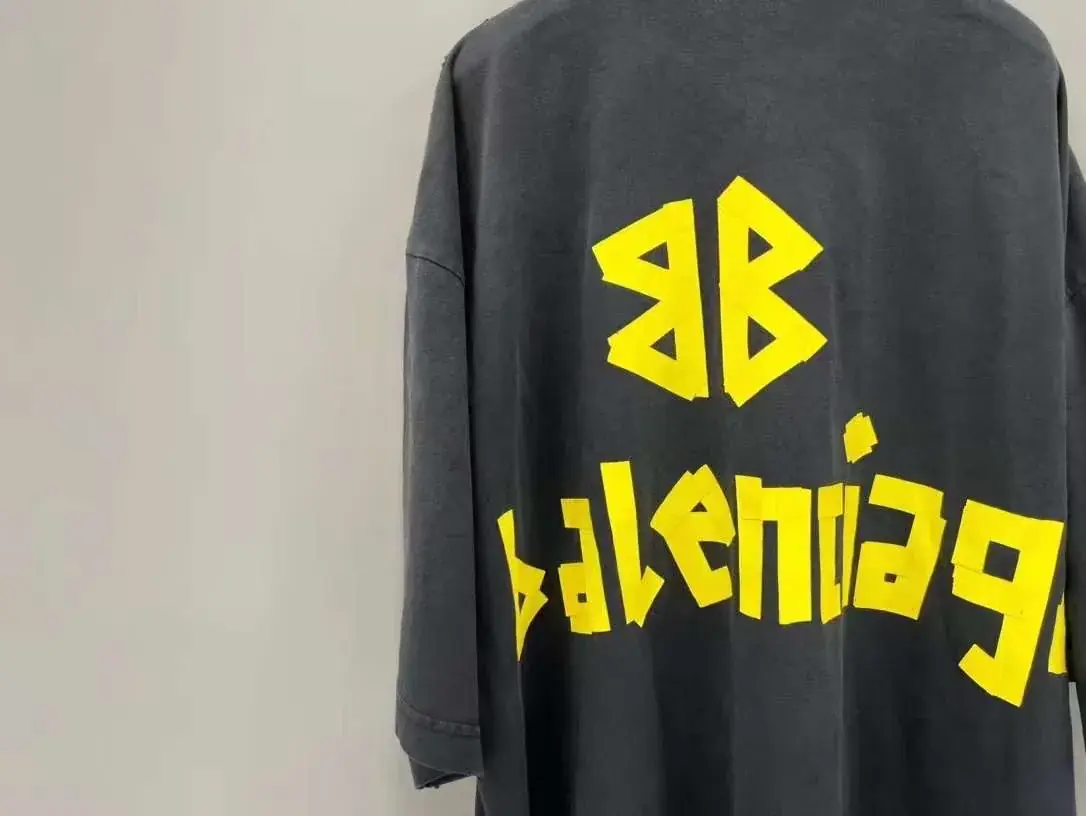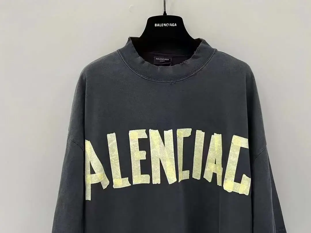 巴黎 BLC 23SS 秀款 膠帶 繃帶logo 水洗做舊 破壞 短袖T恤 藍黑色