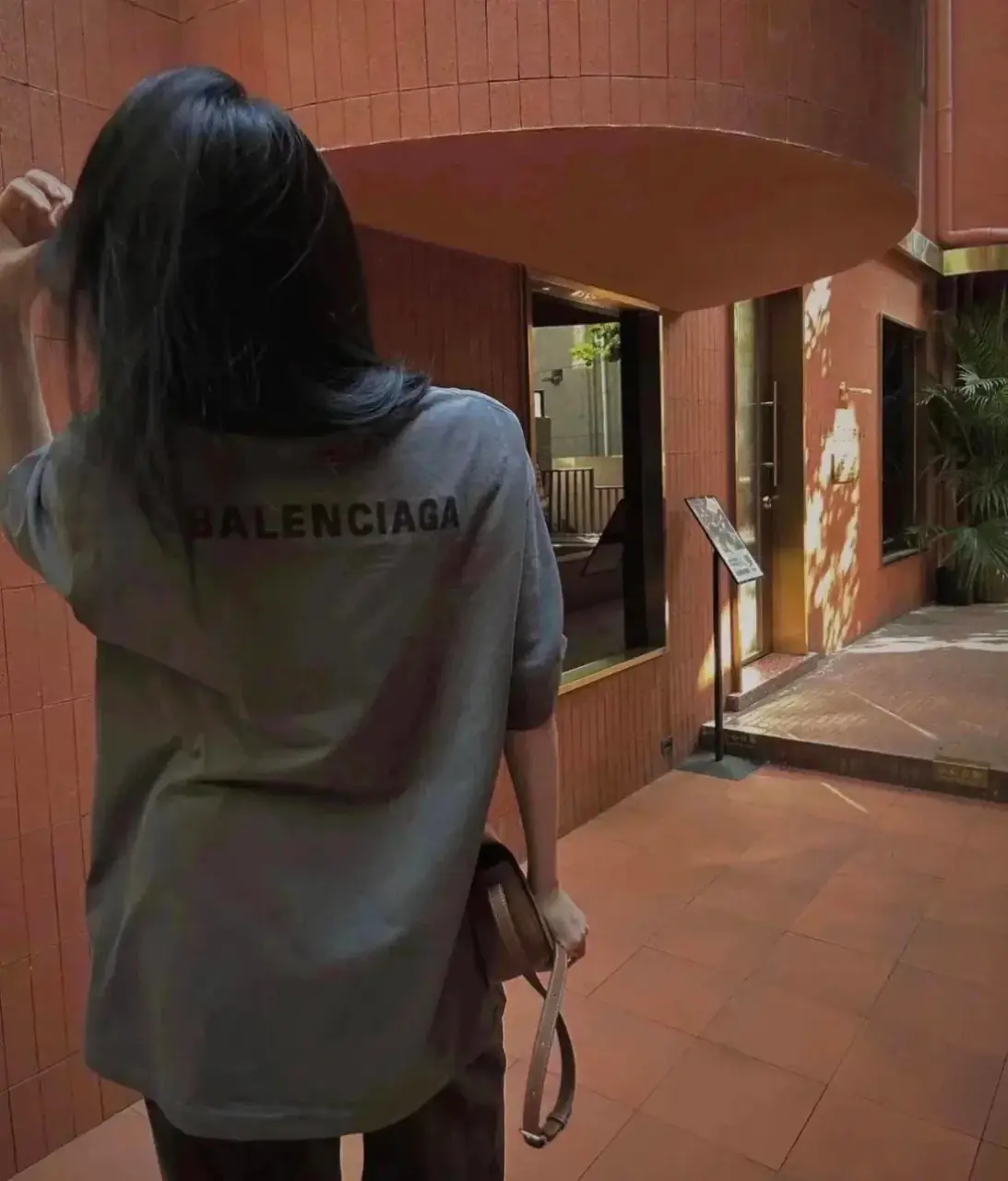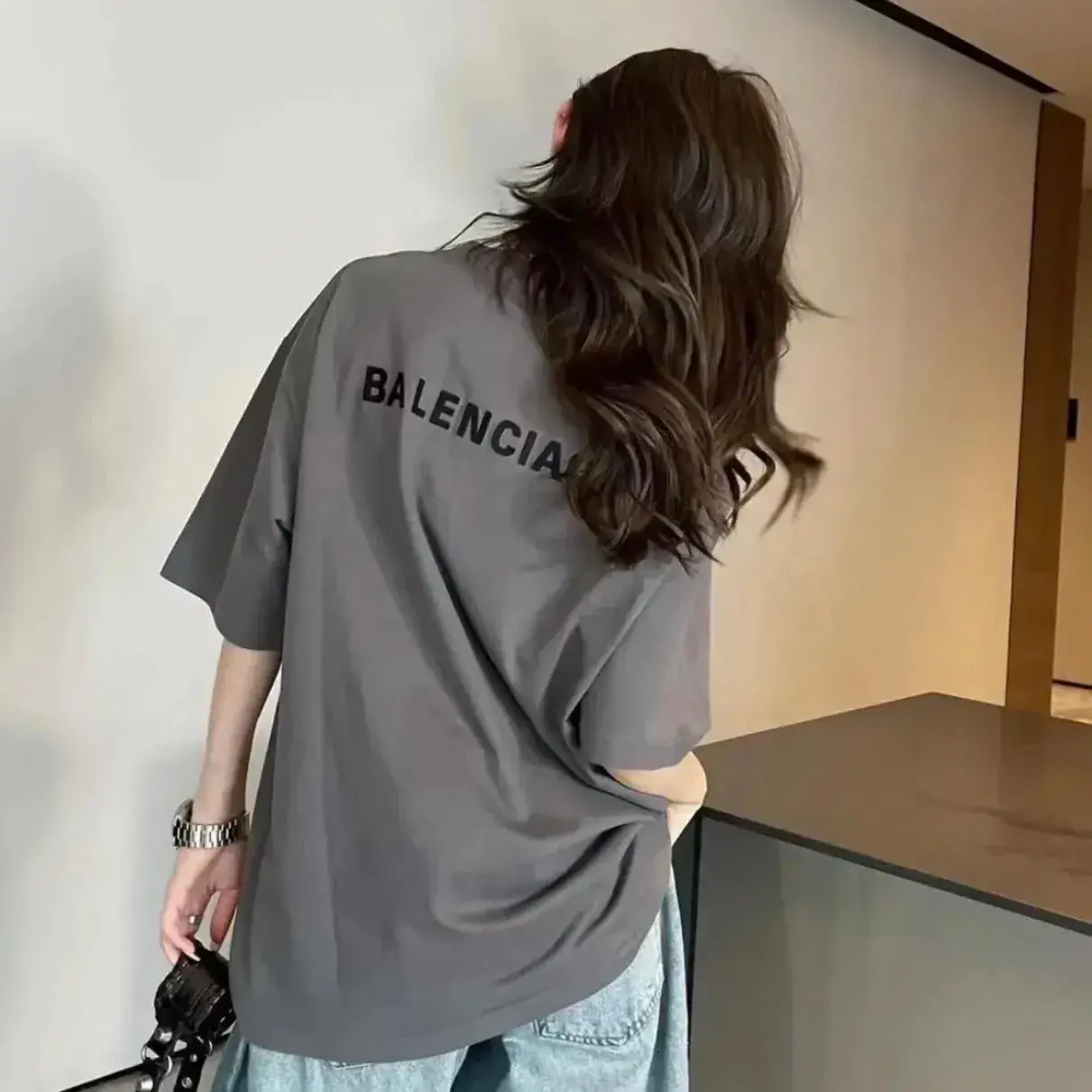 巴黎 BLC 23SS 胸口刺繡 背後大logo 簡約素色 短袖T恤 高級灰