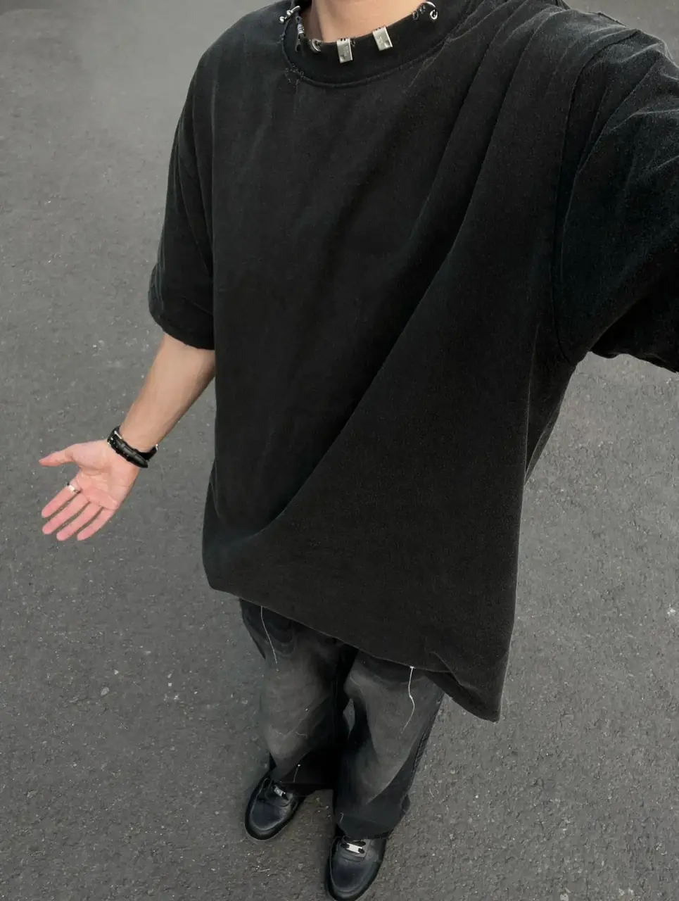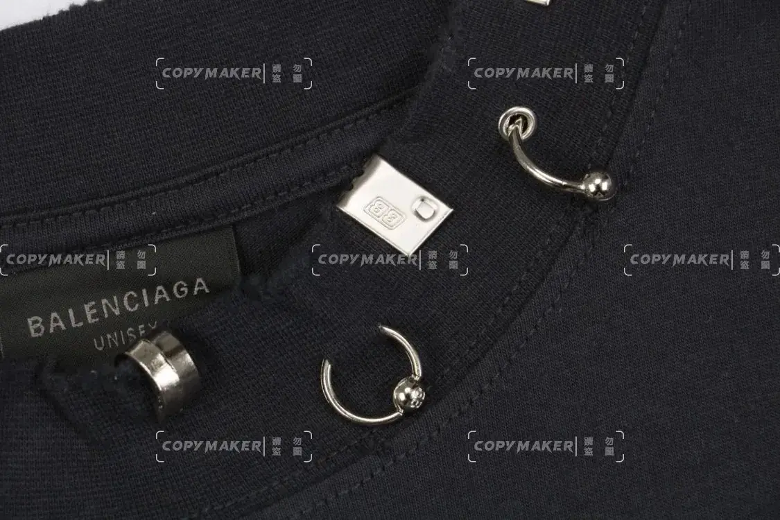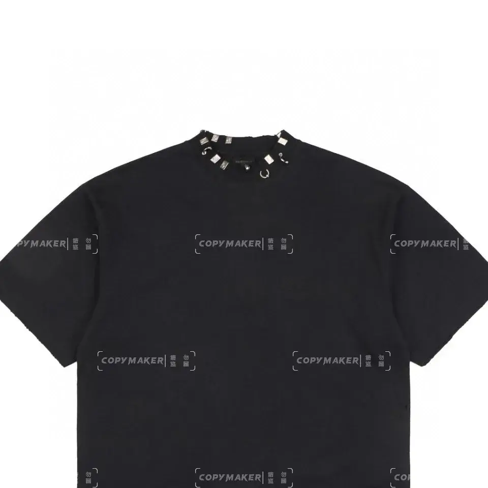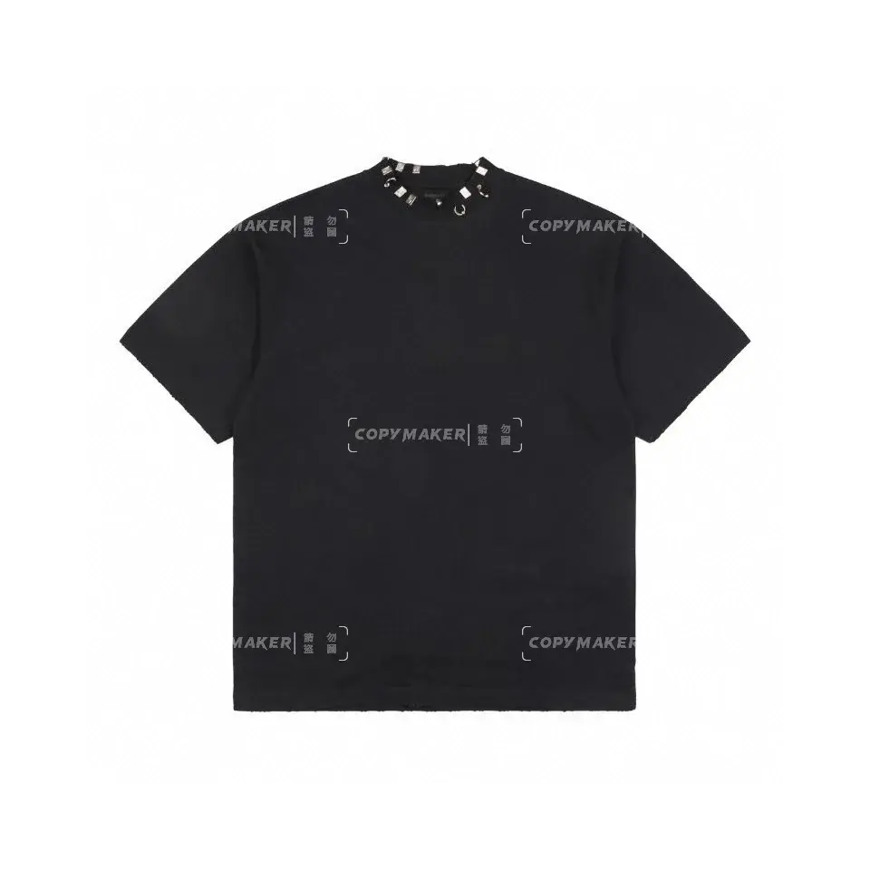 巴黎 BLC 23SS Pierced Distressed-Effect 水洗做舊破壞 領口穿孔鐵環 短袖T恤