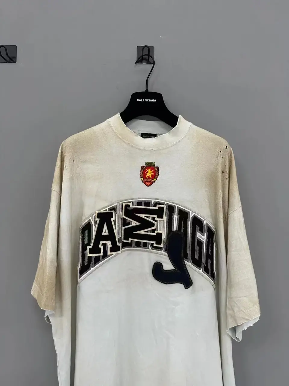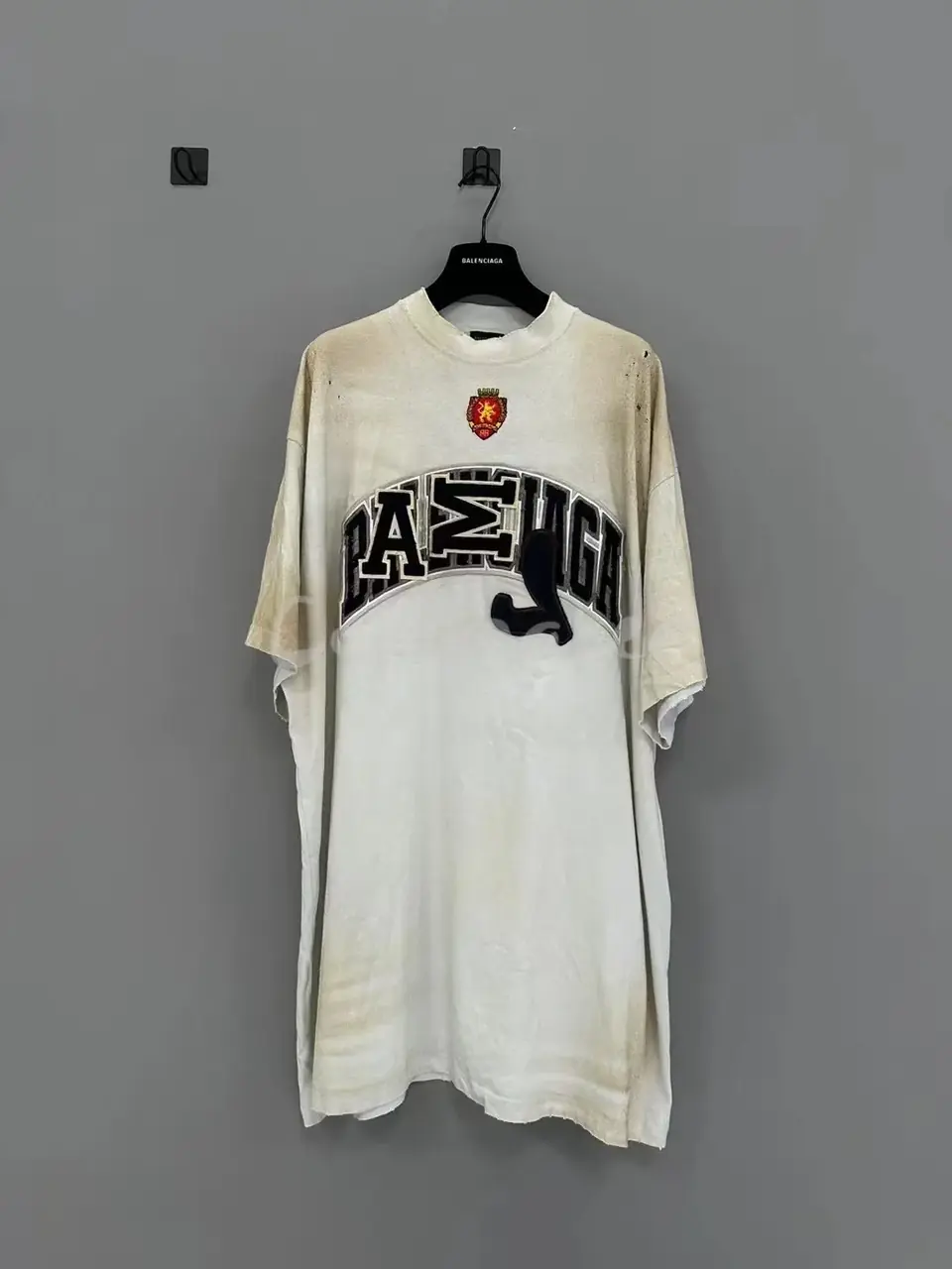 巴黎 BLC 23SS SKATER T-SHIRT 曼聯 水洗作舊破壞 毛巾刺繡 短袖T恤