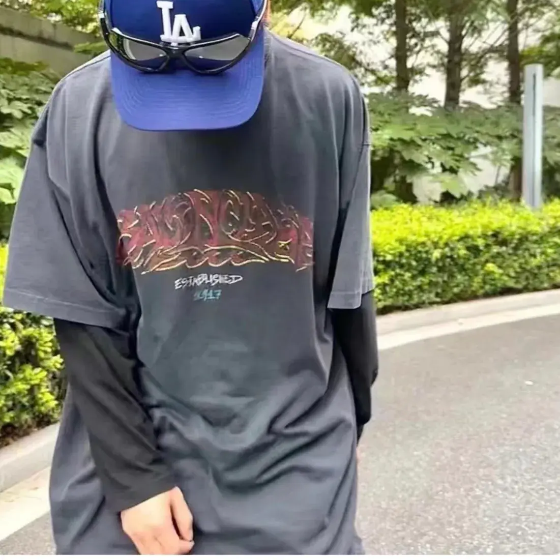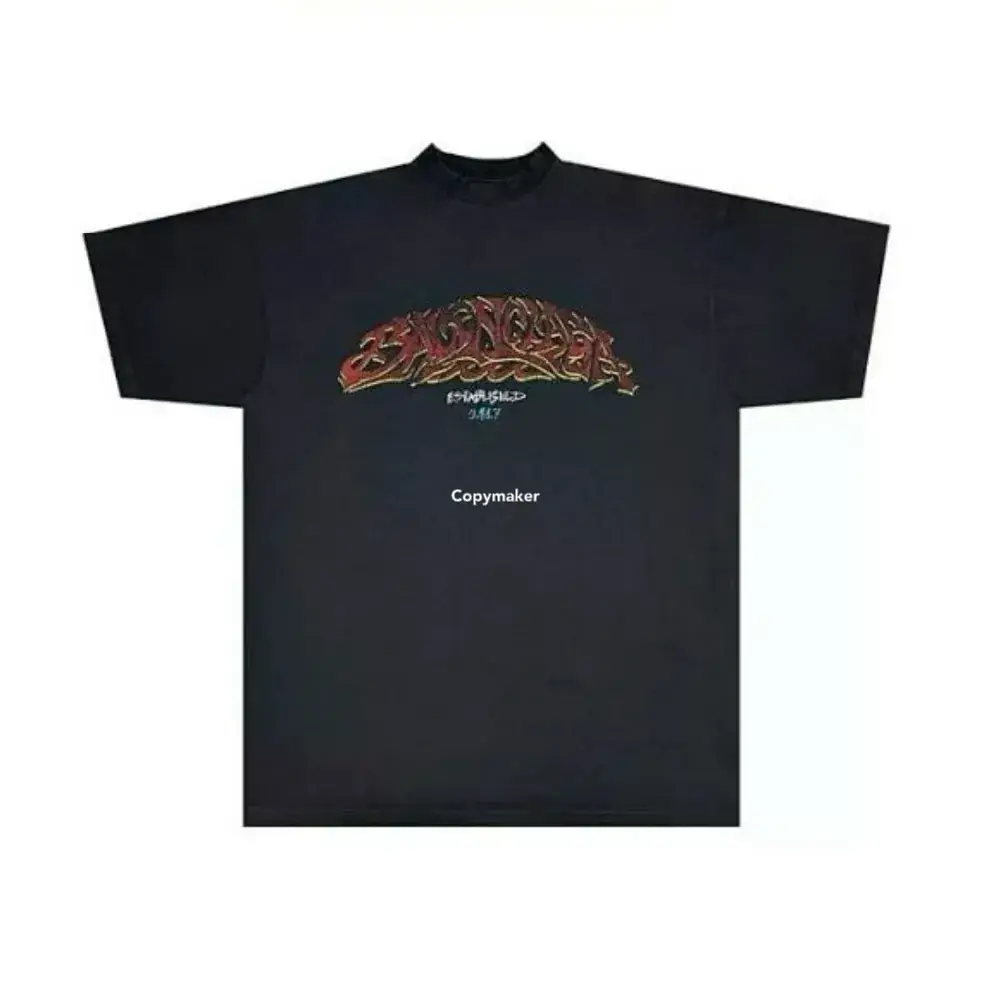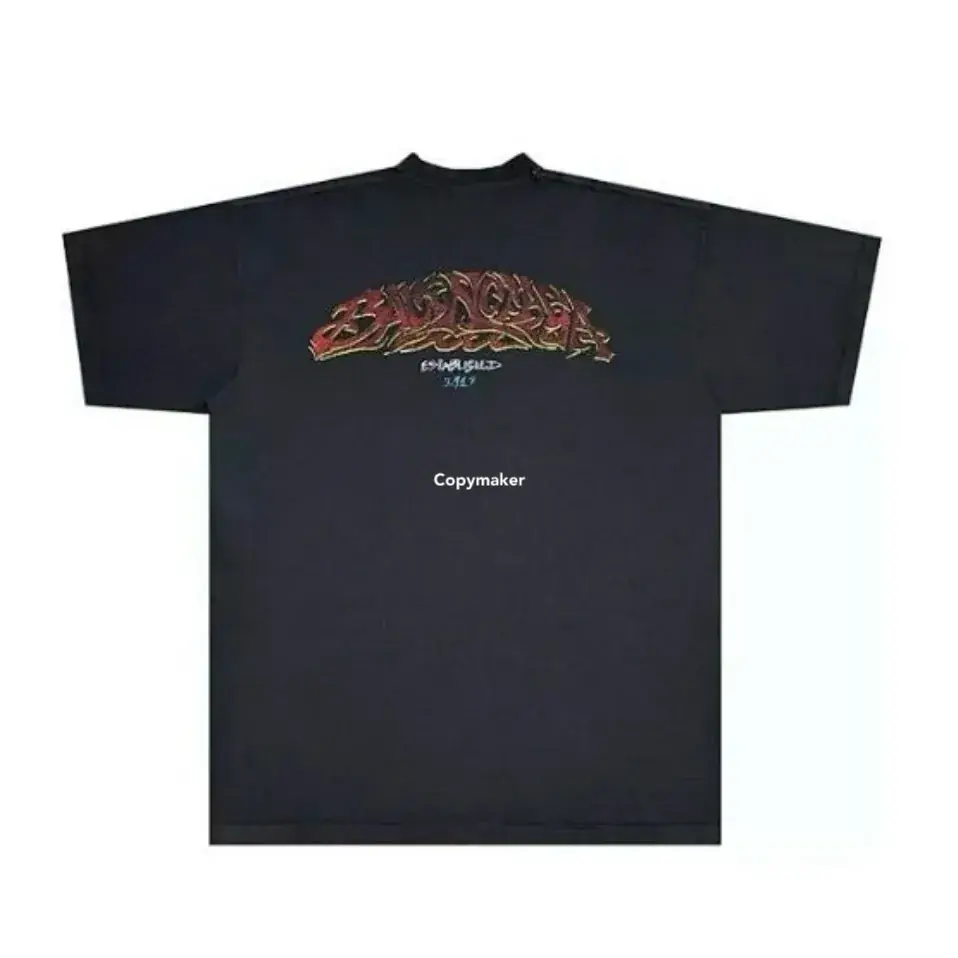 巴黎 BLC 24SS 秀場膠囊限定款 水洗做舊字母 雙面印花 短袖T恤 灰藍