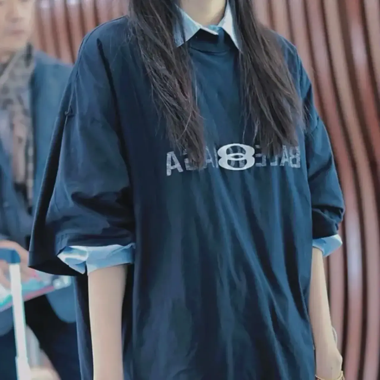 巴黎 BLC 24SS 雙環反轉logo 顛倒字母 作舊破壞 短袖T恤