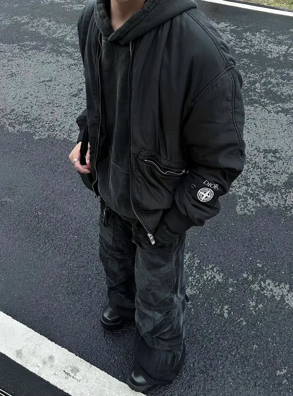 D1OR x STONE ISLAND 24SS 聯名羅盤 桑蠶絲棉服夾克外套 鉑金防水棉