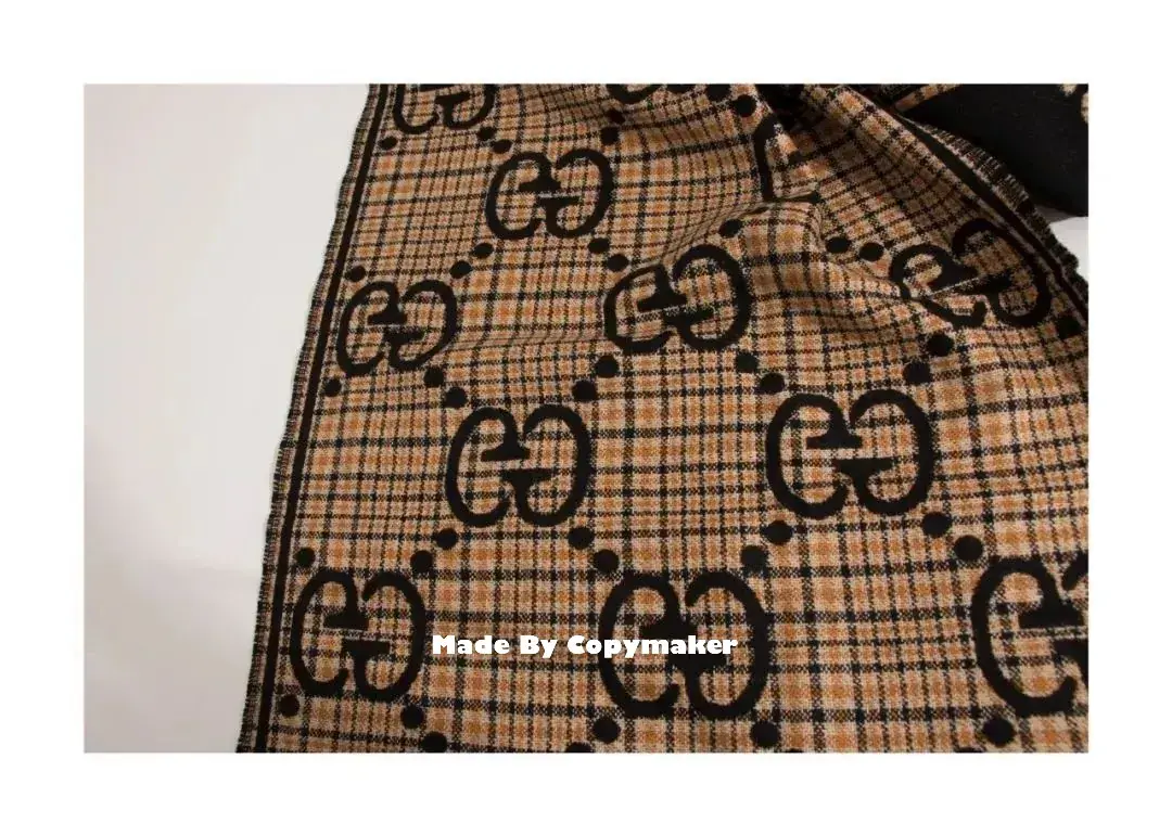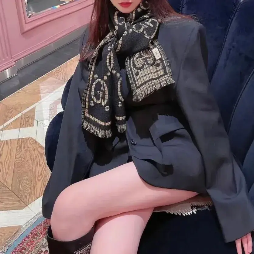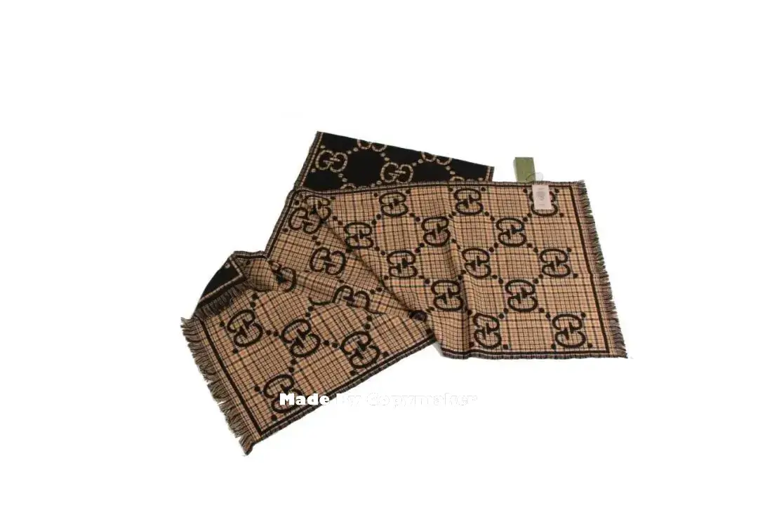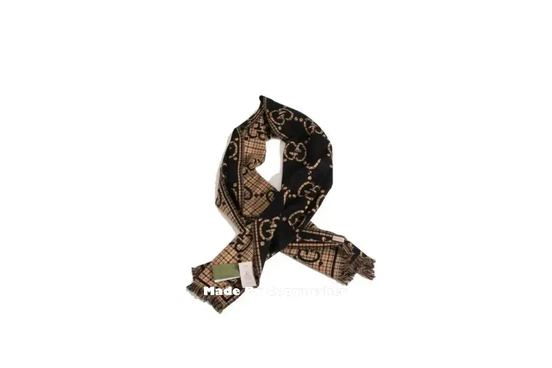 GUC 雙面字母 經典雙G格紋 羊毛 圍巾 披肩 黑色/米色