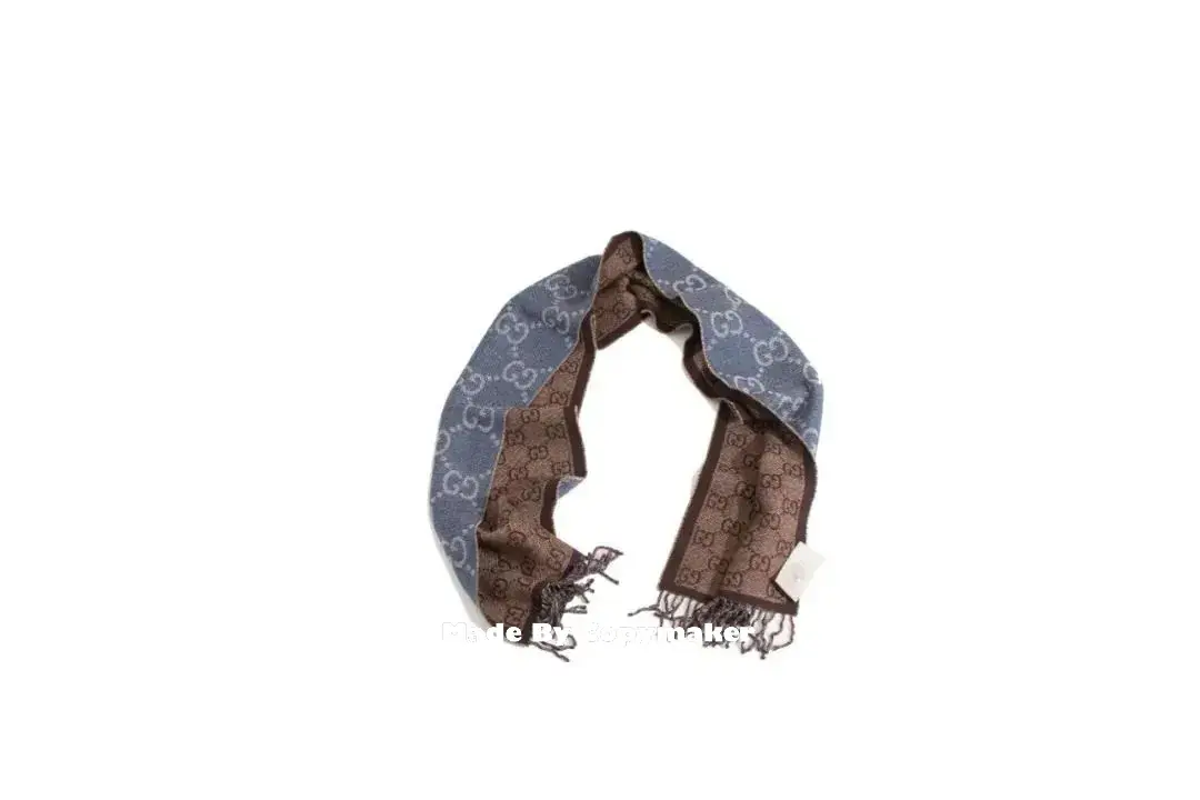GUC 雙面字母 雙G緹花 流蘇 羊絨 圍巾 披肩 牛仔色/淺棕