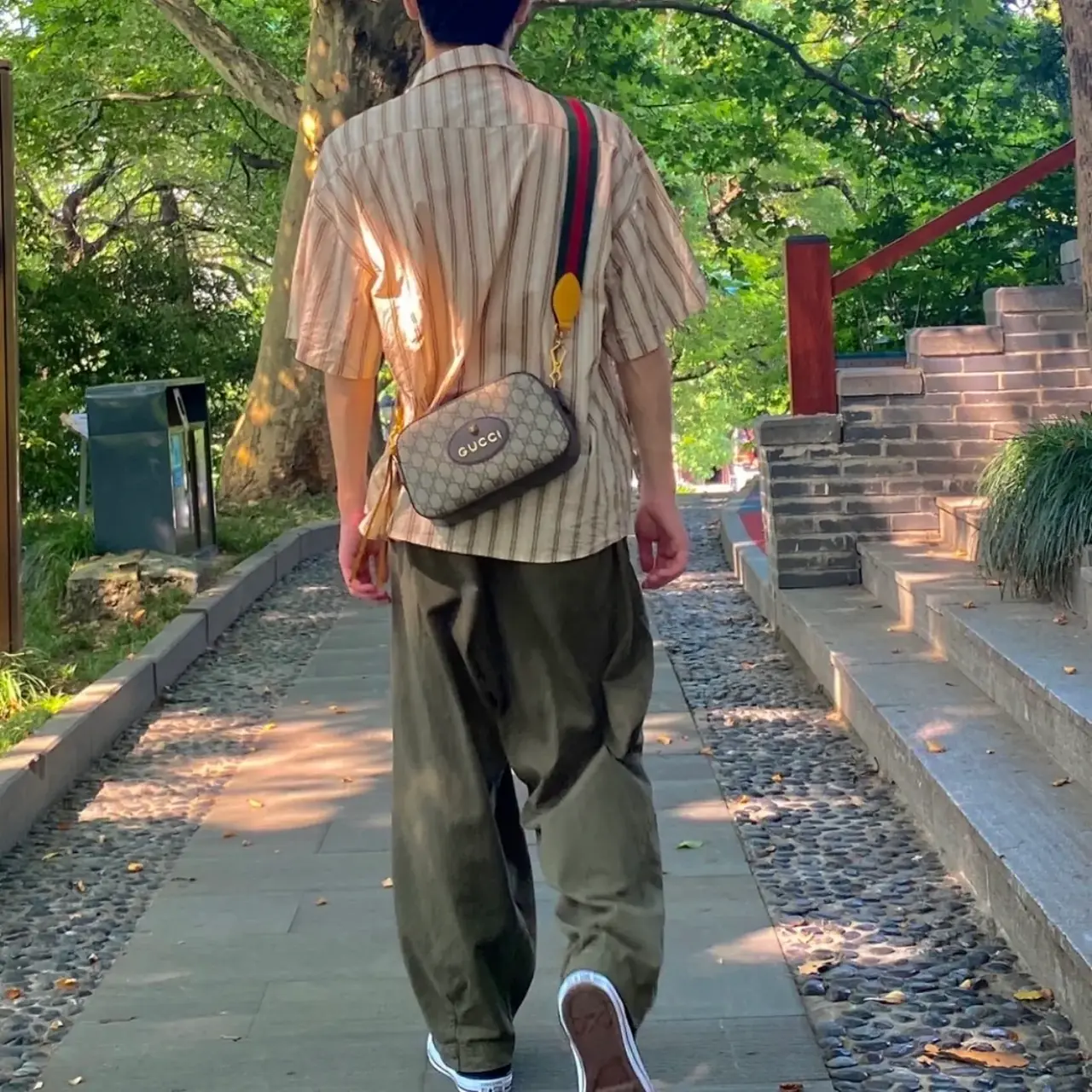 GUC 20FW 虎頭 老花條紋logo 相機包 單肩包 側背包 斜背包