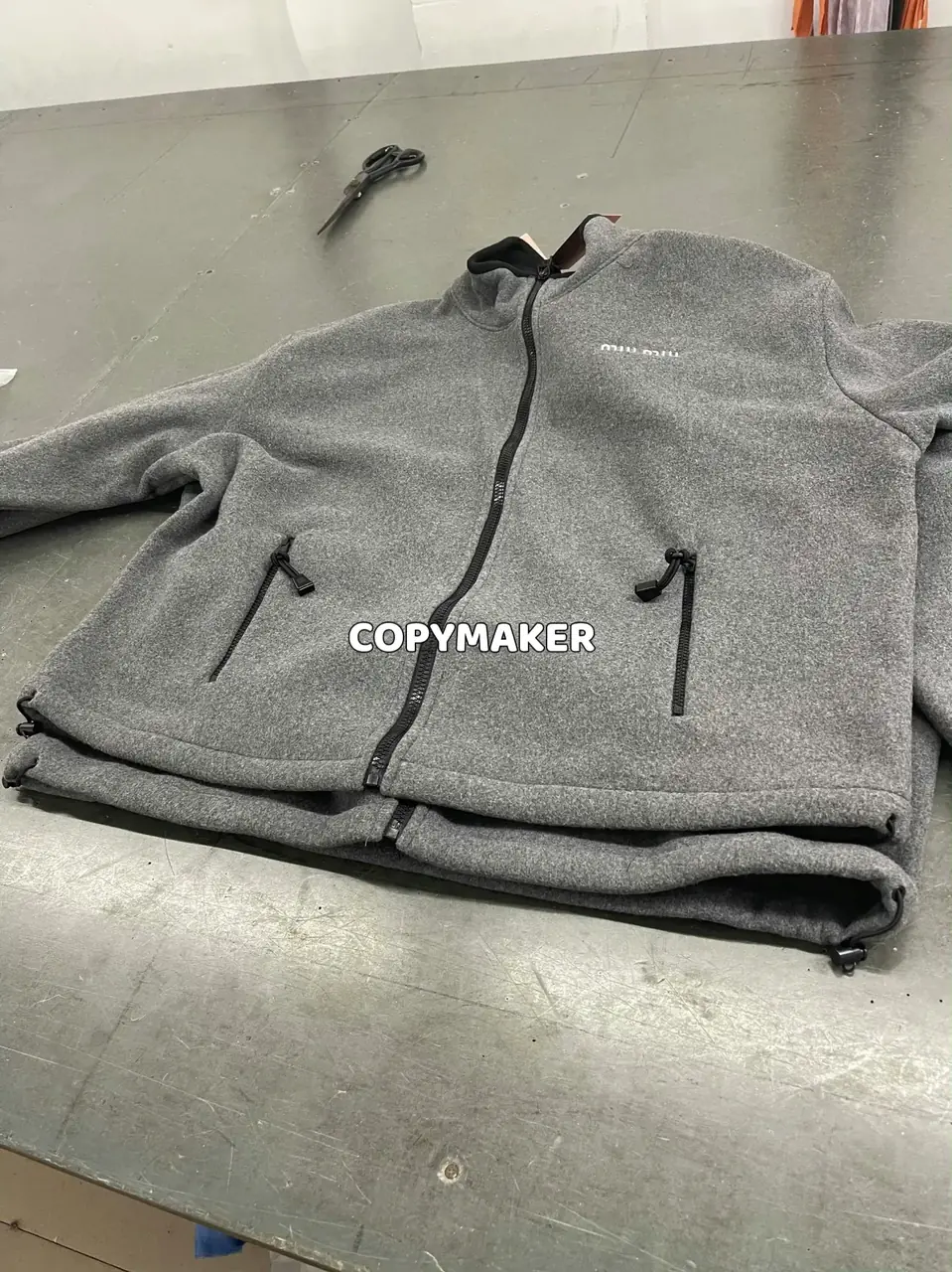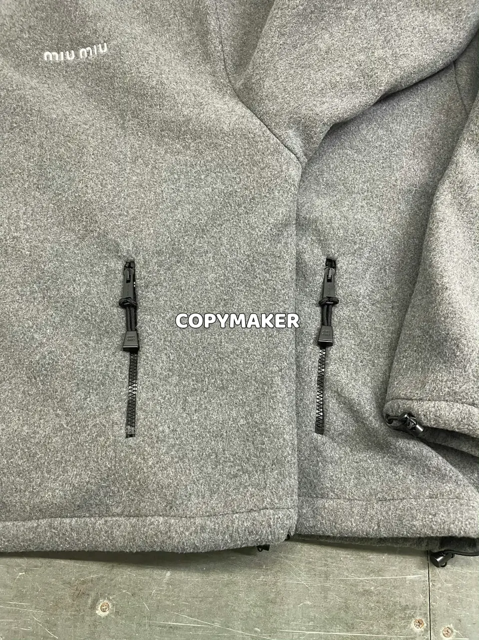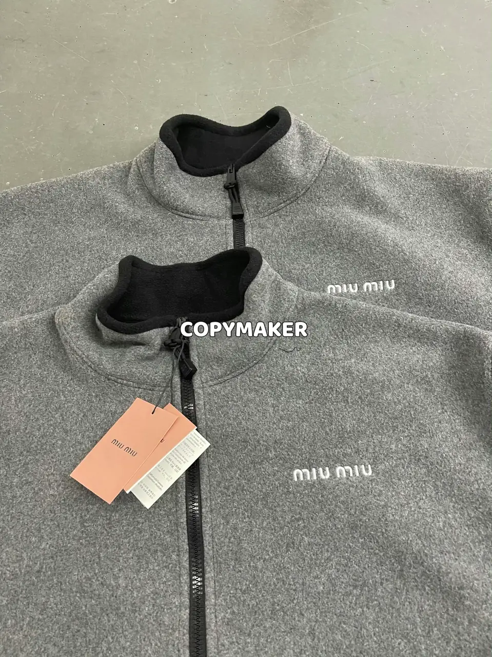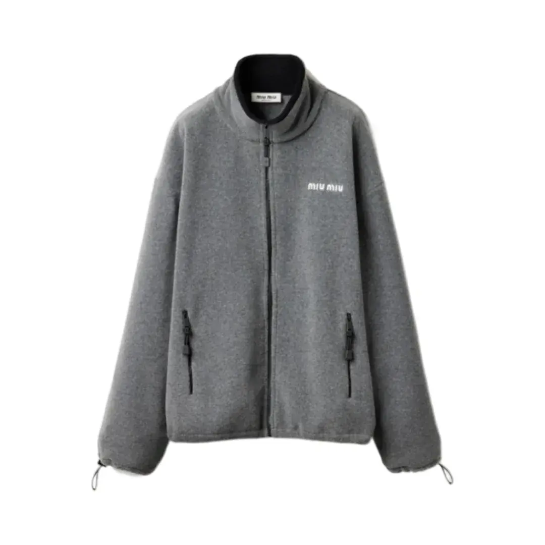 M1U M1U 24SS 繆繆 字母Logo刺繡 搖粒絨 立領夾克外套 灰色