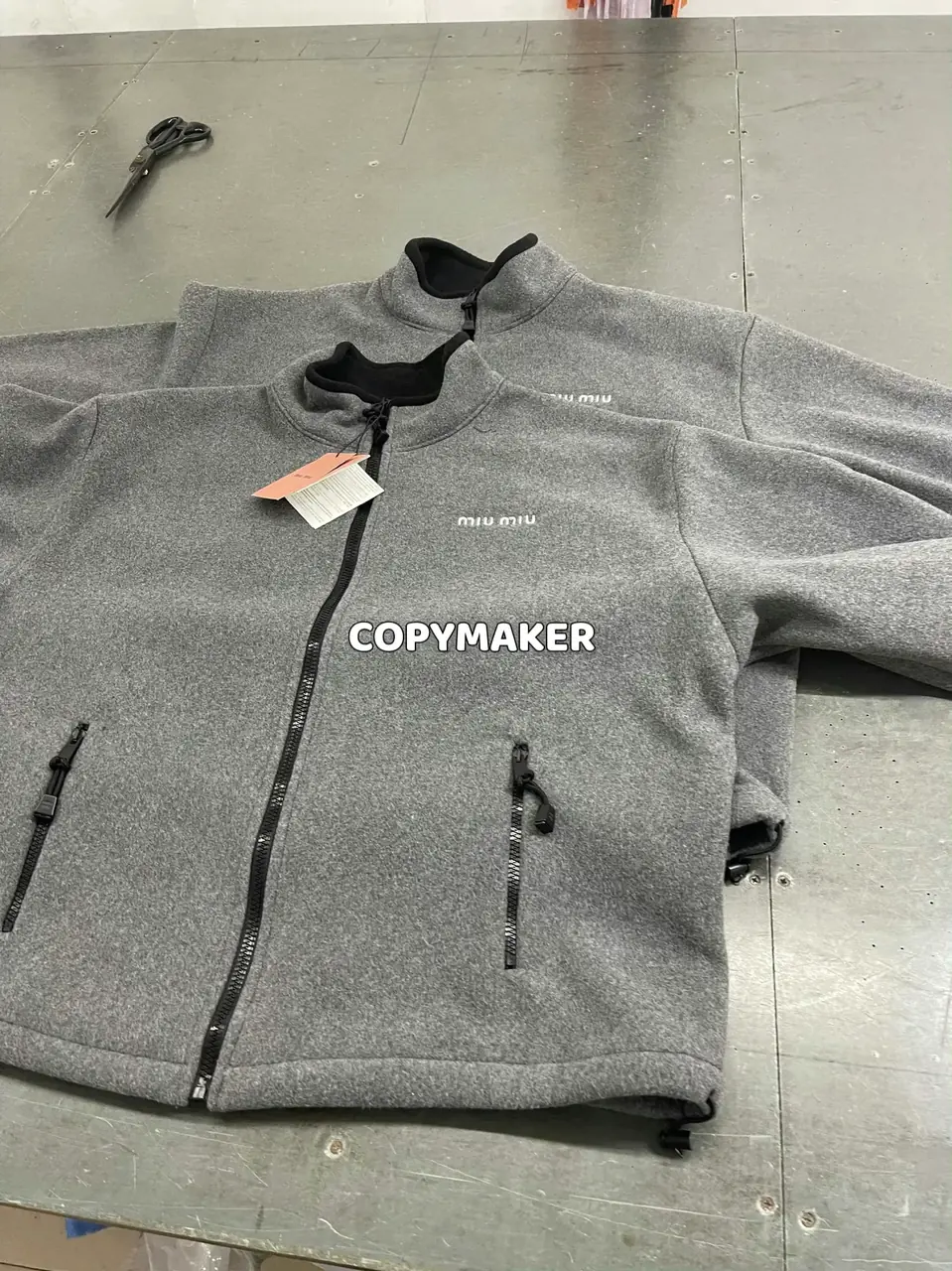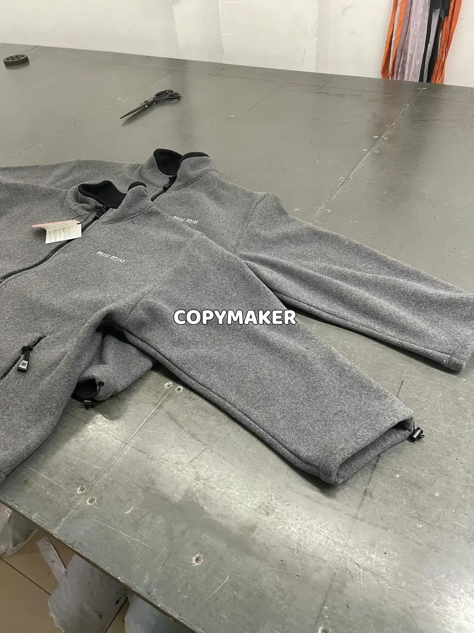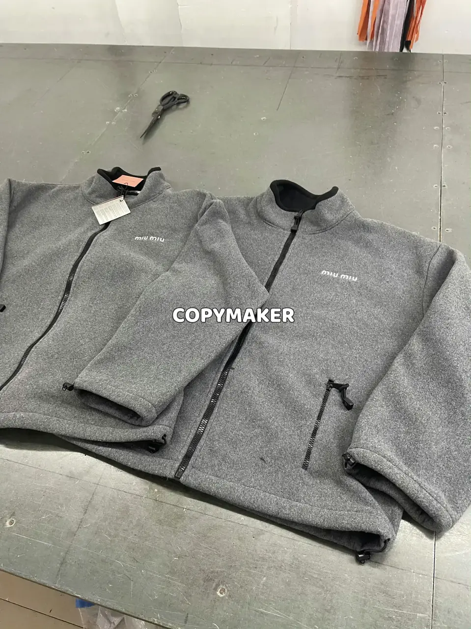 M1U M1U 24SS 繆繆 字母Logo刺繡 搖粒絨 立領夾克外套 灰色